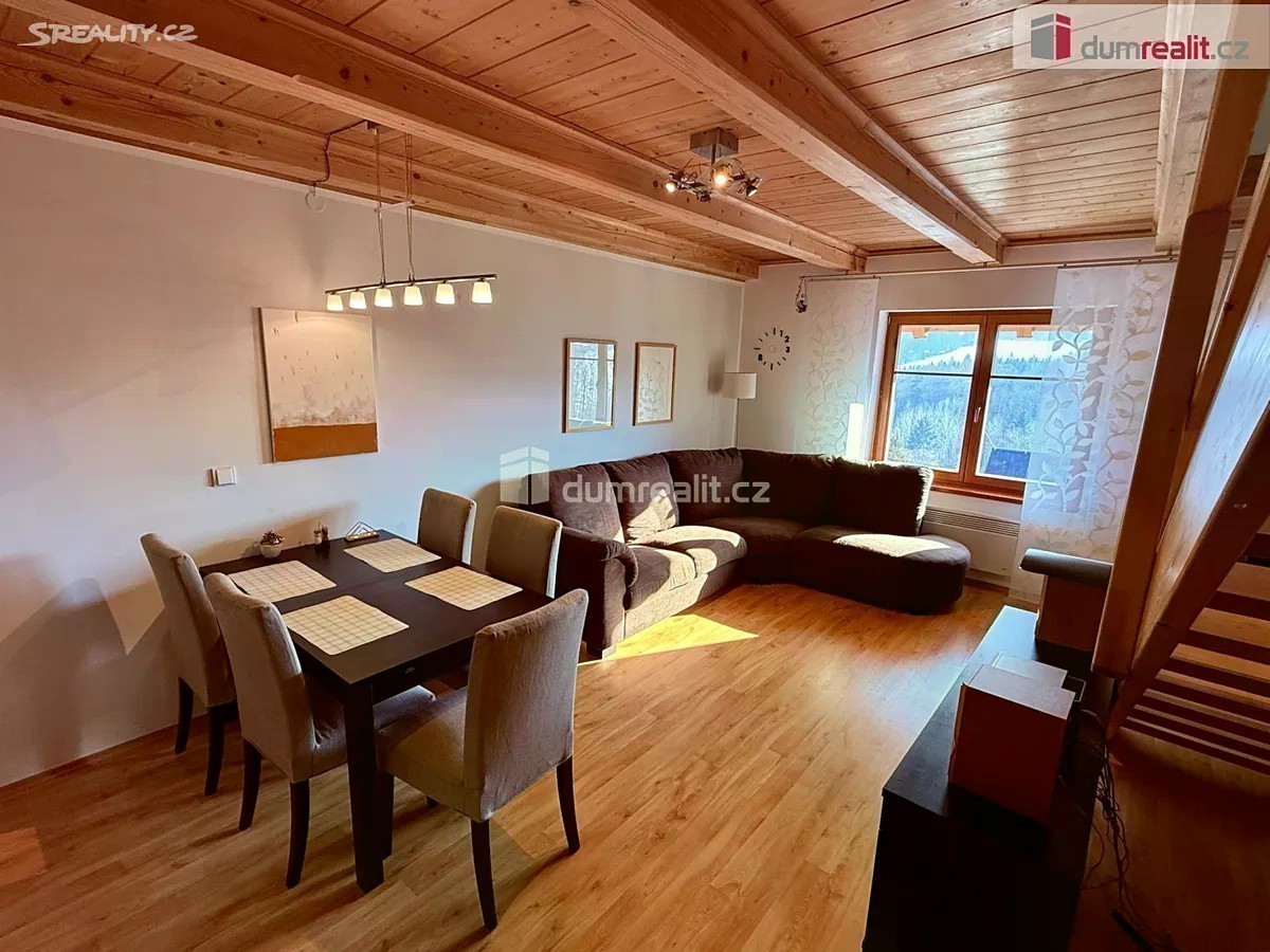 Pronájem exkluzivního podkrovního mezonetového bytu 3+kk o rozloze 74 m², který se nachází v atraktivní a žádané lokalitě Vítkovice v Krkonoších. Tento moderní byt nabízí komfortní bydlení v originálním prostoru s důrazem na kvalitu a design, ideální nejen pro milovníky hor a outdoorových aktivit. Byt je kompletně vybavený špičkovým nábytkem a moderními spotřebiči, což zaručuje pohodlí a praktické využití. Díky vynikajícímu stavu a promyšlenému uspořádání prostor nabízí příjemné prostředí pro rodiny, singles i milovníky aktivního odpočinku. Výjimečný výhled na Krkonoše a okolní krajinu je jedním z hlavních benefitu této nemovitosti. Orientace na sever, jih a východ umožňuje krásné prosvětlení a možnost vychutnat si výhled při všech ročních obdobích. Součástí pronájmu je také vlastní garážové stání, což je v této lokalitě velkou výhodou, dále pak praktické kóje pro uskladnění sportovního vybavení, kola, lyží či jiné sezónní potřeby. Nízké provozní náklady, které se pohybují v průměru kolem 3 000-4 000 Kč měsíčně, vám zajistí ekonomicky výhodné bydlení. Lehká dostupnost je dalším velkým plusem - do ski areálu Aldrov dojdete pěšky během několika minut, nebo dojedete v zimě přímo na lyžích. Stejně tak nově otevřený trail park nebo restaurace a wellness centra na nejvyšší úrovni v rámci Aldrov Resortu, vše v docházkové vzdálenosti. Tento komplex nabízí ideální podmínky pro sportovní vyžití, relaxaci i gurmánské zážitky. Další gurmánský ráj Aroma Aldrov je vzdálen jen 500 m chůze. Zimní areál Vurmovka je jen 150 m daleko. V okolí se nachází důležitá dopravní „křižovatka“ Krkonoš: Obec Vítkovice je ideální nástupní místo na hřebeny Krkonoš. V zimě obec udržuje desítky kilometrů běžeckých tratí. Horní Mísečky jsou vzdálené pouhých 13 minut jízdy, Rokytnice nad Jizerou jen 14 minut, Lyžařská střediska jsou opravdu v těsné blízkosti. Nejbližší město Jilemnice má kompletní občanskou vybavenost - školy, školky, lékaře, nemocnici, obchody i nákupní centra - a je dostupné za 13 minut autem. To znamená, že veškerou potřebnou infrastrukturu máte na dosah ruky, což přispívá k pohodlnému a kvalitnímu životu. Tato nabídka je opravdovou top volbou pro všechny, kdo hledají komfortní, moderní a plně vybavené bydlení v srdci Krkonoš, s výbornou dostupností veškerých služeb i volno-časových aktivit. Doporučujeme osobní prohlídku, která Vám umožní na vlastní oči ocenit kouzlo tohoto výjimečného bydlení. Neváhejte mě kontaktovat pro sjednání osobní schůzky a prohlídky nemovitosti, která je možná i o víkendech. Ev. číslo: 651778.