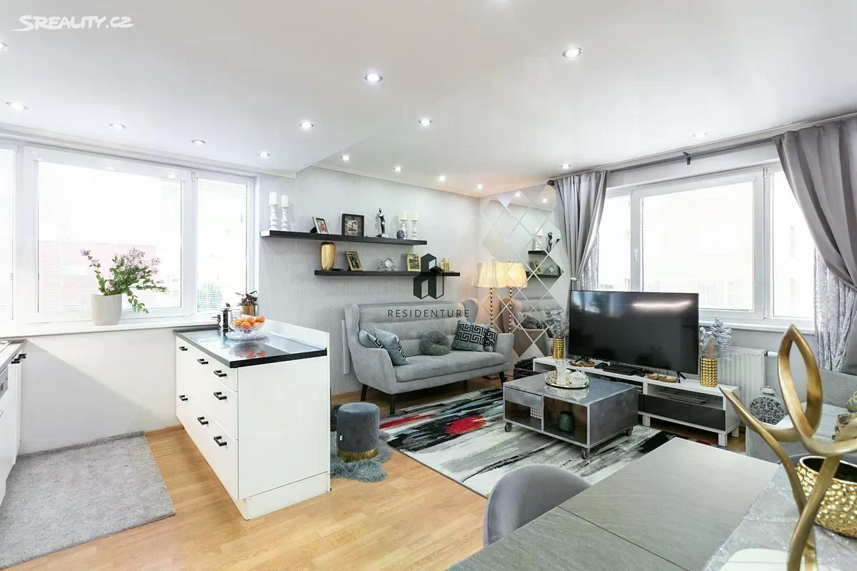 „Residenture“ v zastoupení majitele si dovoluje nabídnout k pronájmu byt 3+kk s podlahovou plochou 70 m², který se nachází v Praze 12 - Kamýk. Zařízený byt se nachází ve 2. NP v budově s výtahem a parkovacím stáním v garáži. Obývací pokoj je vybaven velkou pohovkou a jídelním stolem. Kuchyň je vybavena kuchyňskou linkou včetně vestavěných spotřebičů (varná deska, trouba, myčka, lednice, digestoř). V bytě jsou dvě samostatné neprůchozí ložnice. V bytě je koupelna s vanou a samostatné WC. Byt se nachází ve vyhledávané lokalitě s vynikající občanskou vybaveností a rychlým spojením do centra města. Stanice metra Kačerov je dostupná autobusem za 13 minut. V blízkém okolí se nachází Lesopark Hodkovičky, les Kamýk a Modřanská rokle - ideální místa pro relaxaci a sportovní aktivity v přírodě. Cena: 25.500 Kč + 8.500 Kč poplatky + převod elektřiny na nájemce. V ceně je parkovací stání v garáži. K nastěhování od 01.12. Pro více informací o této nemovitosti nebo domluvení prohlídky nás neváhejte kontaktovat nebo vyplňte formulář níže. Rádi se vám budeme věnovat.