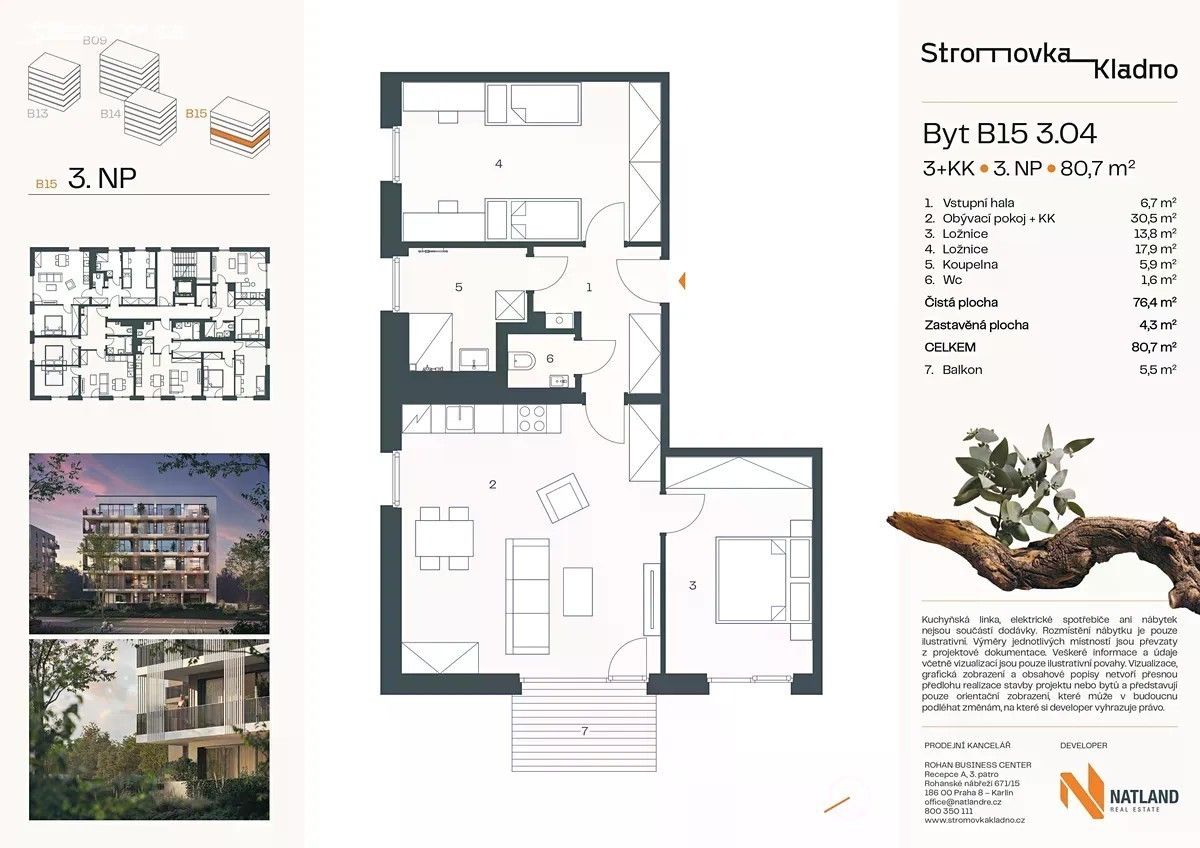 Prostorný byt 3+kk orientovaný na jihozápad. Obývací pokoj s výstupem na balkon, kuchyňský kout se spíží, ložnice umístěné v klidové zóně oddělené chodbou, koupelna s vanou a vývodem vody pro pračku, samostatné WC, možnost umístění vestavěných skříní v chodbě a vstupní hale.