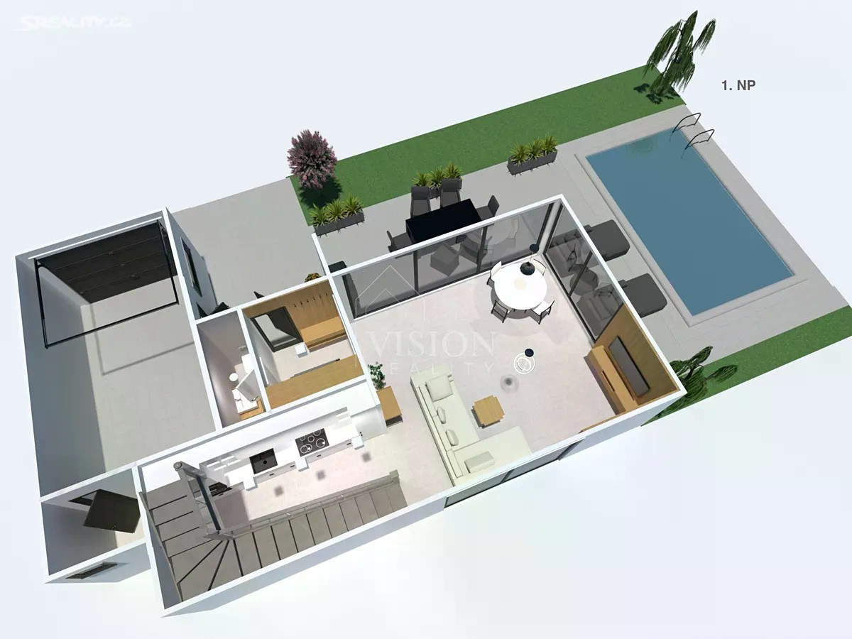Nabízíme k prodeji luxusní rodinný dům nacházející se v malebné oblasti Koloděje, v obci Praha. Tento zděný dům se nachází ve slepé ulici, který byl kolaudován v roce 2022 je umístěný v klidné zástavbě a je ideálním místem pro ty, kteří hledají kombinaci pohodlí, elegance a soukromí. Nemovitost o dispozici 4+kk o podlahové ploše 145m², plochou parcely 464 m², garáží a bazénem nabízí nejen prostorný interiér, ale také příjemnou atmosféru domova. Koloděje jsou známé svou malebnou přírodou a klidným životem, což činí tuto lokalitu ideální volbou pro rodiny i jednotlivce hledající únik od rušného městského života. V blízkosti se nachází veškerá občanská vybavenost, včetně škol, obchodů a příležitostí pro volnočasové aktivity. Dopravní dostupnost do centra Prahy je výborná a díky vybudování Pražského okruhu bude dojezdová vzdálenost do centra Prahy pouhých 20 minut jízdy. Exkluzivita této nemovitosti se odráží nejen ve vysokém standardu provedení, ale také v péči o detaily, které přispívají k celkovému příjemnému pocitu z bydlení. Možnost využití zahrady či souvisejících venkovních prostor dále umocňuje předpoklady pro relaxaci a rodinné aktivity v soukromí. Dům nabízí vybavení jako jsou: Klimatizovány všechny místnosti v domě. Stereo ozvučení celého domu. Rekuperace vzduchu Pod fasádní hliníkové žaluzie s moskytierou v každém okně. Hliníkové trojskla. Zabezpečení celého domu včetně kamerového systému. Automatická sekačka na trávu. Samozavlažovací systém s retenční nádrží. Chytrá domácnost. Příprava na fotovoltaiku s kterou můžete snížit náklady na úplné minimum. A mnoho dalšího. Dům se prodává kompletně vybavený. Tento rodinný dům v Kolodějích je příležitostí, kterou by si neměli nechat ujít ti, kteří hledají harmonii mezi moderním bydlením a klidem přírody. V případě zájmu o prohlídku nás neváhejte kontaktovat.