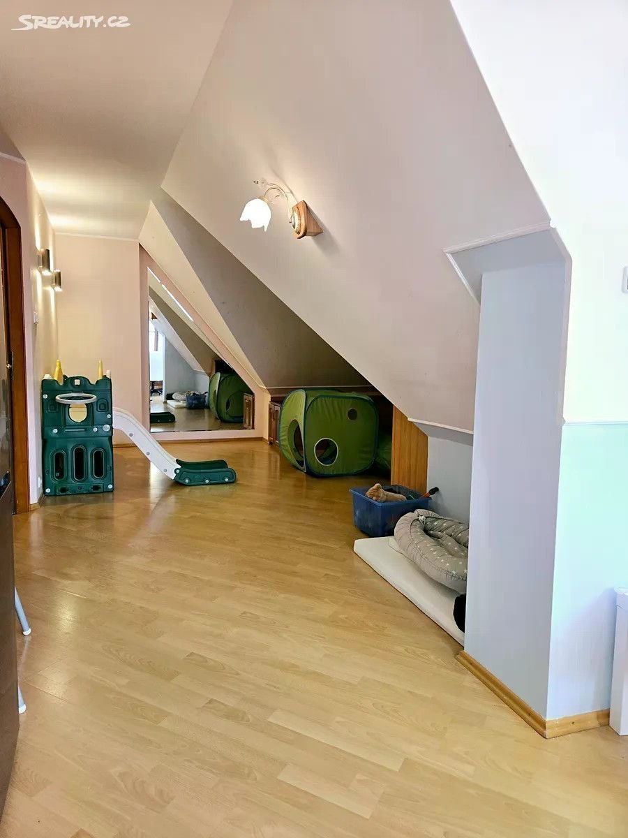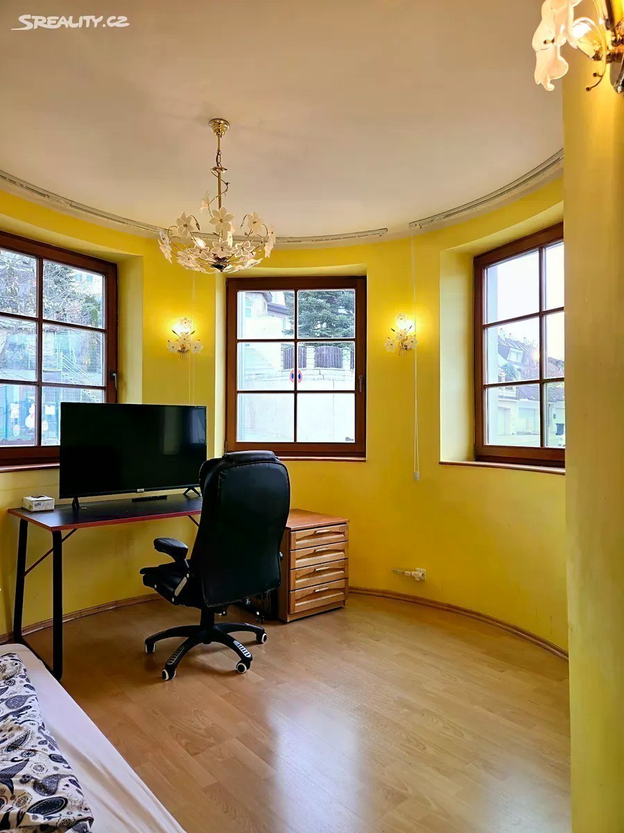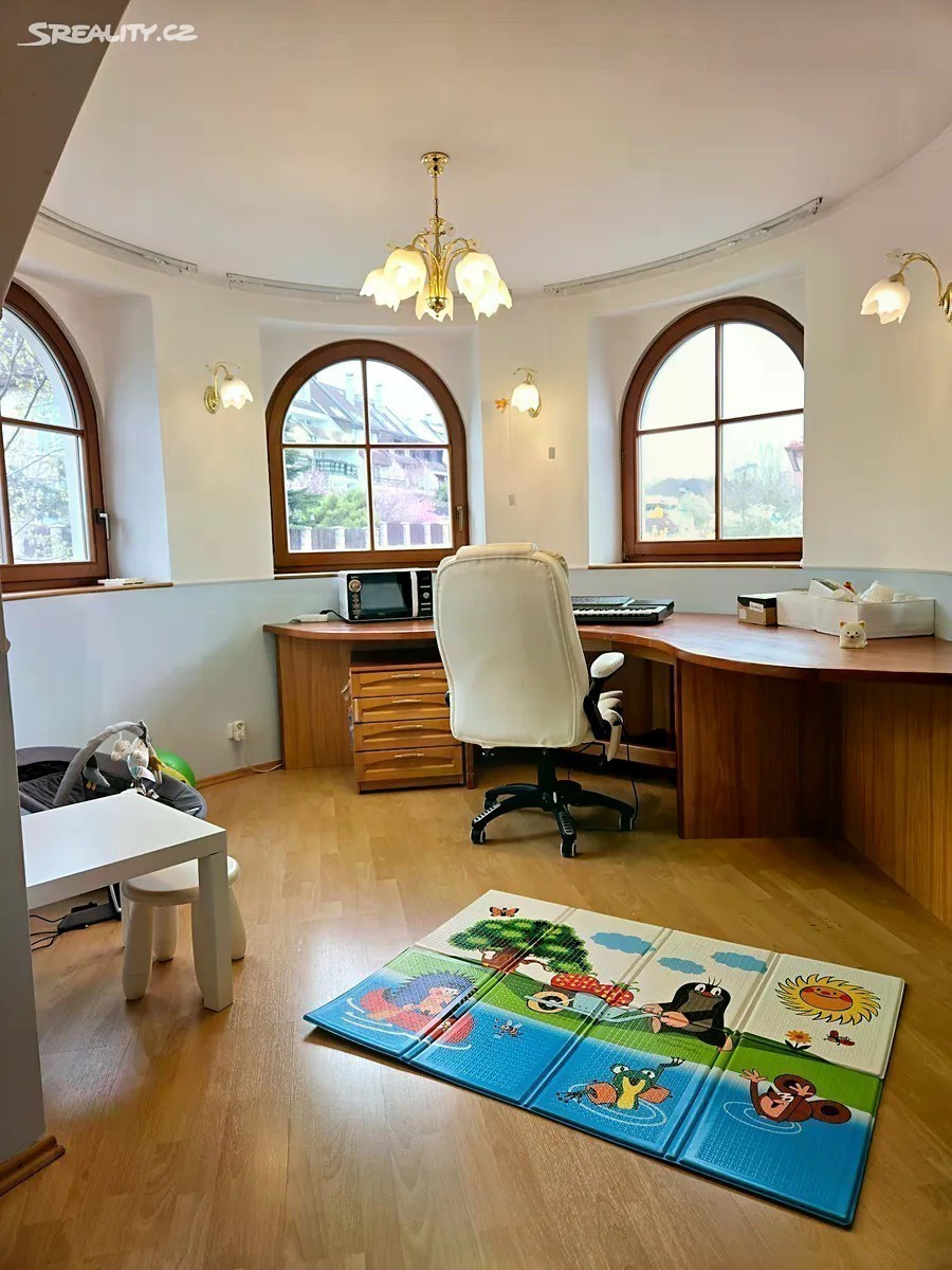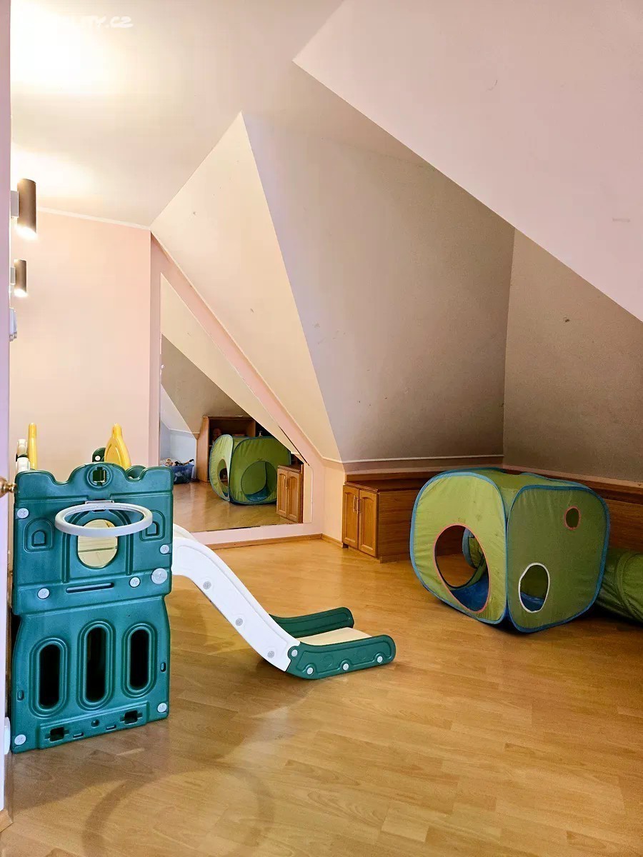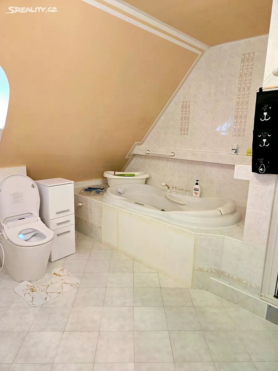 Obytná část 11 + kk 328m2 + terasy 9+46m2 + zahradní část domu 8m2 Rohový dům je na 2 adresách s možností oddělení parkování a vchodů ze dvou stran. V každém patře koupelna a wc, možnost vytvoření další kuchyně a rozdělení na více částí k bydlení a podnikání. Dům není na jednoduchou kvádrovitou novostavbou, které vznikají na kraji Prahy a kde je občanská vybavenost je jen jedním směrem, ale architektonicky členité sídlo s věží a kruhovými místnostmi, v klidném středu Modřan. Pozemek se vzrostlými stromy, ve svahu, takže jsou všechna 3 patra nadzemní, a poloha na kopci skýtá čistý vzduch, klid od ruchu města, a výhledy při procházkách po okolí vilové čtvrti historických Modřan, kde se domy téměř neprodávají. Vybavenost: Inteligentní systém podlahového topení pro každé patro zvlášť 2 krby vnitřní s rozvodem tepla z nich, 1 venkovní Klimatizace Sauna, masážní vana, inteligentní wc bez nutnosti používání papíru (vyhřívané pánské i dámské mytí, masáž, sušení) Domovní audiosystém ve všech místnostech i koupelnách Čidla na automatické svícení v domě Vnitřní i venkovní kamerový systém Bezpečnostní čidla v místnostech a oknech 3x Bezpečnostní dveře Trezor Rozvody optického pevného internetu 1000/500 Mbit ve všech místnostech Osvětlená zahrada s uzamykatelnou částí např. pro psy Zahradní domek se s wc a sprchou Studna, podzemní zadržovací nádrž na vodu Garáž, sklep, půda Další benefity: Dům je zateplený a dokončuje se rekonstrukce a modernizace, ale je k prodeji a současně užíván k pronájmům, které je možno na přání ponechat Možnosti splácení kupní ceny přímo majiteli. Možnost předání či provozu a správy od profesionální správy nemovitostí Vhodné pro • vlastní velkolepé vícegenerační bydlení, s příbuznými či přáteli • investory formou krátkodobých či dlouhodobých pronájmů • ubytovna migranty Dispozice: Přízemí: 4x pokoj Prádelna + vana Sušárna Sprchový kout + wc + pisoar 2x Technická komora Garáž 1.patro: 3x pokoj Kuchyňský kout Sprchový kout + wc Předsíň Šatna 2.patro: 3x pokoj Šatna Masážní vana + wc + bidet + sprchový kout Venkovni část domu: Sprchový kout + WC Sklad
