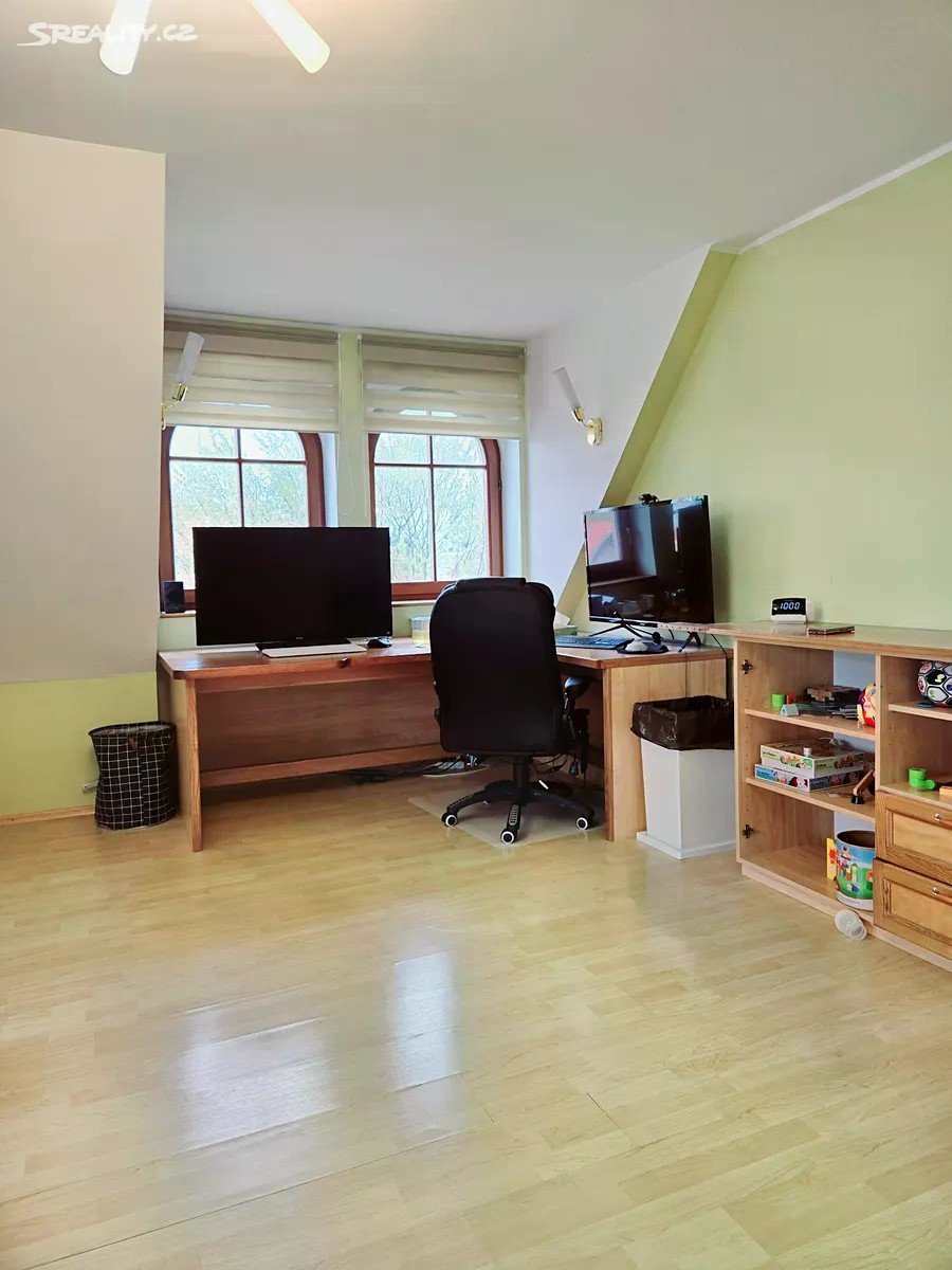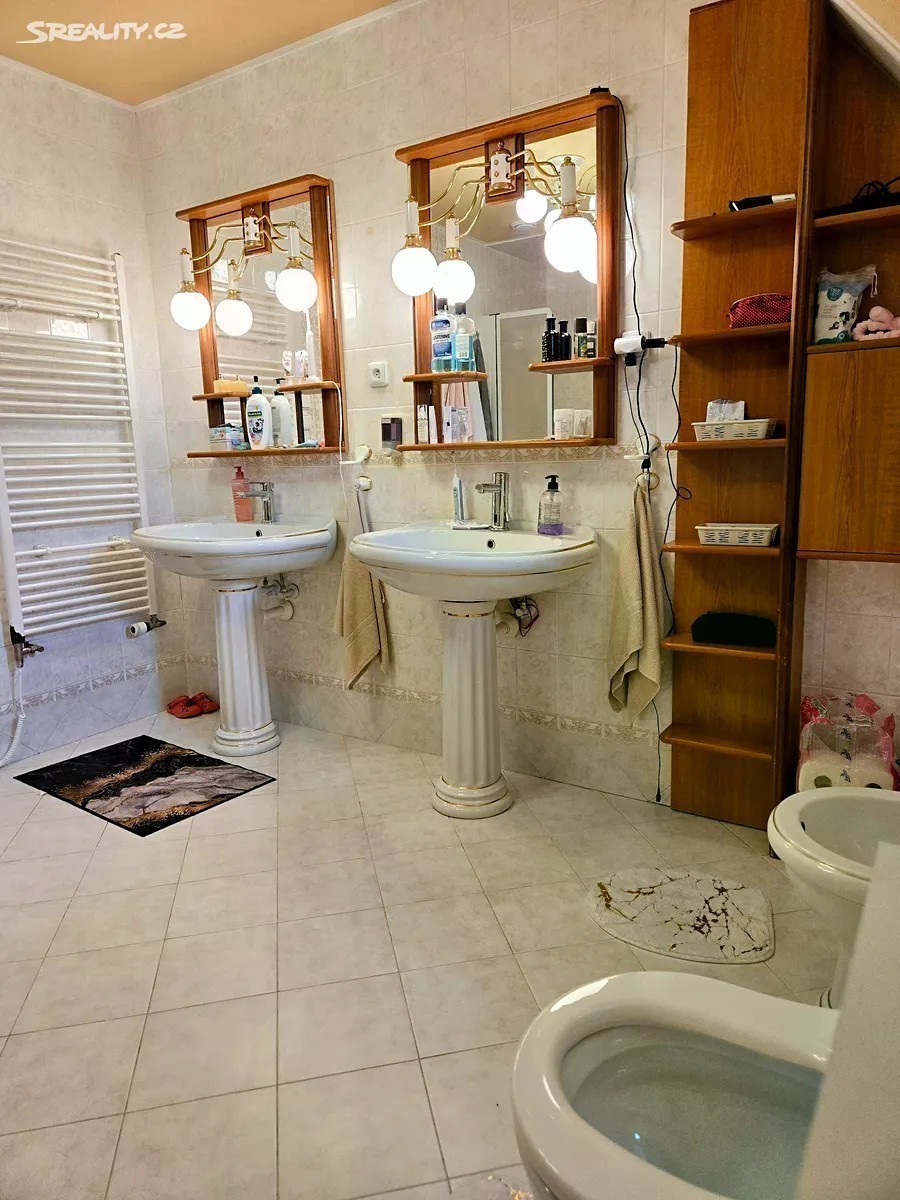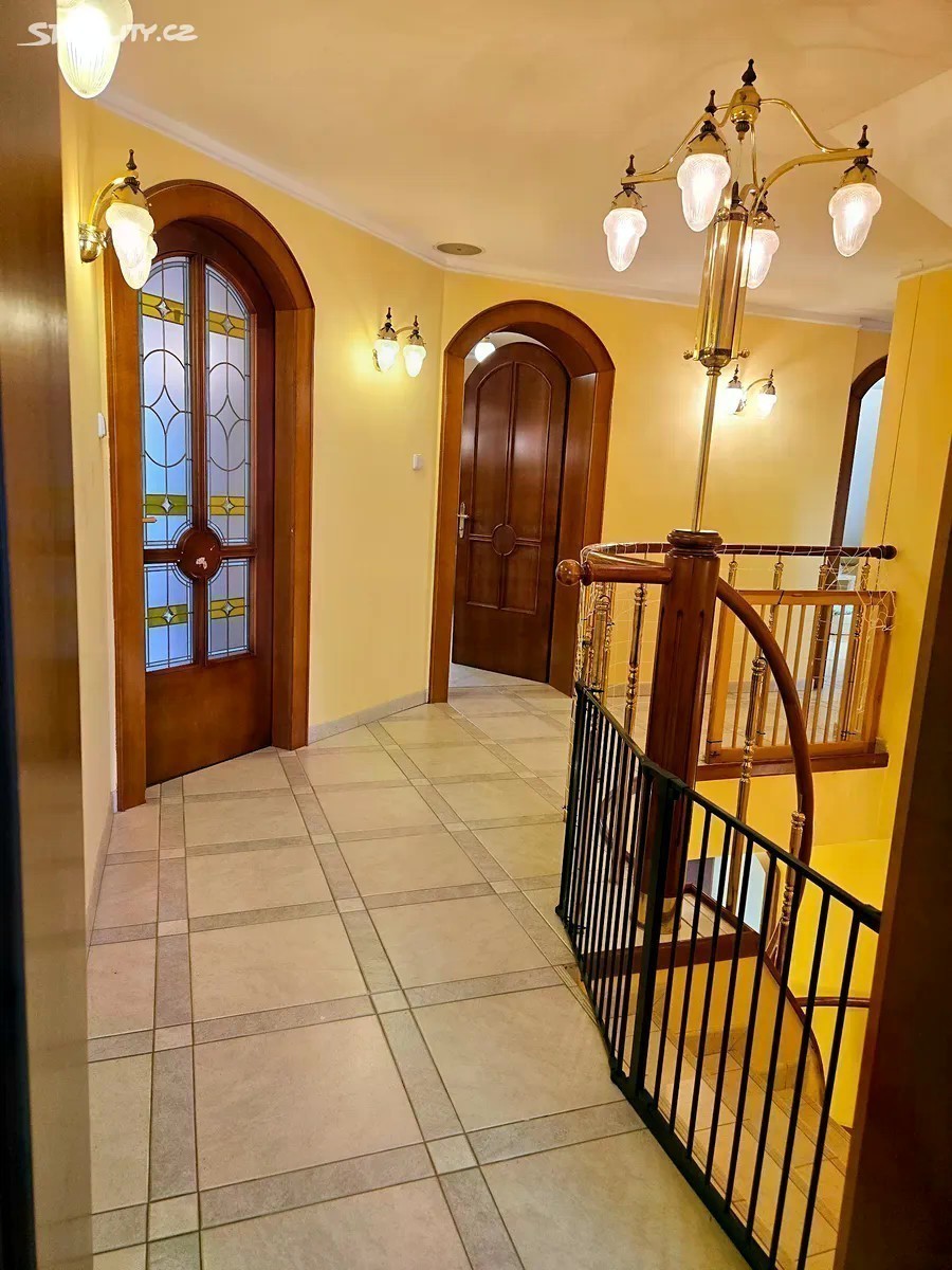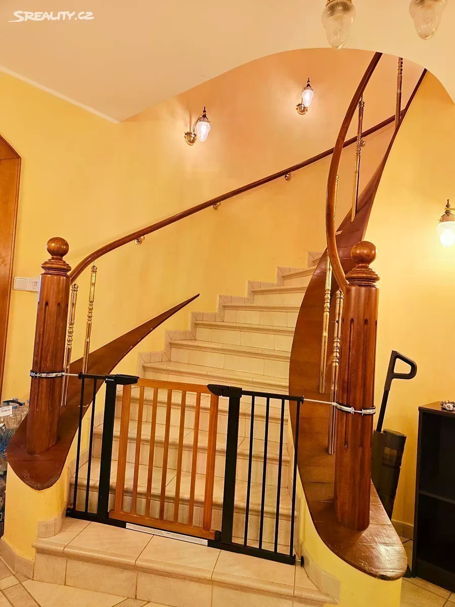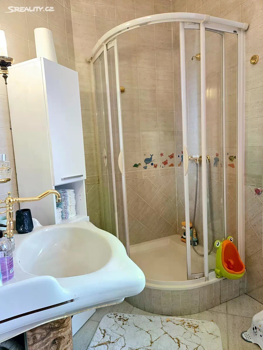 Obytná část 11 + kk 328m2 + terasy 9+46m2 + zahradní část domu 8m2 Rohový dům je na 2 adresách s možností oddělení parkování a vchodů ze dvou stran. V každém patře koupelna a wc, možnost vytvoření další kuchyně a rozdělení na více částí k bydlení a podnikání. Dům není na jednoduchou kvádrovitou novostavbou, které vznikají na kraji Prahy a kde je občanská vybavenost je jen jedním směrem, ale architektonicky členité sídlo s věží a kruhovými místnostmi, v klidném středu Modřan. Pozemek se vzrostlými stromy, ve svahu, takže jsou všechna 3 patra nadzemní, a poloha na kopci skýtá čistý vzduch, klid od ruchu města, a výhledy při procházkách po okolí vilové čtvrti historických Modřan, kde se domy téměř neprodávají. Vybavenost: Inteligentní systém podlahového topení pro každé patro zvlášť 2 krby vnitřní s rozvodem tepla z nich, 1 venkovní Klimatizace Sauna, masážní vana, inteligentní wc bez nutnosti používání papíru (vyhřívané pánské i dámské mytí, masáž, sušení) Domovní audiosystém ve všech místnostech i koupelnách Čidla na automatické svícení v domě Vnitřní i venkovní kamerový systém Bezpečnostní čidla v místnostech a oknech 3x Bezpečnostní dveře Trezor Rozvody optického pevného internetu 1000/500 Mbit ve všech místnostech Osvětlená zahrada s uzamykatelnou částí např. pro psy Zahradní domek se s wc a sprchou Studna, podzemní zadržovací nádrž na vodu Garáž, sklep, půda Další benefity: Dům je zateplený a dokončuje se rekonstrukce a modernizace, ale je k prodeji a současně užíván k pronájmům, které je možno na přání ponechat Možnosti splácení kupní ceny přímo majiteli. Možnost předání či provozu a správy od profesionální správy nemovitostí Vhodné pro • vlastní velkolepé vícegenerační bydlení, s příbuznými či přáteli • investory formou krátkodobých či dlouhodobých pronájmů • ubytovna migranty Dispozice: Přízemí: 4x pokoj Prádelna + vana Sušárna Sprchový kout + wc + pisoar 2x Technická komora Garáž 1.patro: 3x pokoj Kuchyňský kout Sprchový kout + wc Předsíň Šatna 2.patro: 3x pokoj Šatna Masážní vana + wc + bidet + sprchový kout Venkovni část domu: Sprchový kout + WC Sklad