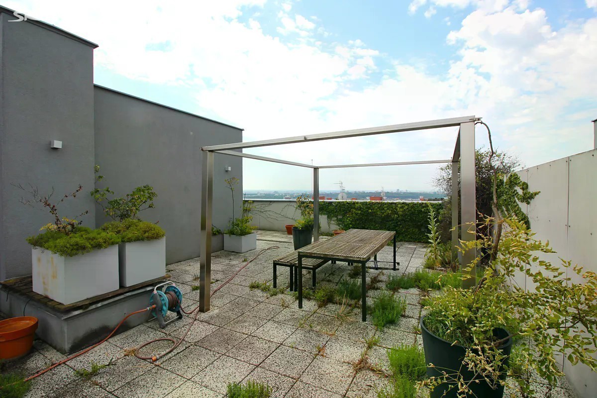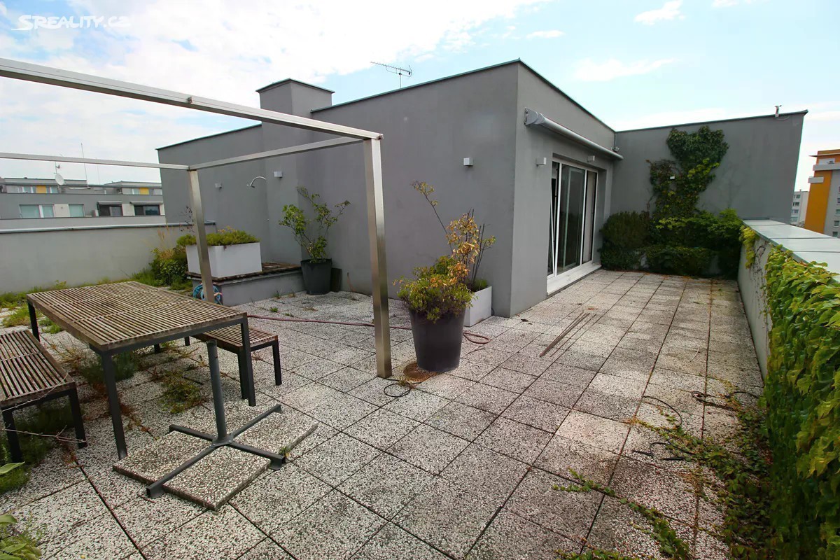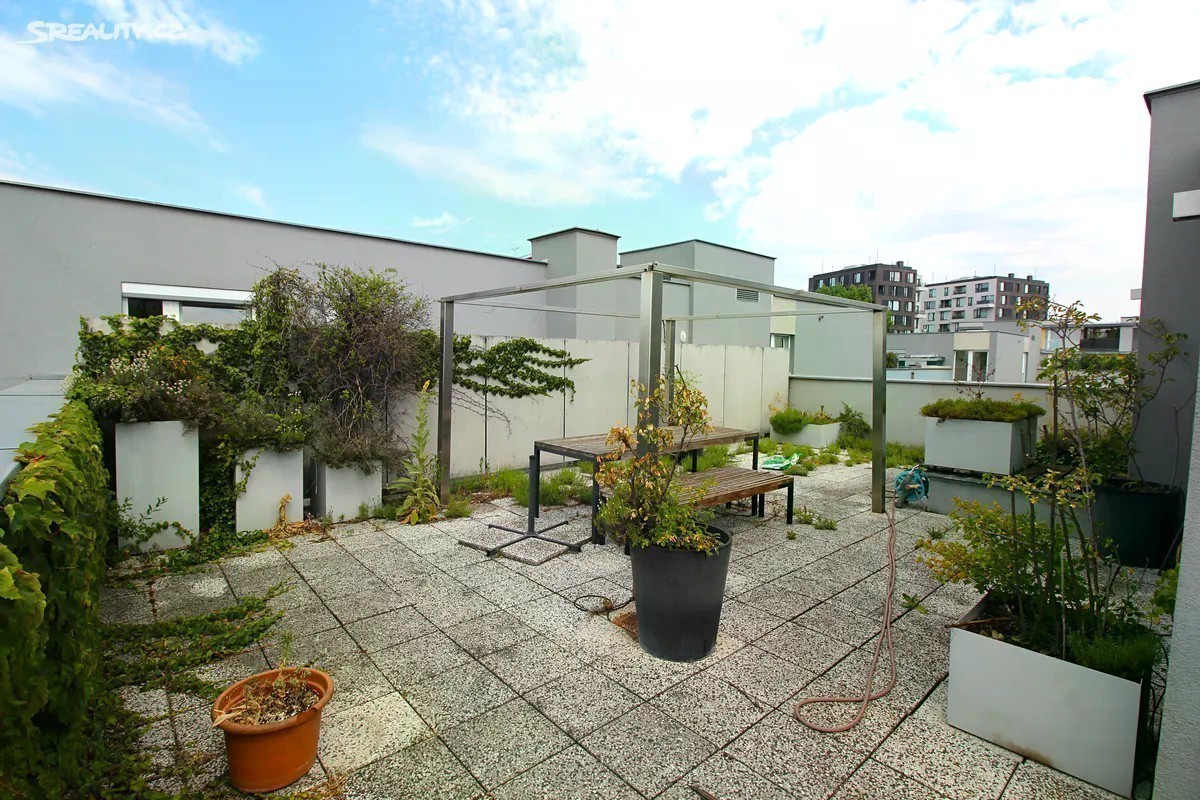 Exklusivní nabídka krásného, světlého a velmi prostorného bytu 3+kk, 85m2 se střešní terasou o rozloze 77m2 a s garážovým stáním, bezprostředně u metra Prosek. Byt se nachází v posledním patře čtyřpatrového domu v ulici Trmická. Tento dům převyšuje ostatní zástavbu a tak výhled z terasy je v podstatě do všech světových stran a je dechberoucí. Byt je dispozičně řešen jako chodba se střešním oknem, komora s úložným prostorem a přípojkou na pračku a sušičku, samostatná toaleta, koupelna s vanou i prostorným sprchovým koutem a dvěma světlovody ve stropě, dále pak ložnice se spoustou úložného prostoru a vestavěnými skříněmi a prostorově velkorysý obývací pokoj ( 40m2 ) s kuchyňským koutem ( vestavěné spotřebiče, Miele, myčka, trouba, kávovar, nahřívač nádobí, parní konvektomat, indukční varná deska, digestoř a vestavěná lednice ) a se vstupem na střešní terasu ( 77m2 ), k dispozici je další pokoj, který je oddělen prosklenými dveřmi. Terasa je slunná, ale stín zajišťuje markýza na el.pohon. Na terase je možné vybudovat zimní zahradu a mít tak k dispozici, další obytný prostor. V bytě je k dispozici klimatizace. K bytu náleží garážové stání v suterénu domu a sklep ( 4m2 ). Obyvatele domu mohou také využívat zahradní atrium ve vnitrobloku s krásnou zahradou, pak také kočárkárnu a místnost na kola.Tato mimořádná nemovitost skýtá klidné bydlení na starém Proseku, což je velmi žádaná a lukrativní lokalita s bezkonkurenční dostupností do centra Prahy, 3 minuty pěší chůze na metro C. Autem se díky napojení na pražský okruh dostanete do centra za 15 minut. Současný Prosek v sobě kombinuje vše, praktickou infrastrukturu i spoustu prostoru pro volný čas a odpočinek. Vřele doporučujeme.