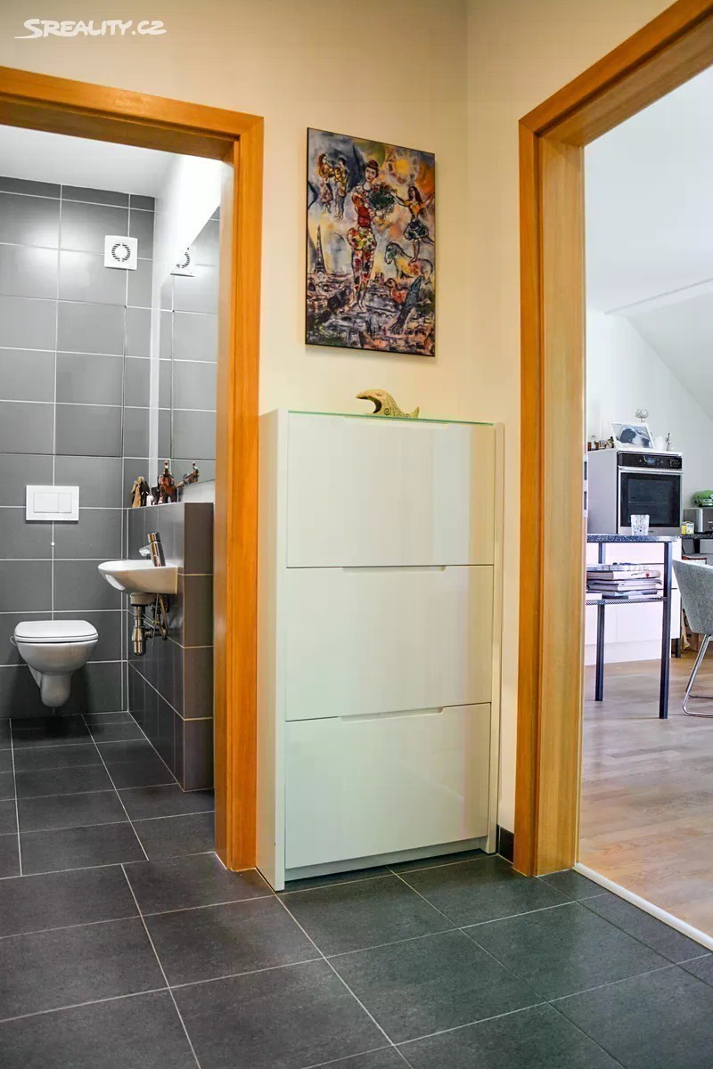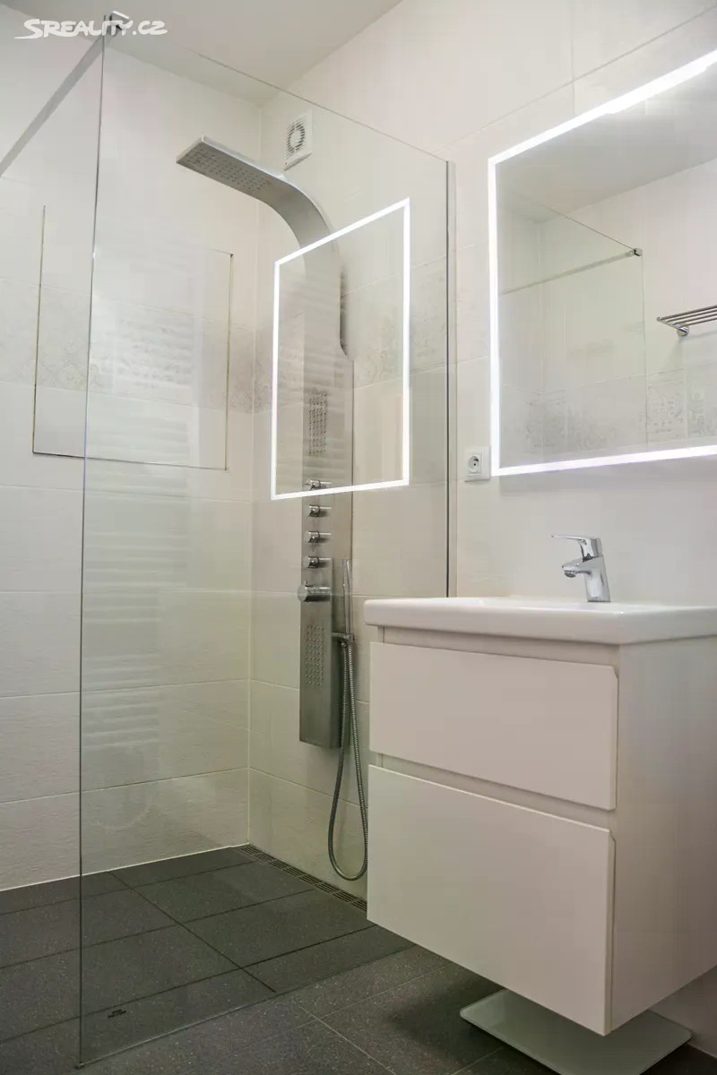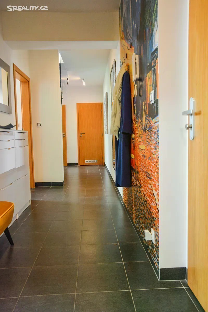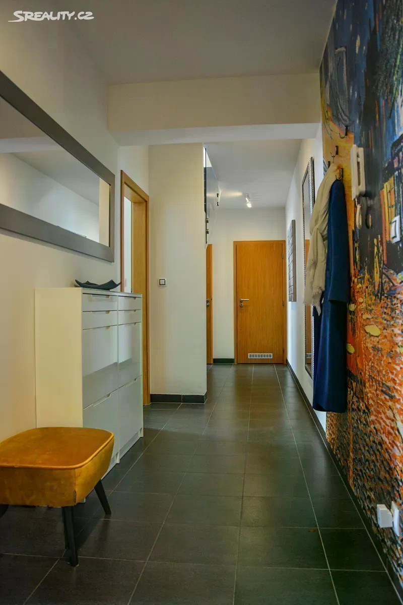 Nabízím Vám výjimečný mezonetový byt 4+kk (původně 5+kk, lze upravit zpět) se dvěma koupelnami a terasou v cihlové novostavbě. Nemovitost se nachází v žádané lokalitě Prahy 9, na starém Proseku. Tento prostorný, velmi dobře udržovaný a zajímavý byt je ideálním řešením bydlení právě pro ty, kteří hledají kombinaci jistého pohodlí, klidné lokality, nevšedního a praktického komfortu. Byt se nachází ve třetím a čtvrtém patře novostavby a nabízí užitnou plochu krásných 120 m². Ve spodní části bytu nalezneme prostornou spojovací chodbu, obývací pokoj jehož součástí je kuchyňský kout a také terasa typu lodžie. Dále koupelnu, samostatné WC, velkou komoru, útulný pokoj sloužící jako pracovna, další pokoj tzv. pro hosty a schodiště do druhé úrovně bytové jednotky. Terasa je jakožto součást obývacího pokoje ideálním místem pro relax s výhledem do klidného vnitrobloku s kaštanem a také na Prosecký kostel. V horní části tohoto mezonetového bytu Vás může nadchnout velmi prostorný pokoj, který byl původně rozdělen na dva menší neprůchozí a nyní slouží k odpočinku v celku jako velkorysá hlavní ložnice. Moderní a praktické vybavení, včetně čistých linií početných vestavěných úložných prostor v obou úrovních bytu mu dodává vzdušnost a lehkost. K bytu náleží také sklep s dostatkem úložného prostoru, a pohodlné parkování pro budoucí majitele bytu zajišťují hned dvě vlastní garážová stání v zabezpečených garážových prostorech v suterénech domu. Mít parkování přímo v domě je v dnešní době neocenitelnou výhodou. Lokalita je klidná a na první pohled se vůbec netváří jako součást velkoměsta. Pokud hledáte nemovitost tohoto typu, tak jste možná našli klidné bydlení dle svých představ. Prohlídku v předem naplánovaném prohlídkovém dni Vám rád nabídnu operativně.