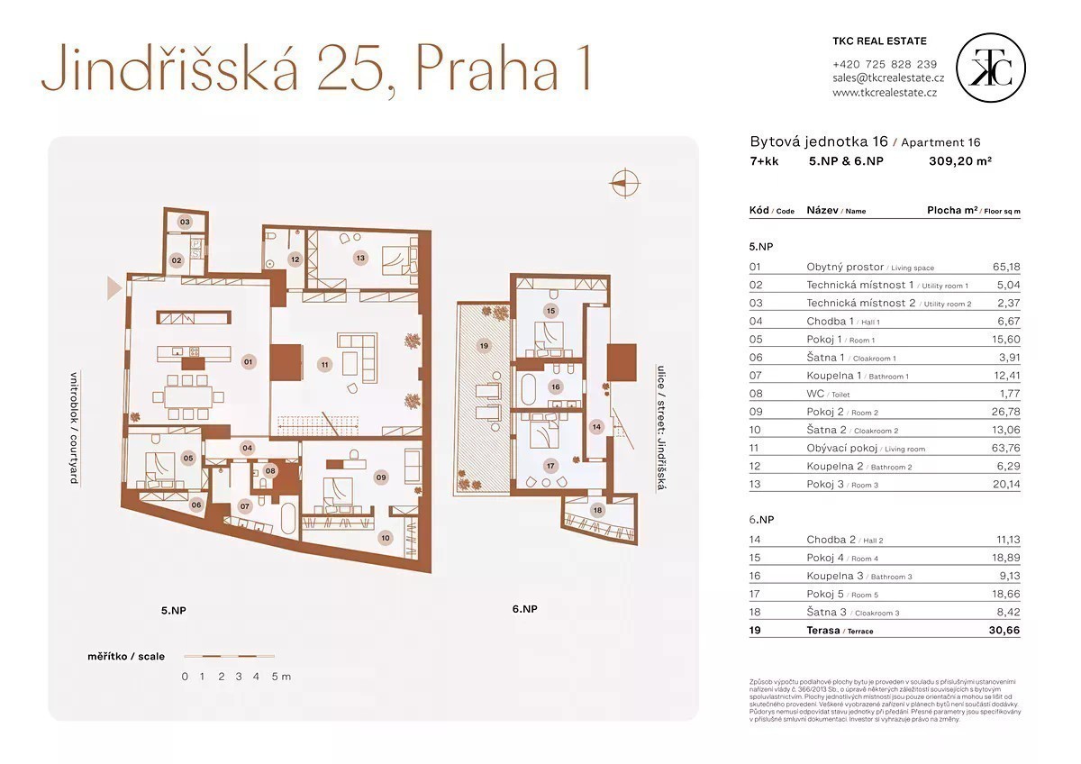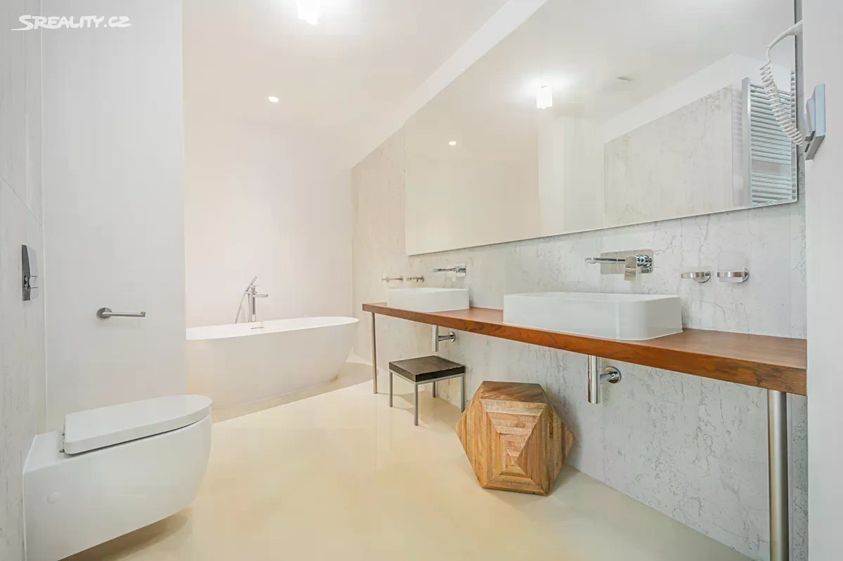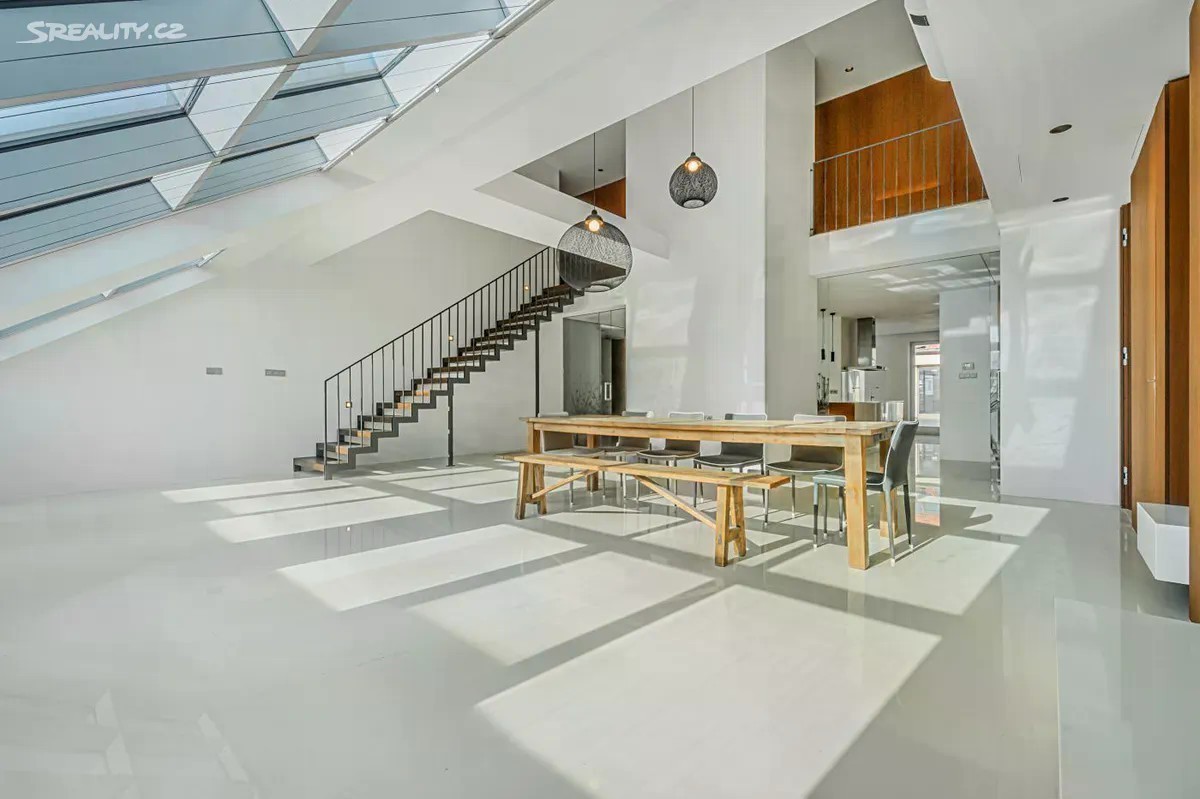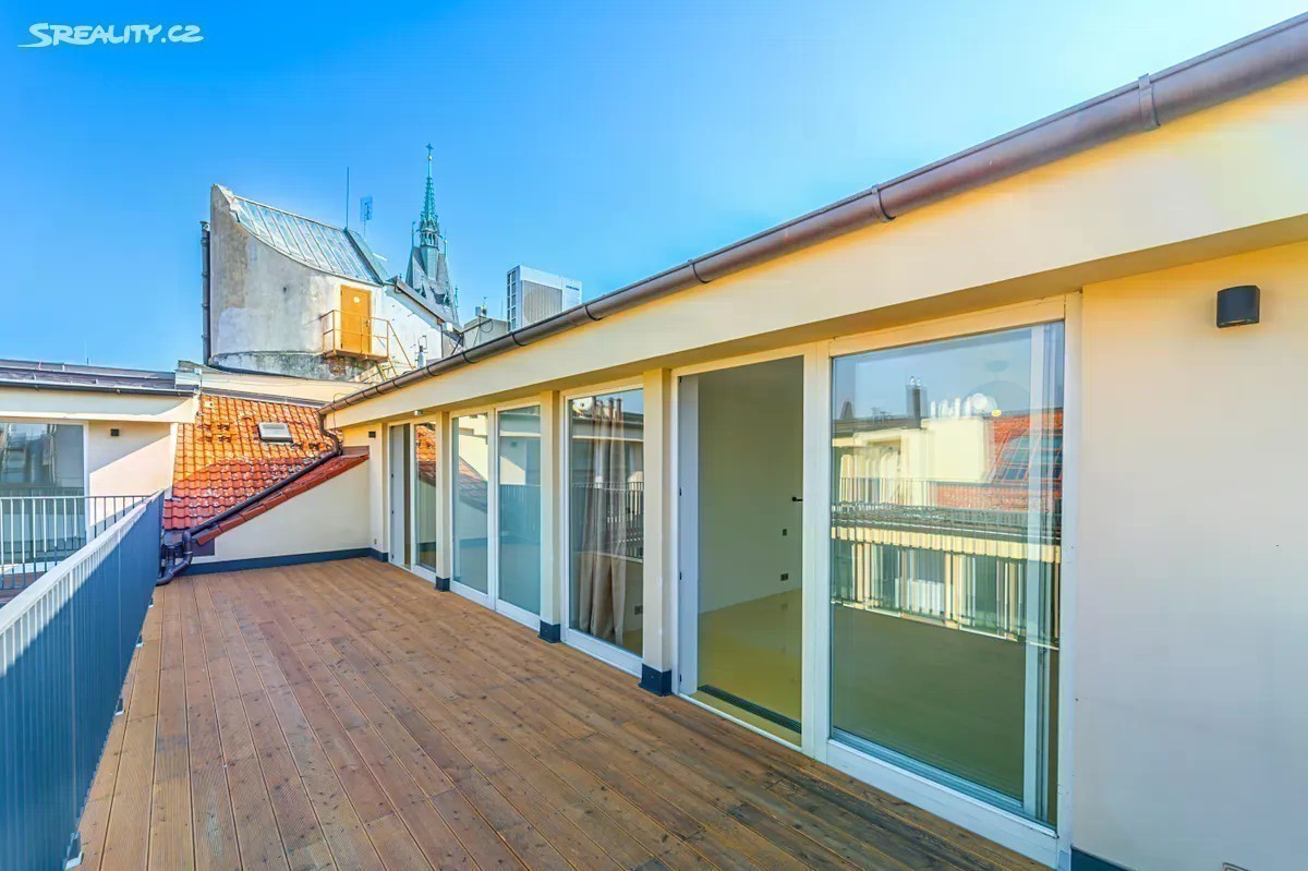 V prestižní ulici Jindřišská, přímo v centru Prahy, nabízíme k prodeji exkluzivní mezonetový byt s dispozicí 7+kk. Jedinečný prostor má obrovskou plochu 309 m² a je situován v 5. a 6. podlaží historického domu z roku 1848 (s výtahem). Byt je dokonale promyšlený a kromě všech obývacích místností a ložnic nabízí také tři koupelny, samostatnou toaletu a tři šatny. Všechny místnosti jsou navrženy s důrazem na špičkové luxusní materiály - masivní dřevěné podlahy, prvotřídní obklady a designové detaily, které z bytu dělají skutečně výjimečný prostor. Součástí bytu je také terasa o velikosti 55 m², ze které je nádherný výhled na střechy Prahy. Stejně jako značná část bytu je orientovaná do klidného vnitrobloku. Velkorysost a důraz na detaily zaručují maximální pohodlí a splňují ty nejvyšší nároky na luxusní bydlení. Byt je ideální jak pro rodinné bydlení, tak pro ty, kteří hledají exkluzivní prostor v centru města. Lokalita Jindřišské ulice nabízí vše, co potřebujete. Jen pár kroků od domu se nachází Václavské náměstí, Hlavní nádraží, prémiové obchody, restaurace a kulturní instituce. Objevte kouzlo tohoto unikátu v centru pražského života. Václavské náměstí: 200 metrů Hlavní nádraží: 300 metrů Můstek: 400 metrů