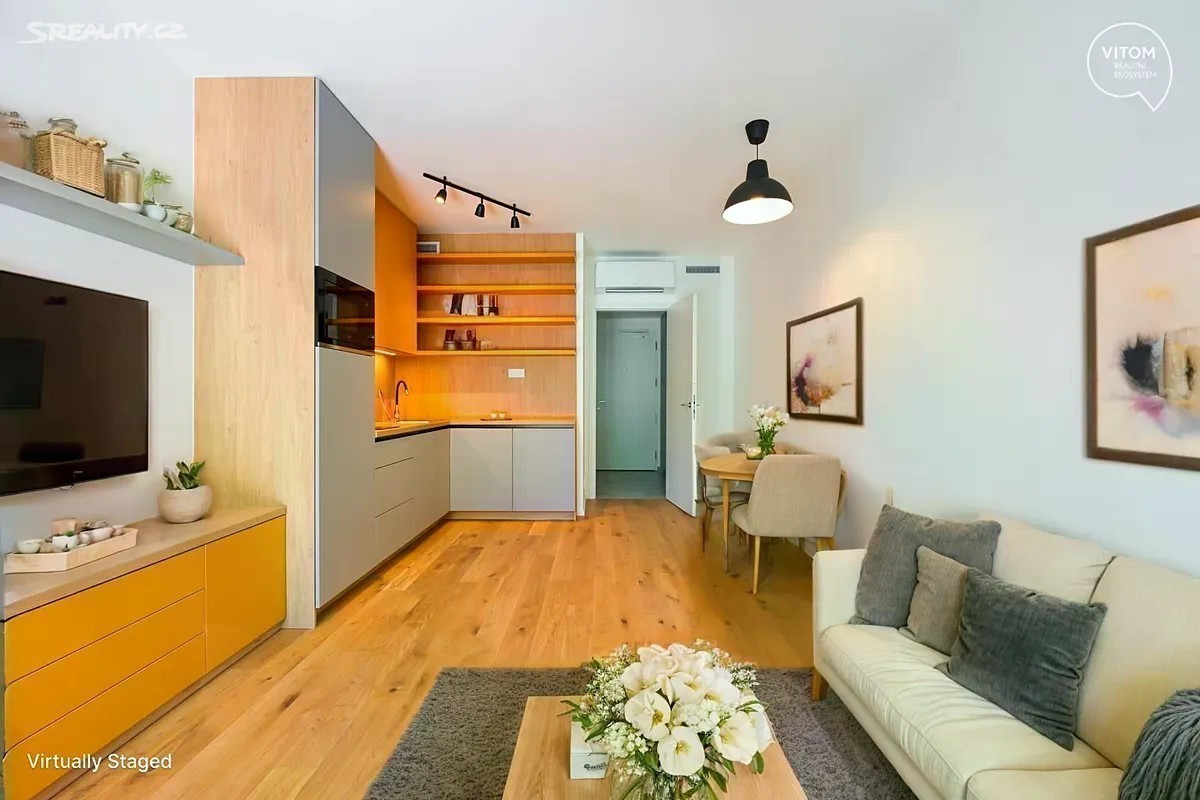 Moderní byt 1+kk s předzahrádkou a wellness zázemím - Ahoj Vanguard, PrahaHledáte chytrou investici nebo stylové první bydlení v srdci moderní Prahy? Nabízíme ke koupi světlý a vzdušný byt 1+kk vprestižním projektu Ahoj Vanguard, který spojuje kvalitní architekturu, prémiové služby a komunitní životní styl. Dispozice: 1+kk | Užitná plocha: 27 m² Předzahrádka: 23 m² | Sklepní kóje: v ceně Umístění: 3. Patro | Stav: novostavba Proč právě tento byt? Byt byl doslova teprve nedávno převzat od developera a ještě v něm nikdo nebydlel. Přímý vstup z obývací části na soukromou předzahrádku - ideální místo pro relax, práci z domova nebo letní posezení. Předzahrádka je vybavena elektrickou zásuvkou a samostatným vodovodním kohoutkem, což zajišťuje maximální komfort při venkovním využití prostoru i snadnou péči o trávník. Velká posuvná okna zajišťují dostatek denního světla a propojení interiéru s venkovním prostorem. Nechybí ani před okenní žaluzie, které poskytují soukromí, tepelný komfort i ochranu před sluncem. Byt je orientován na jižní stranu, což zajišťuje dostatek denního světla po celý den a příjemně prosluněný interiér. V bytě je instalována moderní kuchyňská linka se zabudovanými spotřebiči, koupelna se sprchovým koutem, topným žebříkem a toaletou. Podlaha je dřevěná, nechybí klimatizace, rekuperace ani videotelefon - maximální pohodlí i bezpečnost. Byt je klimatizovaný, s individuálním termostatem, připravený k dovybavení dle vlastního stylu. Prémiové zázemí pro rezidenta a nájemce v ceně. Součástí projektu je privátní wellness zóna, ke které se dostanete v županu rovnou z bytu: - prosklený bazén s výhledem, - několik saun, - plně vybavené fitness centrum, - bezpečný vstup podzemní chodbou přímo z domu. Přístup na společnou terasu s posezením, možností grilování, lednicí a venkovním grilem - ideální pro soukromé akce s rodinou či přáteli. Parkovací stání v garáži je možné dokoupit nebo si pronajmout po předchozí dohodě s vlastníky jednotek. Nejvyšší patro garáží je navíc výborně odhlučněno speciálním akustickým materiálem, díky čemuž nedochází k nežádoucím ozvěnám ani hluku, které by mohly rušit byty umístěné přímo nad tímto podlažím. V areálu projektu je k dispozici také několik veřejných bezplatných parkovacích míst určených pro rezidenty, včetně možnosti dobíjení elektromobilu. Tento jedinečný byt je aktuálně jediný svého druhu v nabídce. Cena je stanovena přiměřeně s ohledem na lokalitu, standart i vybavení. Zálohy na služby a kompletní předpis 4 259 Kč vč. fondu oprav!