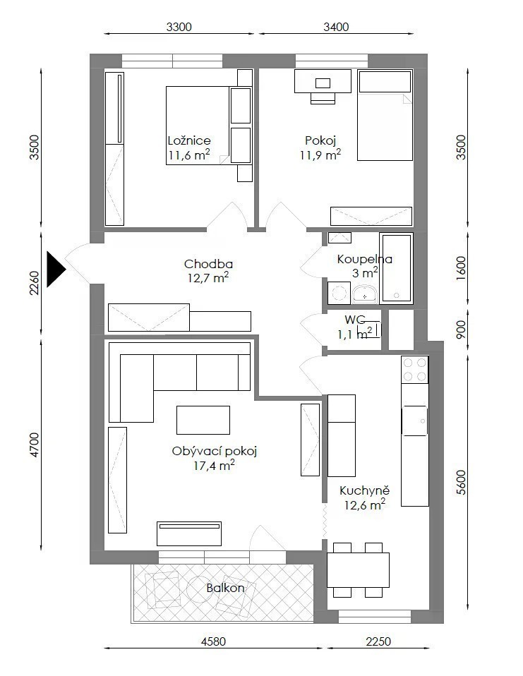 Prodej bytu 3+1 78 m² Srázná, Jihlava