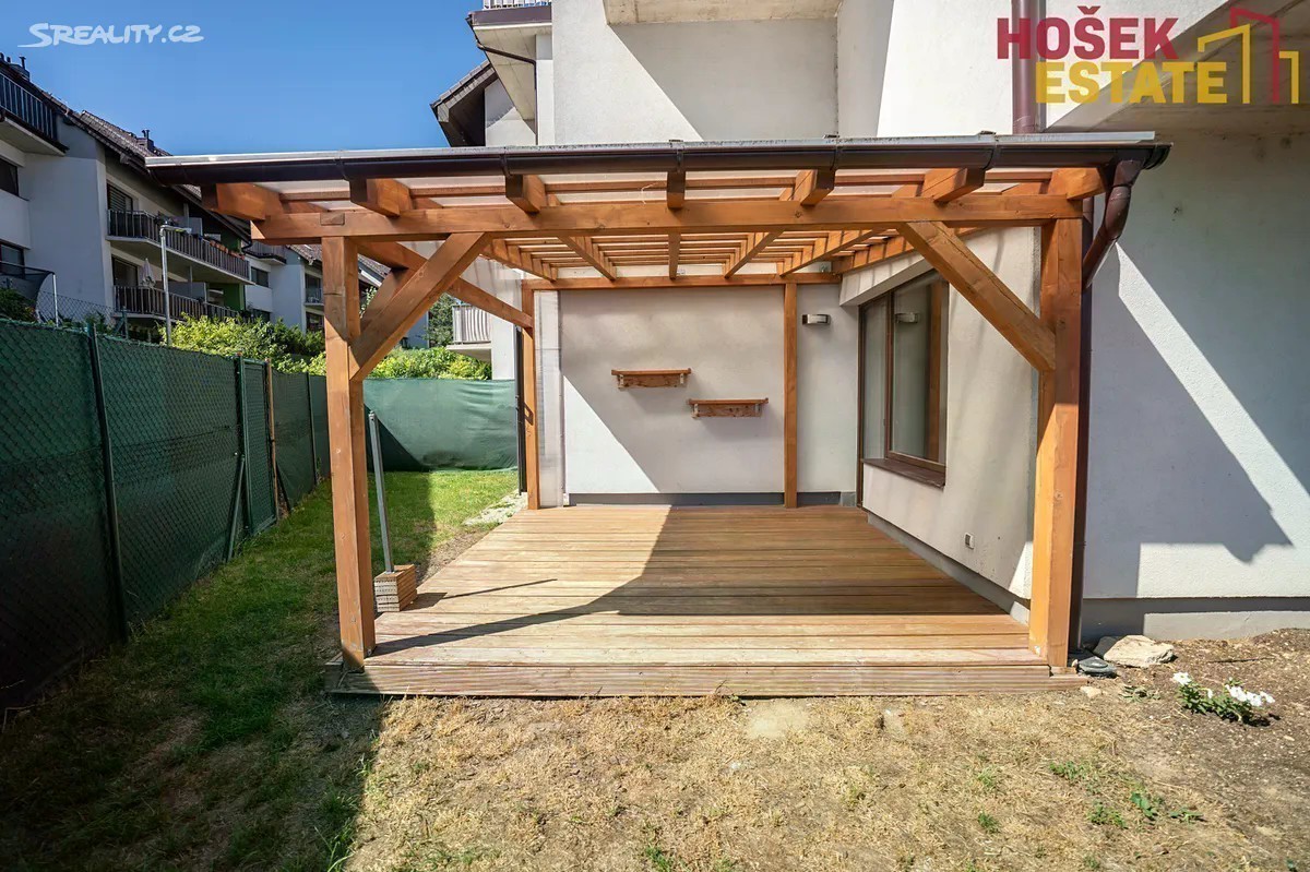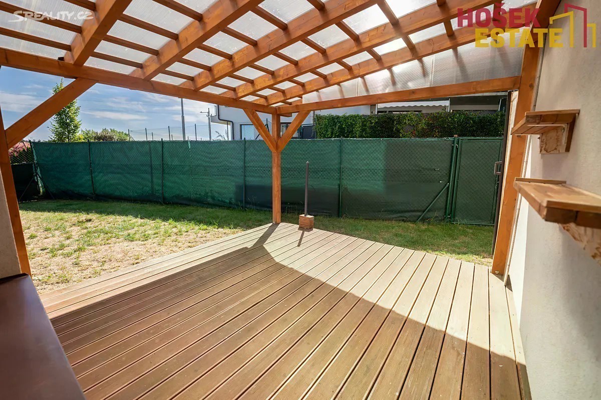 Hošek Estate Vám exkluzivně nabízí krásný, nízkoenergetický byt 2+kk ve velmi žádané lokalitě Moravany u Brna v rezidenční čtvrti Jabloňový sad. Bezbariérový byt s celkovou plochou 54m² se nachází v přízemí cihlového domu ve velmi klidné ulici. Hlavní výhodou je zahrádka o velikosti 102m², která je orientovaná na jih. Díky své poloze tak máte na zahrádce i v bytě soukromí. Jako jeden z mála bytů v této čtvrti je právě s jižní orientaci na kraji budovy. Na zahrádce se nachází terasa o velikosti 16m² která je zastřešena dřevěnou pergolou. Součástí je i boční roleta pro ještě větší soukromí. Na zahrádku se můžete dostat i z chodníku z ulice díky brance. Venku se nachází i vodní kohout a elektrická zásuvka. Velmi praktická dispozice bytu umožňuje dobré a efektivní uspořádání nábytku díky čemuž využijete každý metr. V koupelně se nachází plynový kotel, který zajišťuje teplo a teplou vodu. Díky tomu jsou s bytem spojeny velmi nízké měsíční náklady a to do 4.000Kč včetně fondu oprav, elektřiny a plynu. K bytu také náleží vyzděná sklepní kóje. Díky PENB ve třídě B lze využít zvýhodněné financování, které Vám rádi pomůžeme zajistit. Tento byt splňuje veškeré parametry moderního bydlení. Neváhejte a napište nám. Rádi Vám byt ukážeme na osobní prohlídce.