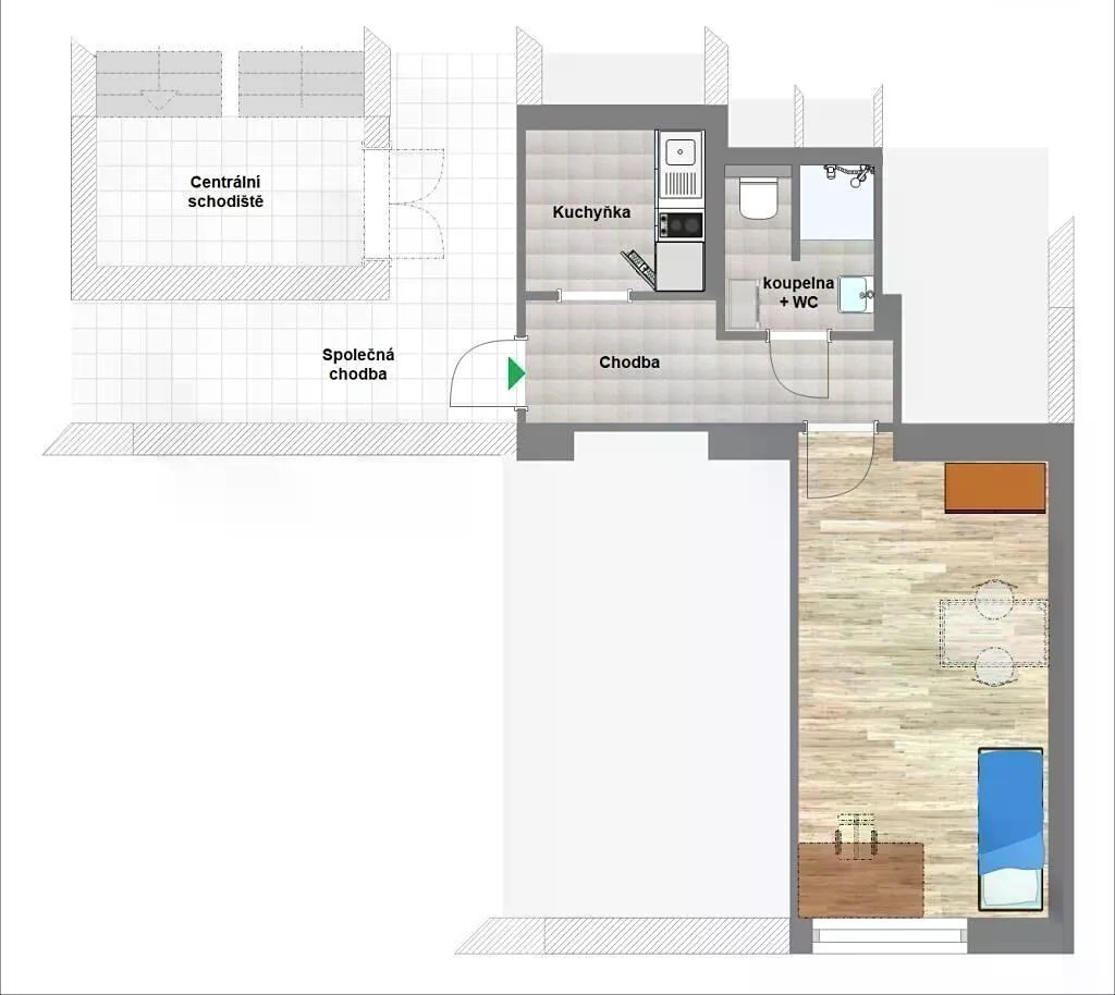 Pronájem bytu 1+1 30 m² Sladkovského, Pardubice - Zelené Předměstí