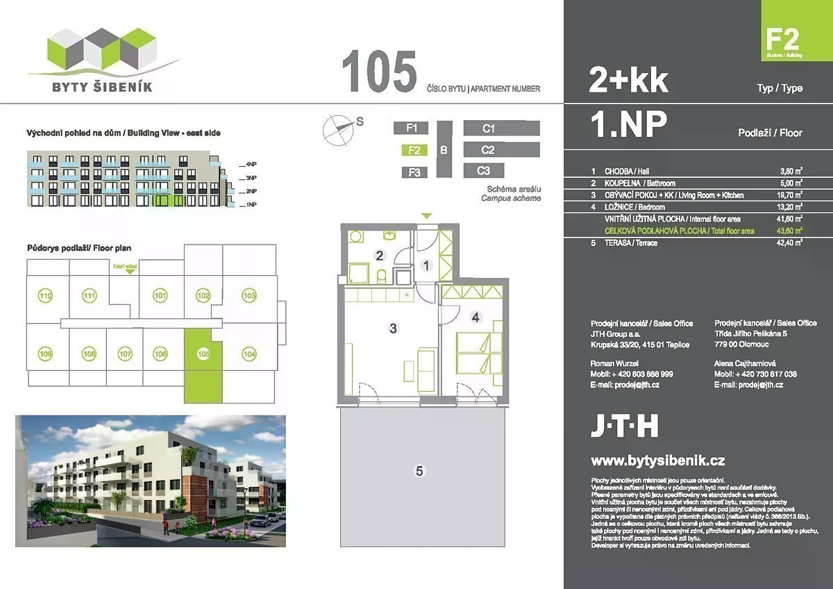 Šibeník je ideální adresa odkud máte všude blízko. Lokalita mezi ulicemi Na Šibeníku, tř. Míru a tř. Jiřího Pelikána je umístěna v širším centru Olomouce s výborným dopravním spojením MHD i napojením mimo město na Brno a Mohelnici. Pěšky lze využít procházku městskými parky na náměstí za kulturou. Školy, školky, lékařská péče i obchody jsou v bezprostřední blízkosti. Projekt Šibeník II nabídne byty s dispozičním řešením 1+kk až 4+kk. Koncepce nízkopodlažních bytových domů je architektonicky řešena tak, aby svým obyvatelům poskytla zázemí pro rodinný život a zároveň plnila požadavek nadčasovosti, elegance, funkčnosti a vysokého komfortu. Nabízíme výhodné platební podmínky - po celou dobu výstavby vám stačí uhradit pouze 20% z ceny bytu a doplatek kupní ceny počká až po dokončení stavby a kolaudaci. Smluvně dohodnuté ceny garantujeme. Byty budou dokončeny do konce roku 2025 a k předání/ nastěhování budou brzy na jaře 2026. Pozn. K bytu je povinné přikoupit parkovací stání v podzemní garáži za 450.000,-Kč.