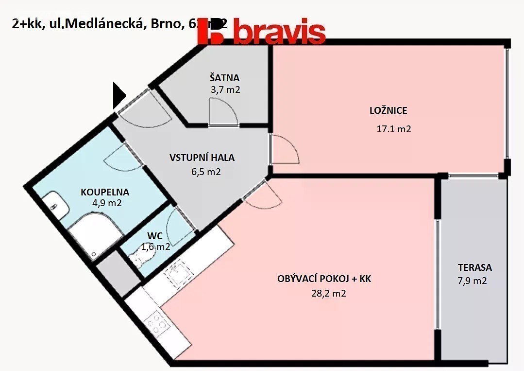 Prodej bytu 2+kk 62 m² Medlánecká, Brno - Řečkovice