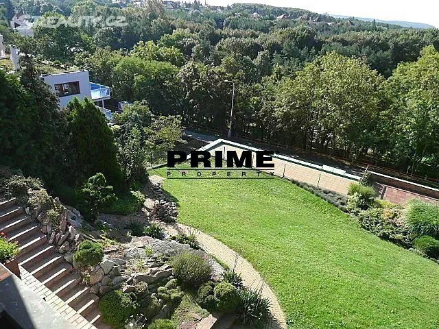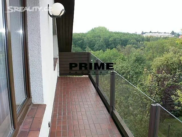 Prostorný, klimatizovaný, 4 ložnicový (+ pracovna), nezařízený, mezonetový byt se 2 koupelnami k pronájmu, 6+1, 293m2, s terasou 10m2, garáží a možností užívat společnou zahradu. Byt je situovaný v 1. patře a podkroví velké rodinné vily s celkem 3 jednotkami. Nemovitost se nachází v klidné rezidenční lokalitě v zeleni na rozhraní Hodkoviček a Braníku, v blízkosti zastávky autobusu (30 minut MHD do centra Prahy), nedaleko nákupního centra Novodvorská (2 minuty jízdy autem), 10 minut jízdy autem k Britské mezinárodní škole a 15 minut jízdy do centra. V blízkém okolí jsou tenisové kurty, hřiště na beach volejbal, golfové hřiště, cyklistické a běžecké stezky. Z bytu je výhled do zeleně. Dispozice dolní části bytu: vstupní hala s vestavěnými skříněmi, velký obývací pokoj (49m2) propojený s plně vybavenou kuchyní (25m2) se spotřebiči (sklokeramická varná deska, trouba, myčka, lednice s mrazákem a mikrovlnná trouba), tři ložnice, pracovna / šatna (přístupná z jedné ložnice) a dvě koupelny (jedna s masážní vanou, sprchovým koutem, dvojumyvadlem, bidetem a toaletou a druhá se sprchovým koutem, umyvadlem a toaletou). V podkroví je prostorná galerie vhodná k využití jako herna pro děti a jedna samostatná ložnice. Součástí bytu je také terasa přístupná z obývacího pokoje / kuchyně. Na podlaze jsou parkety, dlažba a koberec (na galerii). Klimatizace, pračka, sušička, vestavěné skříně, satelit, alarm. U domu je zahrada o výměře 1000m2, která je též nájemcům k dispozici. K bytu náleží jedno stání v garáži a jedno parkovací stání na pozemku před garáží. Kauce: 2 nájmy. Nájemné: 55.000 Kč + záloha na poplatky 12.000 Kč/měsíc.
