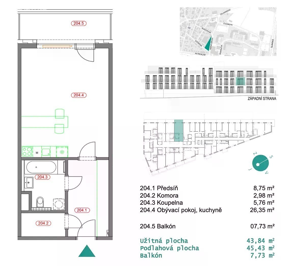 Exkluzivně nabízíme k prodeji moderně a prakticky vybavený byt v nedávno zkolaudovaném projektu "Byty Hofbauerova" v ulici Hofbauerova v Řepích. Byt s dispozicí 1KK s vnitřní užitnou plochou 44m2 a s terasou 8 m2 se nachází ve 2.nadzemním podlaží a je orientovaný na západ do klidného uzavřeného vnitřního bloku. K bytu náleží také parkovací stání v podzemní garáži, které je již započteno v ceně. Byt je velmi tichý, světlý a elegantní, vybaven kuchyňskou linkou s barovým sezením a šatními skříněmi na míru v prostorné vstupní hale. Byt je vybaven postelí. V bytě se dále nachází koupelna s vanou a pračkou a také komora o velikosti 3m2. Veškerý nábytek dle fotografie je již zahrnut v ceně. Bytový dům Hofbauerova je nízkopodlažní bytový dům se třemi nadzemními a jedním podzemním podlažím. V 1. podzemním podlaží se nachází garážová stání a sklepy. V domě je výtah. Projekt Bytový dům Hofbauerova v Řepích hrdě nese název ulice, na které se nachází. V přímém sousedství bytového domu je k dispozici např. prodejna potravin, restaurace, květinářství a další služby. Pro vzdělávání dětí a využití jejich volného času je na výběr Základní umělecká škola Blatiny, Základní škola Jana Wericha, Mateřská škola Pastelka, Školička a jesle Rozmarýnek - vše v docházkové vzdálenosti.
