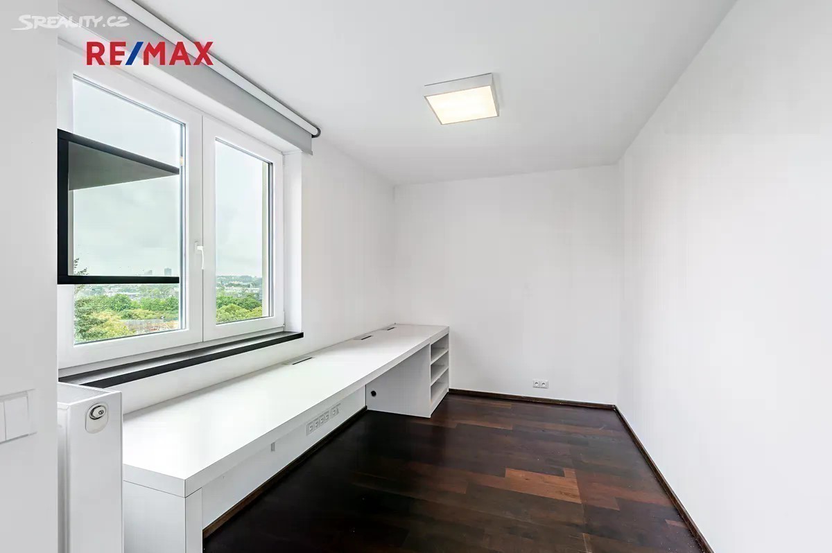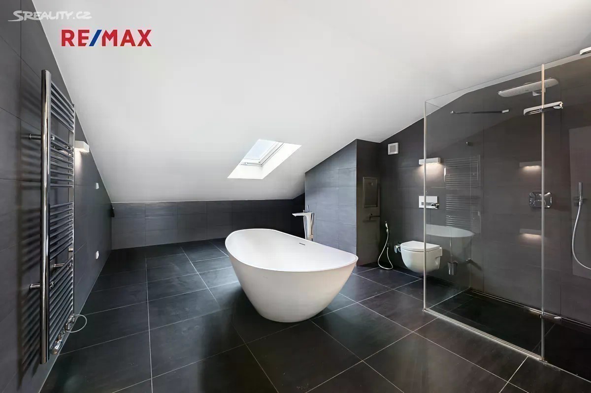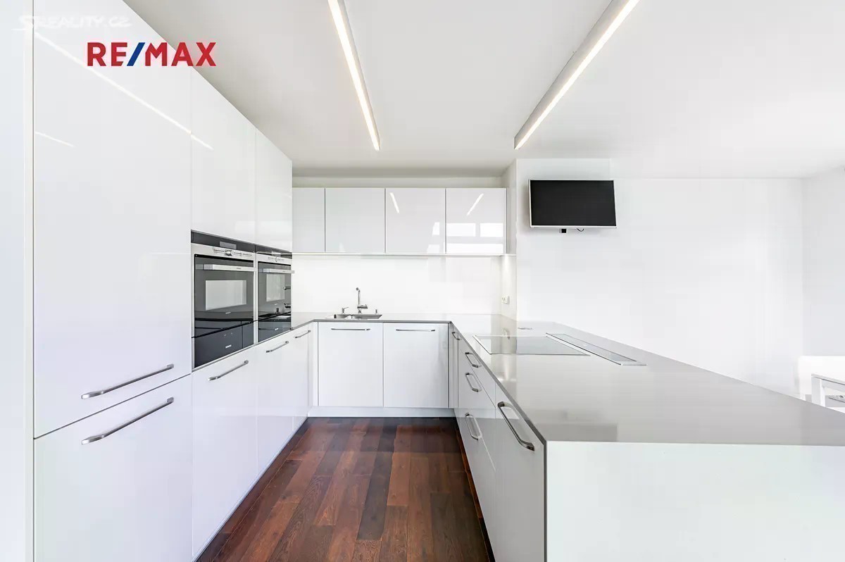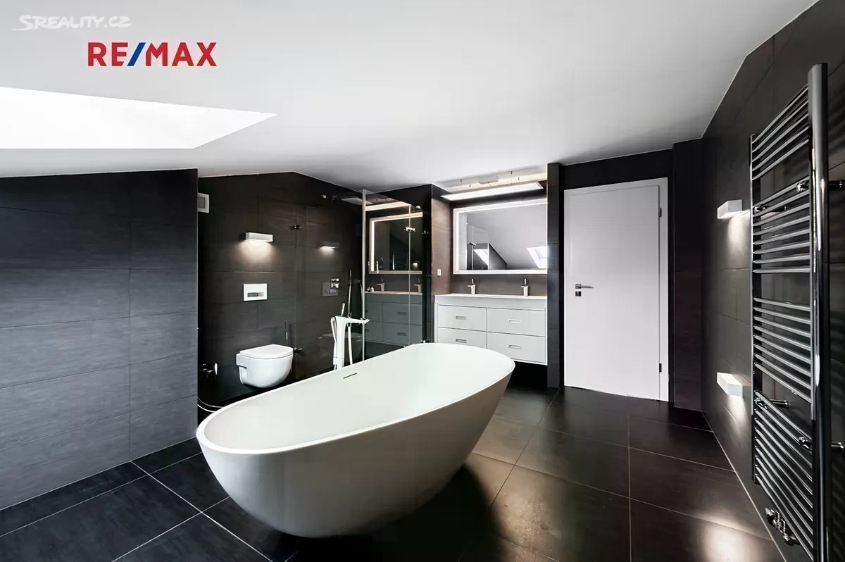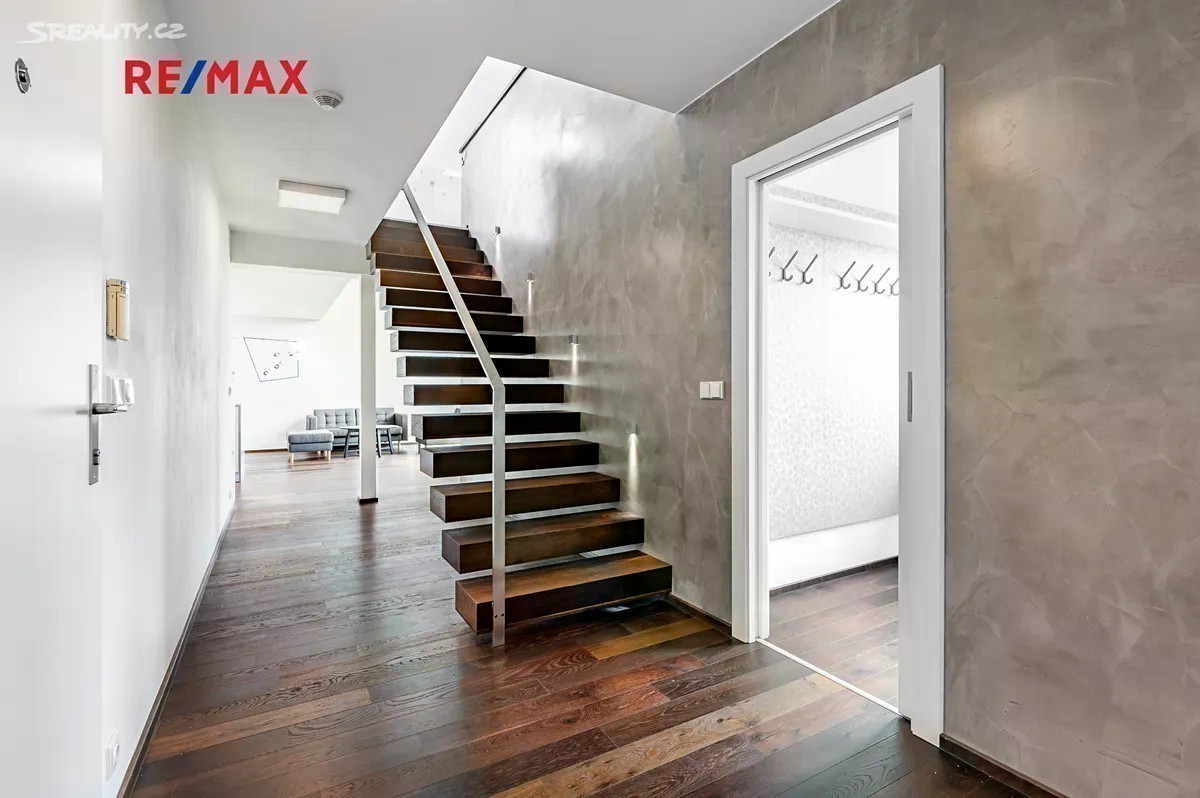 Exkluzivně nabízím k prodeji reprezentativní mezonetový byt 5+KK o celkové užitné ploše 204 m², s lodžií (6,6 m²), terasou (15,6 m²) a vlastním parkovacím stáním. Byt se nachází v nejvyšším, pátém patře bytového domu s výtahem. Od výtahu k bytu vede samostatné schodiště. Převod do osobního vlastnictví je v procesu. Byt disponuje dvěma podlažími. Prvnímu patru dominuje prostorný a světlý obytný prostor s kuchyňským koutem, který je vybaven vestavěnými spotřebiči. Z obývací části je přístup na terasu orientovanou na západ. V tomto podlaží se dále nachází tři pokoje - jeden z nich má vlastní šatnu a en-suite koupelnu se sprchovým koutem a toaletou. Další toaleta je přístupná z chodby a navazuje na technickou místnost s plynovým kotlem a místem pro pračku a sušičku. V horním patře je hlavní ložnice s vlastní koupelnou, která je vybavena masážní vanou, sprchovým koutem a toaletou. Součástí této úrovně je galerie navazující na pracovnu a také jižně orientovaná terasa a vestavěné úložné prostory. Byt je vybaven dřevěnými podlahami a dlažbou, okna jsou plastová s trojsklem s orientací na sever, jih a západ. K příjemnému klimatu přispívají klimatizační jednotky a elektrické/manuální vnitřní rolety. Vytápění a ohřev vody zajišťuje vlastní plynový kotel. Internet je přiveden optickým kabelem. Byt je zabezpečen s napojením na bezpečnostní agenturu. Součástí prodeje je také vyhrazené parkovací stání. Bytový dům se nachází na oploceném pozemku s udržovanou zelení a parkovací zónou pro obyvatele domu. V okolí je kompletní občanská vybavenost - školy, školky, lékařská zařízení, obchody, restaurace a sportoviště. V docházkové vzdálenosti je také několik parků a zelených ploch. Dopravní dostupnost Lokalita Záběhlice nabízí výborné spojení do centra města prostřednictvím MHD i autem. V blízkosti jsou zastávky autobusů i tramvají, rychlé napojení na Jižní spojku. Pokud máte zájem o prohlídku, prosím vyplňte formulář pod inzerátem a budeme vás kontaktovat s možnými termíny. V případě většího zájmu bude nemovitost prodána nejlepší nabídce. Pozn.: Rozměry ploch jsou orientační.