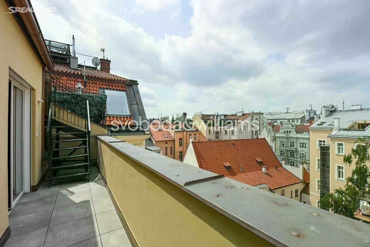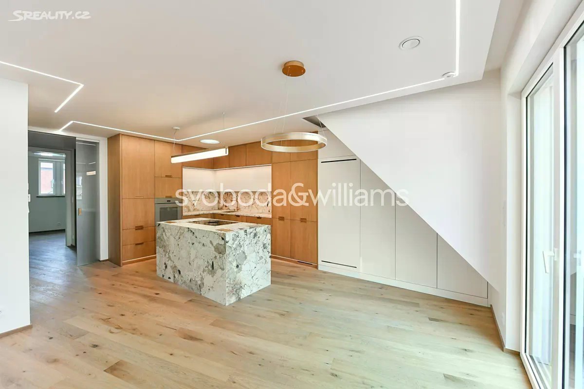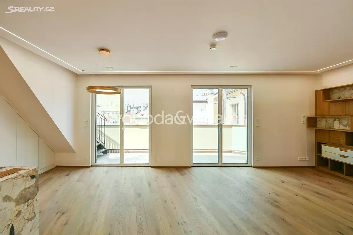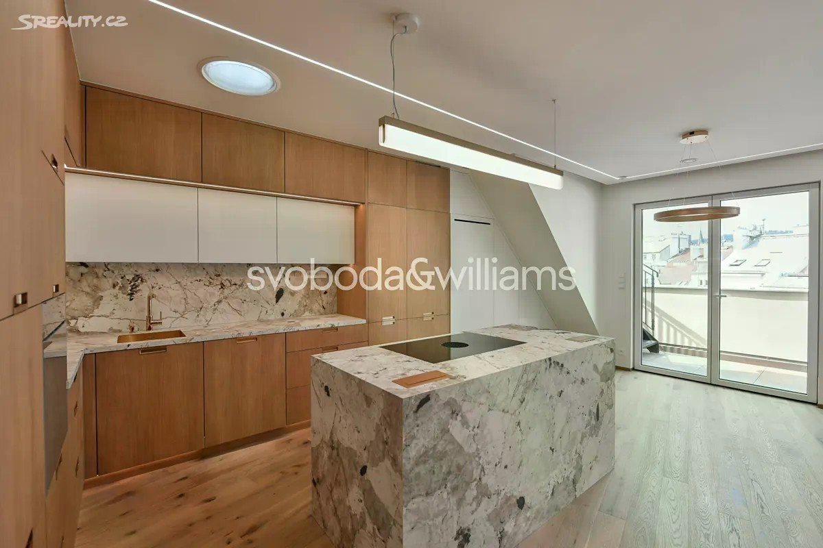 Nabízíme k pronájmu vysoce kvalitní, kompletně nově zrekonstruovaný nezařízený byt (půdní vestavbu) s terasou a střešní terasou v 5., nejvyšším patře dobře udržované historické budovy s výtahem a zachovanými původními architektonickými prvky. Dům stojí v atraktivní lokalitě v historickém centru Prahy v těsné blízkosti Staroměstského náměstí a nábřeží Vltavy. Pařížská ulice se svými elegantními historickými budovami, luxusními obchody, značkovými butiky a restauracemi je považována za nejprestižnější adresu v Praze. Interiér bytu tvoří obývací pokoj s plně vybavenou kuchyní a terasou se schody vedoucími nahoru na střešní terasu, dále 2 ložnice, koupelna (vana, sprchový kout, toaleta), chodba s vestavěnými skříněmi, toaleta pro hosty a vstupní chodba s vestavěnými skříněmi. Klimatizace, inteligentní ovládání domácnosti zn. Loxone, dřevěné podlahy, mramorová dlažba v koupelně a na toaletě, elektricky ovládané předokenní žaluzie, plynový kotel, podlahové vytápění, pračka, sušička, mramorová pracovní deska v kuchyni, myčka, indukční varná deska s integrovanou digestoří, bezpečnostní kamery v domě.