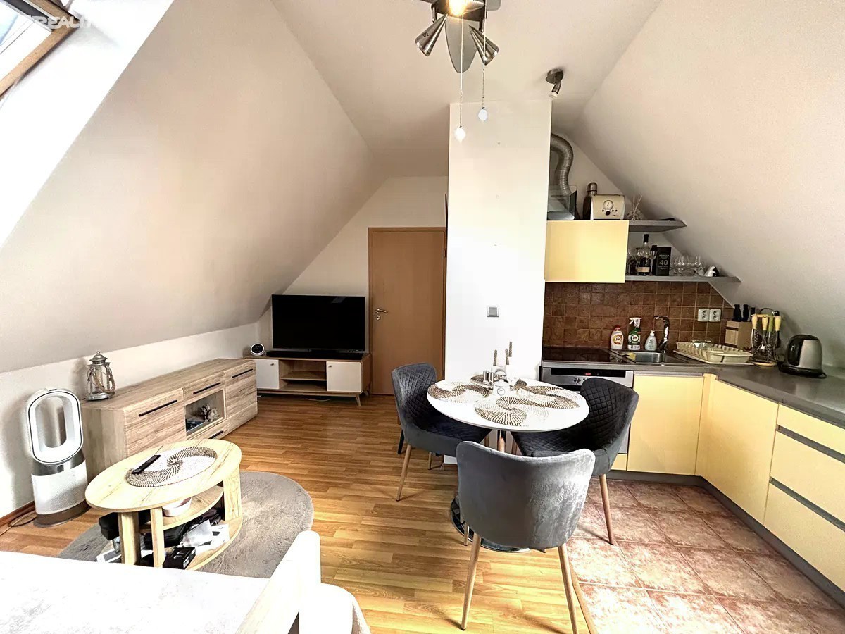 Dovolujeme si Vám exkluzivně nabídnout velmi pěkný podkrovní byt dispozice 2+kk o celkové výměře bytu 45,05m2 ve 3. nadzemním podlaží (2. patro) ze 3. NP zděného domu ve velmi žádané a klidné lokalitě Prahy - západ, Jesenice, ul. Lomená, kde se bytová zástavba velmi dobře prolíná se zástavbou rodinných domů a zapadá do místní krajiny s výbornou infrastrukturou. K bytu náleží ke společnému užívání klidná zahrada o výměře 469m2 s pergolou, grilem a dětským hřištěm. Vlastník ocení možnost odpočinku, posezení, grilování na zahradě. Bytová jednotka je v osobním vlastnictví - je možno využití hypotečního úvěru, se kterým Vám rádi pomůžeme. Bytová jednotka disponuje obýv.pokojem s kuch.koutem orientovaným na východ a západ o výměře 19,55m2, pokojem orientovaným na východ a západ o výměře 13,68m2, chodbou o výměře 5,37m2, koupelnou s rohovou vanou a WC o výměře 6,45m2. Kuchyňská linka s vestavěnými spotřebiči zn. Siemens - el. trouba, sklokeramická varná deska, odsavač par, lednice s mrazákem. V pokoji zůstane vestavěná šatní skříň, pracovní kout, v chodbě komoda na míru, věšák. Střešní okna jsou dřevěná s interiérovými posuvnými roletami. Podlahové krytiny - obýv. pokoj s kuch.linkou a pokoj - plovoucí podlaha, chodba, koupelna s WC - dlažba. Nízké měsíční poplatky - 3.000,- Kč + el.energie bytové jednotky, cca 1.500,- Kč. Bezproblémové parkování - u domu jsou dvě prostorná parkoviště. Bytová jednotka je k dispozici ihned po uhrazení kupní ceny. Dům byl postaven v roce 2005, je ve výborném technickém stavu - v roce 2023 nová fasáda domu, vstupní dveře do domu, revitalizace oken. Závěrem roku 2024 byla vyměněna obě oběhová čerpadla ke každému kotli, hlavní oběhové čerpadlo topení a ponorné čerpadlo v jímce. V domě je kotelna, která slouží pro ohřev vody a vytápění všech bytových jednotek v domě. V Jesenici je veškerá občanská vybavenost - lékaři, zubní ordinace, školky, základní škola, anglická škola Sunny Canadian International School, Billa, Albert, Lidl, drogerie DM, lékárny, restaurace, Šabatovo zmrzlinářství, kroužky pro děti - taneční studio Hazard, fotbalové hřiště, fitness centrum Ella, Adams Family aj. Město Jesenice pořádá pro své občany četné kulturní akce. Velmi dobré dopravní spojení BUS stanice Jesenice, Bytovky 400m (cca 6 minut chůze) od domu na metro C - Budějovická. Z místa je velmi dobré dopravní napojení na dálniční obchvat Prahy D0 i obchvat Jesenice - vozem 2 km, cca 3 minuty napojení na městský okruh směr Brno, Smíchov, Plzeň, letiště. K relaxaci a aktivnímu odpočinku je možno využít procházek k Průhonickému parku - zadní část, cyklostezky Jesenice, Vestec, fitness centra Ella, Adams Family. Doporučuji - velmi vyhledávaná a oblíbená oblast pro rodiny s dětmi, s dostatkem zeleně, se silným občanským zázemím. Klidná část Prahy-západ s velmi dobrou dopravní dostupností do centra, která perfektně naplňuje požadavky současného bydlení a aktivního moderního městského života. Moc ráda Vám poskytnu více informací a domluvíme si osobní prohlídku této velmi pěkné nemovitosti.