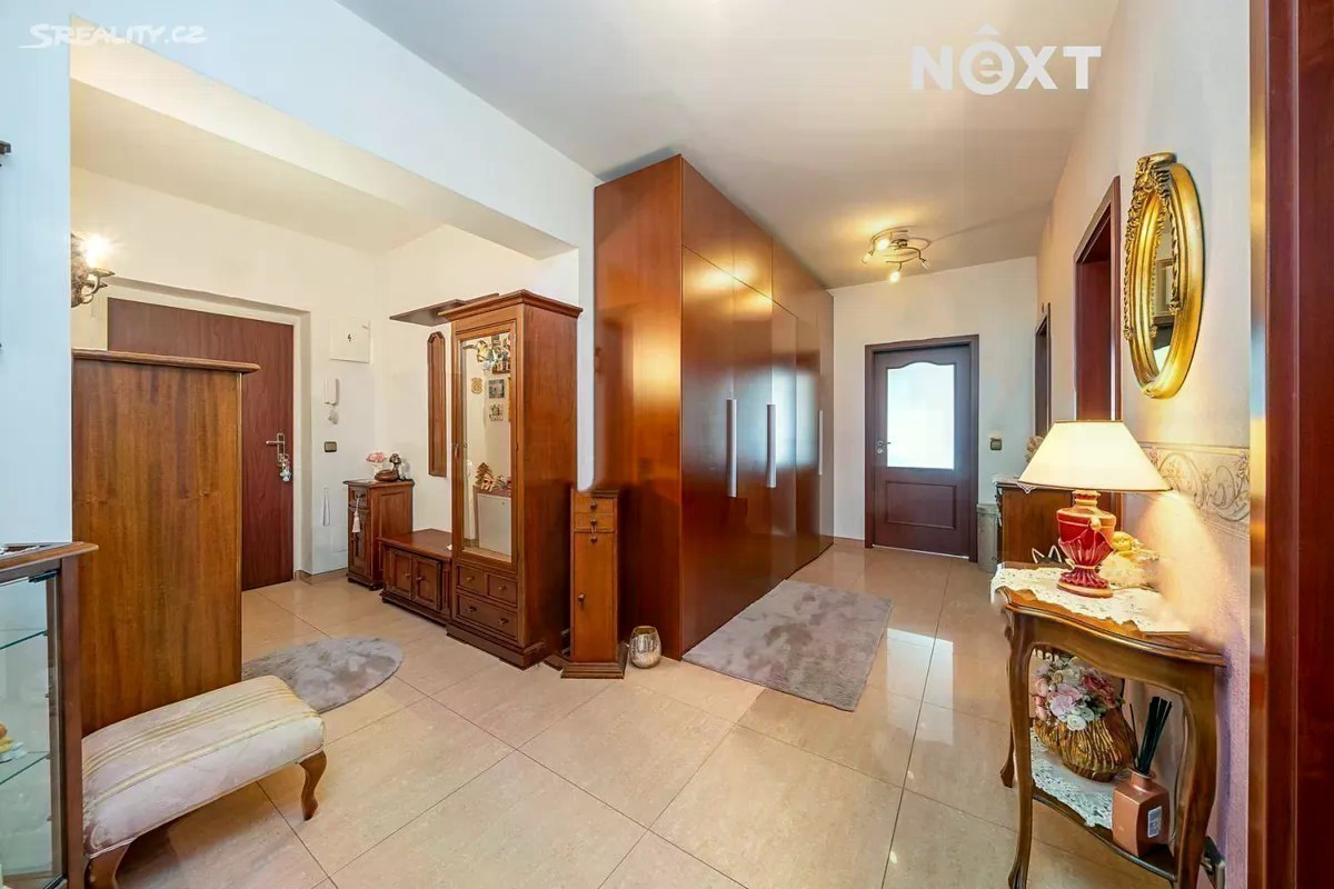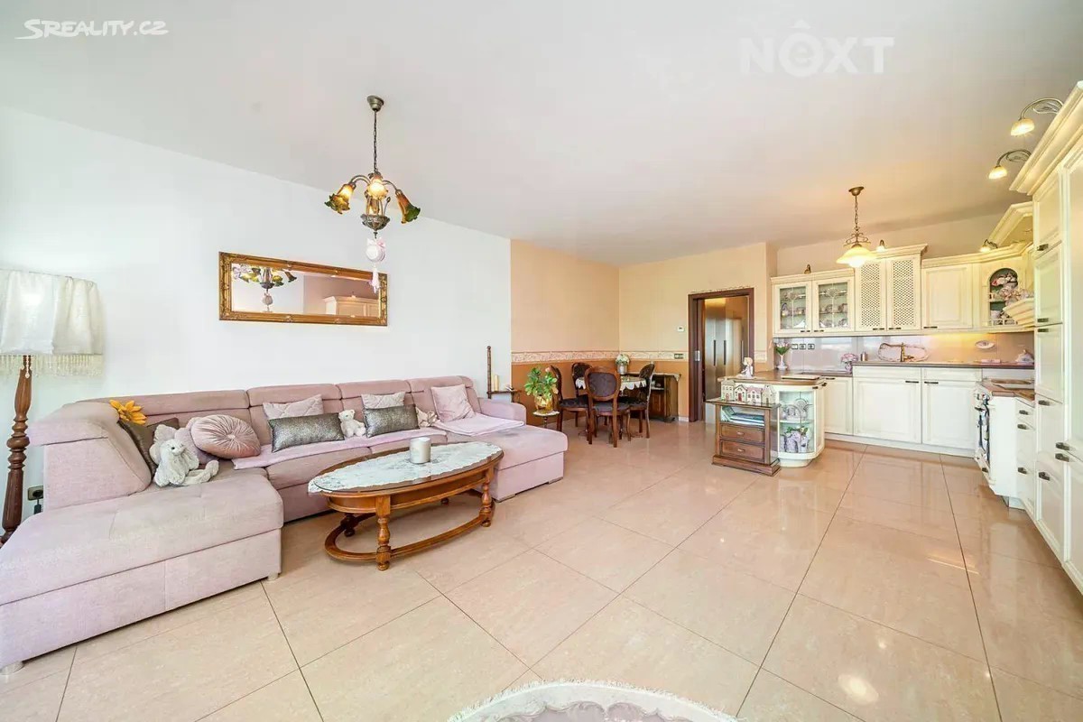 Dokonale udržovaný a perfektně čistý byt, zařízený kvalitními materiály a osobitým vkusem, které mu společně dodávají noblesní atmosféru! • dispozice bytu 3+1 • výměra 89 m² • 2 balkony, sklepní kóje • 6. patro ze 7 (s výtahem) • včetně parkovacího stání v domě Popis dispozice: Prostorné zádveří i chodba, neprůchozí pokoje, obě ložnice orientované do klidové zóny, 2 balkony umístěné na opačných stranách bytu pro efektivní větrání, příjemně velká koupelna, samostatné WC. Dispozice bytu vytváří pocit otevřenosti, vzdušnosti a přirozené světlosti. Stav bytu a tech.údaje: Byt je ve špičkovém stavu, udržovaný s maximální péčí. Ve všech místnostech je světlá velkoformátová dlažba s podlahovým topením napojeným na dálkové vytápění, dálkový ohřev teplé vody, dveře s obložkovými zárubněmi. Vybavení bytu: Kuchyňská linka prémiové značky Hanák s kvalitními elektrospotřebiči, koupelnový nábytek na míru, v chodbě velká šatní skříň na míru s posuvnými dveřmi, vybavení dětského pokoje, další zařízení bytu dle dohody. Měsíční náklady: 1 643 Kč - fond oprav, správa, spol. elektřina apod. 2 217 Kč - záloha na teplo 1 430 Kč - záloha na vodu (4 osoby) 2 000 Kč - elektřina bytu Byt se nachází ve skvělé lokalitě, volný po dohodě. Neváhejte! Domluvte si prohlídku ještě dnes! Zajištění nejvýhodnějšího financování při koupi je samozřejmostí. Při složení 20 % vlastních prostředků lze řešit i financování bez prokazování příjmů. Potřebujete vyměnit své bydlení za tuto nemovitost? Vezmeme vaši nemovitost do protiúčtu nebo zprostředkujeme její prodej. Pro komunikaci uvádějte evidenční číslo zakázky N112536.