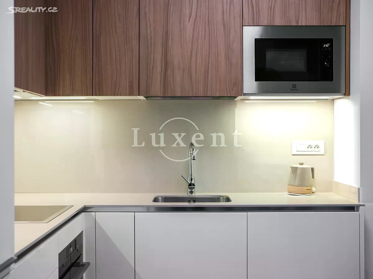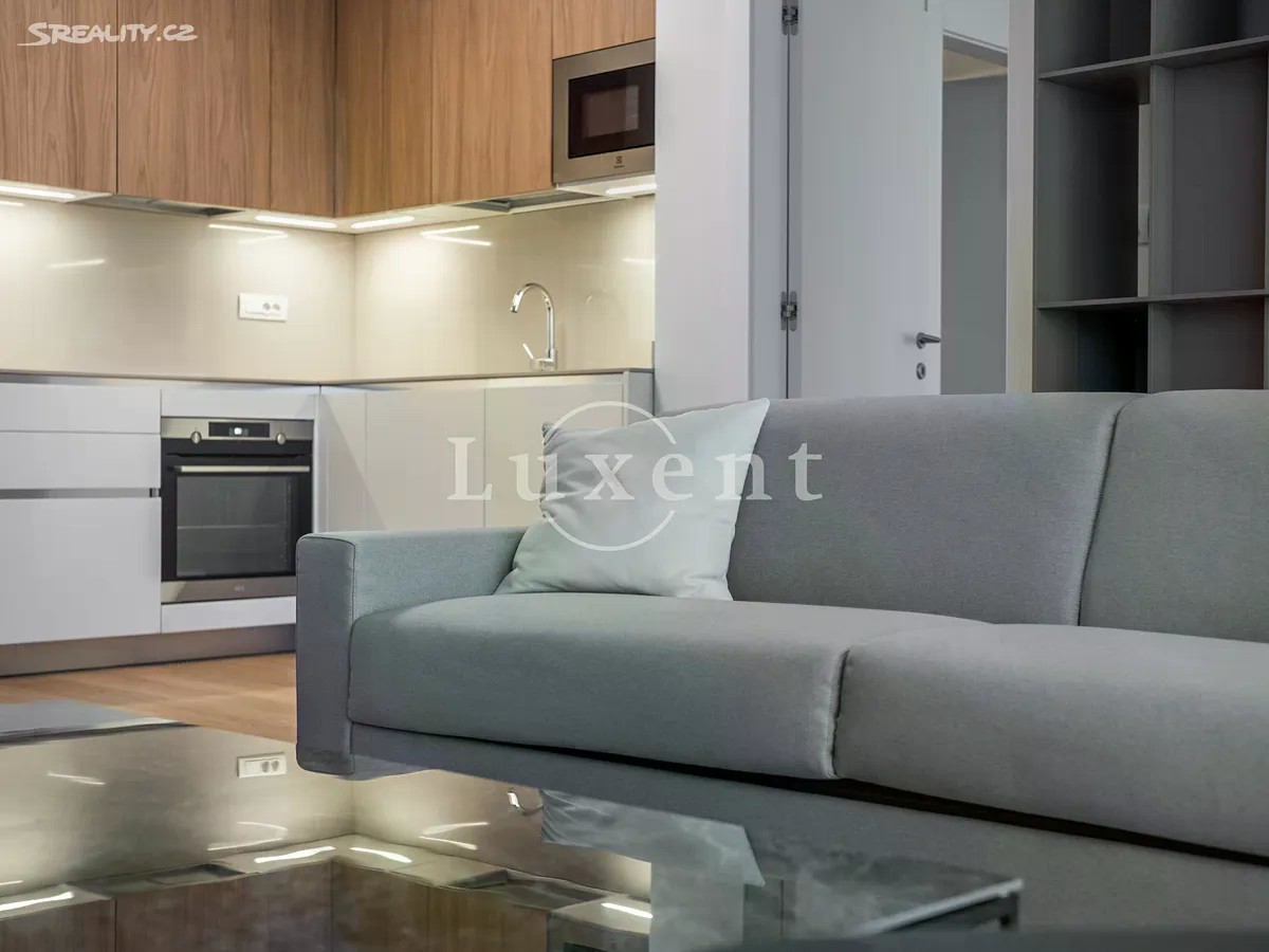 Nabízíme k pronájmu kompletně zařízený klimatizovaný byt 2+kk o užitné ploše 72 m2 s terasou v 5. podlaží novostavby rezidenčního projektu, který se nachází na Praze 5 - Smíchov. Rezidence s výtahem a množstvím nadstandardních doplňkových služeb jako je recepce, bazén, wellness za příplatek, prisma institut fitness a rozlehlá společná zahrada v uzavřeném vnitrobloku. Za příplatek lze pronajmout parkovací stání v podzemních garážích. Součástí nájmu je úklid dvakrát měsíčně včetně výměny ložního prádla a ručníků Dispozice zahrnují prostornou a světlou obývací místnost, moderní kuchyňský kout nadstandardně vybavený všemi spotřebiči, ložnici s vlastní koupelnou s vanou, sprchovým koutem, toaletou a bidetem, předsíň a oddělenou toaletu s pračkou. V projektu byly použity vysoce kvalitní materiály. Masivní dřevěné podlahy. V koupelnách velkoformátová dlažba. Podlahové topení v celém bytě. Francouzská okna se zvukovou izolací zajišťující klid a také nadměrné osvětlení. Každá z místností disponuje vlastním vstupem na terasu. V bezprostředním okolí bytu se nachází veškerá občanská vybavenost - služby, obchody, školy, školky, dětská hřiště, kavárny a kvalitní restaurace. Skvělá dopravní dostupnost s napojením na pražský městský okruh. Autobusová zastávka Holečkova přímo před domem. Zastávka tramvaje Bertramka s přímým spojením na stanici metra Anděl je vzdálená necelých 5 minut chůze od domu. Nedaleko leží Petřínské sady, park Mrázovka a také vyhledávané obchodní centrum Nový Smíchov. K dispozici ihned.