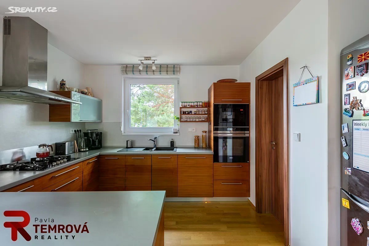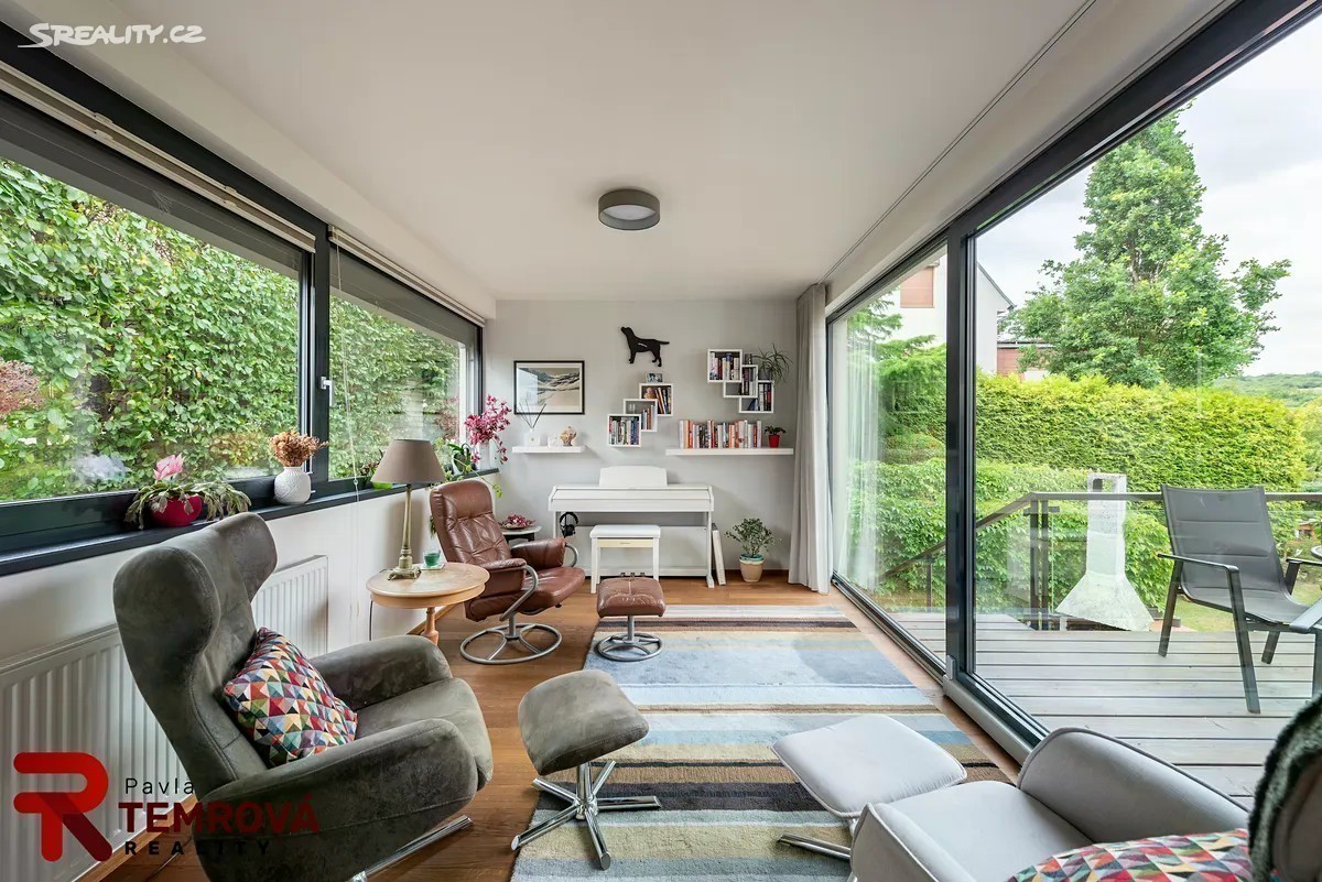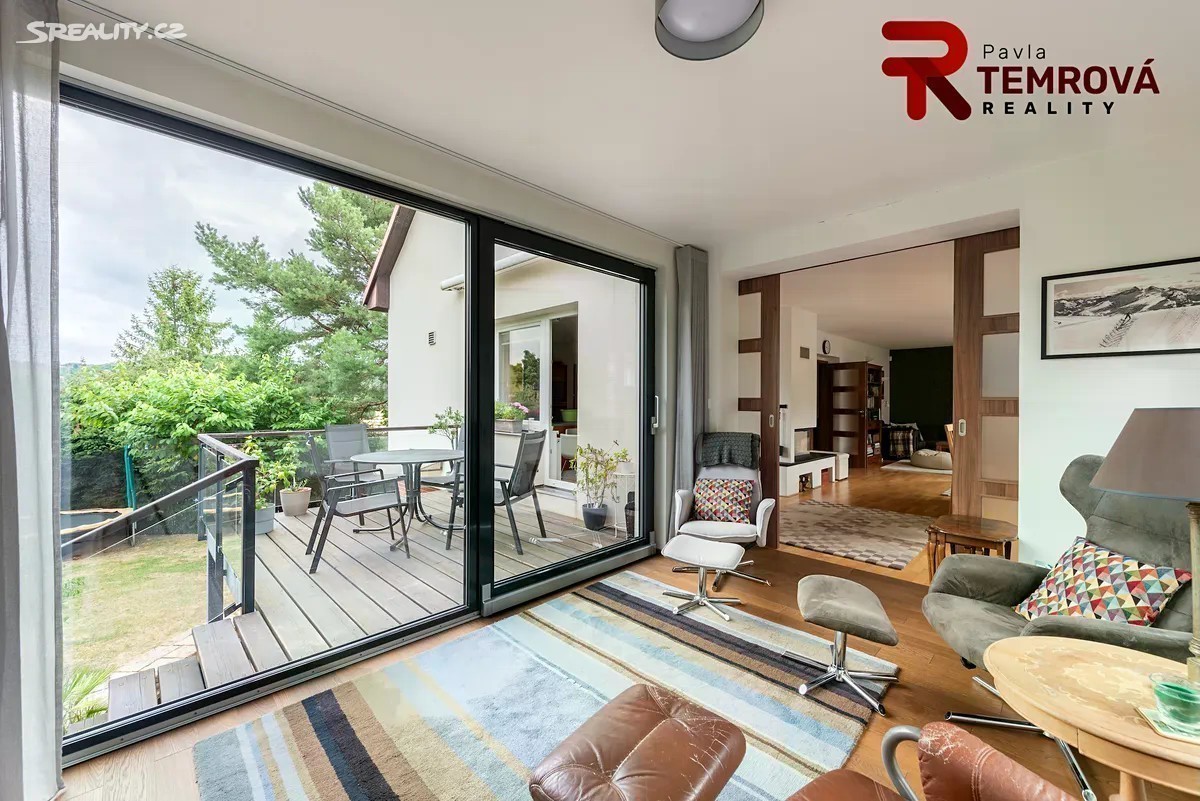 Exkluzivní nabídka tichého, energeticky úsporného rodinného domu s malebnou zahradou v Praha 5 - Velká Chuchle v ulici Na Hvězdárně. Dům o celkové užitné ploše 252 m² nabízí komfortní bydlení v bezpečné a klidné lokalitě s krásnými výhledy. Původní stavba z r. 1990 prošla v roce 2014 rozsáhlou rekonstrukcí (nová elektřina, voda, odpady), byla vybudována nová terasa (10 m2), zimní zahrada (13 m2) a sauna (5 m2). Vytápění zajišťuje plynový kotel, ohřev vody bojler. Dům je zateplen (PENB C) a je napojen na všechny inženýrské sítě - elektřina, voda, plyn, kanalizace. Skutečný charakter domu poznáte až na prohlídce - čeká vás klidné bydlení a zahrada, kterou si zamilujete. Sjednejte si prohlídku ještě dnes. (Pokud nemůžete přijít osobně, součástí prezentace je také virtuální prohlídka, ale osobní návštěva je lepší). Dispozice: Dům je situován v klidné zahradě se vzrostlými stromy, která je skrytá před pohledy zvenčí a nabízí nerušené soukromí i výhled na Chuchelský háj. Zahrada je příjemně členitá a nabízí několik útulných zákoutí k odpočinku, zahradničení nebo sportu. Najdete zde terasu chráněnou proti dešti vysouvací elektrickou markýzou, posezení s grilem, saunu a další místa určená k relaxaci. Dům má dvě nadzemní podlaží, půdu a suterén, který je částečně zapuštěn ve svahu. Přízemí (1. NP) tvoří zádveří a prostorná vstupní hala s dostatkem úložného prostoru, koupelna se sprchovým koutem a toaletou. Otevřený a světlý prostor kuchyně s jídelnou plynule navazuje na obývací část s krbem a přímým vstupem na terasu, do zimní zahrady a dále do zahrady. 2. NP (podkroví) nabízí tři obytné místnosti - ložnici rodičů s vestavěnou šatnou a dva dětské pokoje. K dispozici je zde koupelna s vanou, sprchou a toaletou. Suterén slouží jako technické zázemí domu, je zde prádelna, 3. toaleta, zázemí pro kotel, komora, pokoj pro návštěvy/herna, sklad. Původní garáž je nyní využívána k uskladnění kol a sportovního vybavení. Před domem je parkovací stání pro 2-3 auta kryté pergolou. Přístup na pozemek je chráněn elektrickou bránou. Lokalita Hvězdárna ve Velké Chuchli se řadí mezi bezpečné a vysoce ceněné rezidenční lokality v Praze 5. Nabízí klidné bydlení obklopené přírodou - ideální domov pro rodinu s dětmi. Pokud rádi běháte nebo jezdíte na kole, budete nadšeni. Děti ocení několik dětských hřišť v blízkosti i okolí. V docházkové vzdálenosti je Chuchelský háj, lesní ZOO, Park zdraví, Slavičí údolí, lesní cesty a cyklostezky. V obci je velmi pěkná ZŠ Charlotty Masarykové, školka situovaná uprostřed přírody, dále samoobsluha, restaurace, kavárna, kadeřnictví, pošta, řeznictví, knihovna vše je v docházkové vzdálenosti. Jen o trochu dále vzniklo nové obchodní centrum Velká Chuchle (Lidl, Hornbach, KFC) 1,5 km. a další obchody se připravují. Výborná dopravní dostupnost - do centra, na letiště i na hlavní výpadovky. Jen 2 minuty chůze od domu je zastávka MHD Novochuchelská s přímým spojením na metro Smíchovské nádraží. Moderní vlaková stanice Velká Chuchle pak nabízí časté a rychlé spojení do centra Prahy - pro místní plně nahrazuje metro. (V. Chuchle - Praha hl. nádraží - 15 min.) S hypotékou Vám rádi pomůžeme. Pokud hledáte bydlení v krásné a klidné lokalitě, přesto na dosah ruky od centra Prahy, domluvte si prohlídku tohoto krásného a útulného domu.