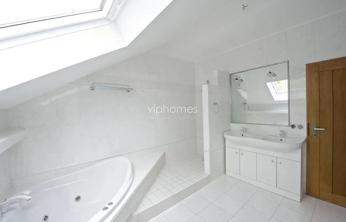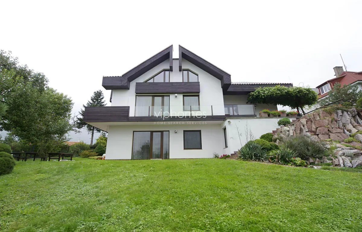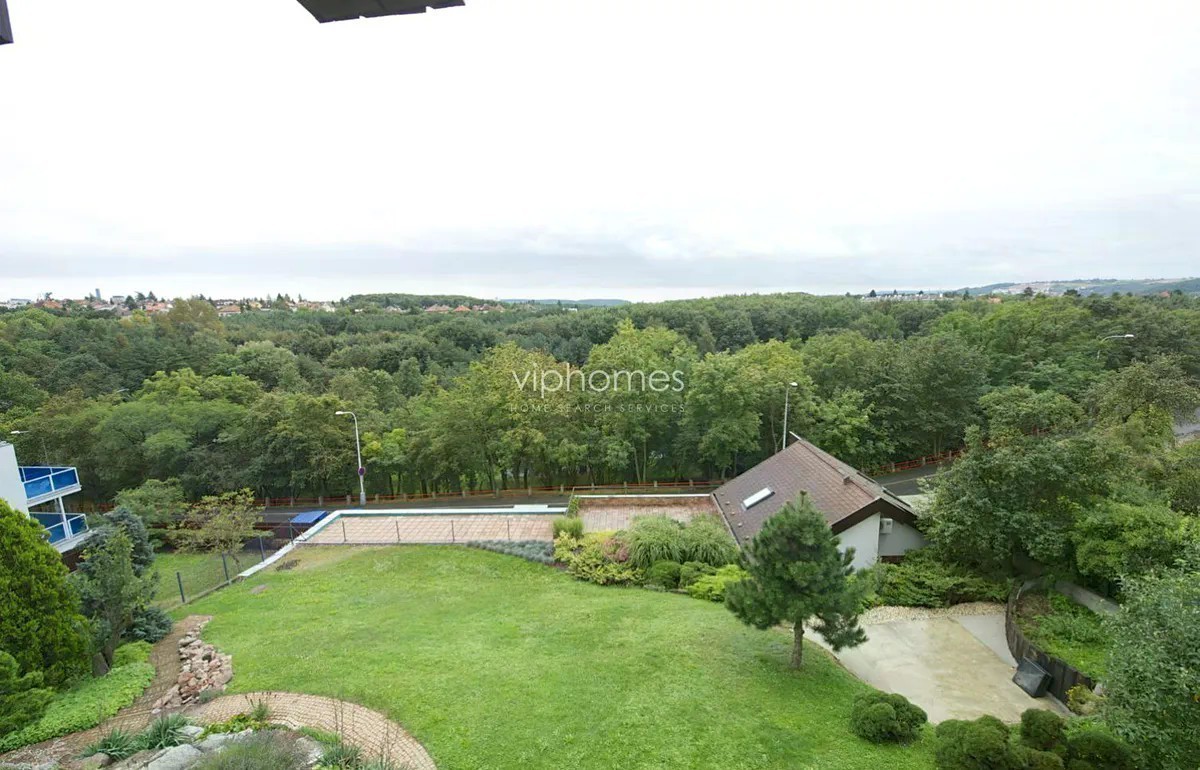 Prostorný mezonetový byt 6+1 s terasou ( 10 m2) a výhledy do zeleně, situovaný v 1. patře vily s okrasnou zahradou (1000 m2). Vila je situována v poklidné ulici tradiční rezidenční čtvrtě v Praze 4 - Hodkovičky. Příjemné bydlení v zeleni s výbornou dostupností do centra a k mezinárodním školám ( PBS) a školkám na Praze 4. Široká občanská vybavenost s rozmanitými možnostmi kulturního a sportovního vyžití. Pro kondici i relaxaci je k dispozici plavecký stadion v sousedním Podolí nebo areál Žluté lázně. Za nákupy se můžete vydat do centra Novodvorská Plaza s desítky exkluzívních butiků, kaváren, restaurací, kin. Centrum Prahy je dostupné v řádech minut automobilem i MHD. V hlavním obývacím prostoru naleznete vstupní halu, obývací pokoj (48 m2), plně vybavenou kuchyň, tři ložnice, pracovnu, dvě koupelny. V patře se nachází galerie vhodná pro společenské hry, a další samostatná ložnice. Klimatizace, parkety a dlažba, vestavěné skříně, úložné prostory, pračka/sušička, masážní vana, satelitní připojení, bezpečnostní dveře, alarm. Grilovací terasa na zahradě k dispozici. Garáž a bezpečné parkování na pozemku. Nájem: 55 000 CZK / měsíc. Zálohové platby na energie a služby 12.000 Kč/měsíc. K dispozici od 1.8. 2025