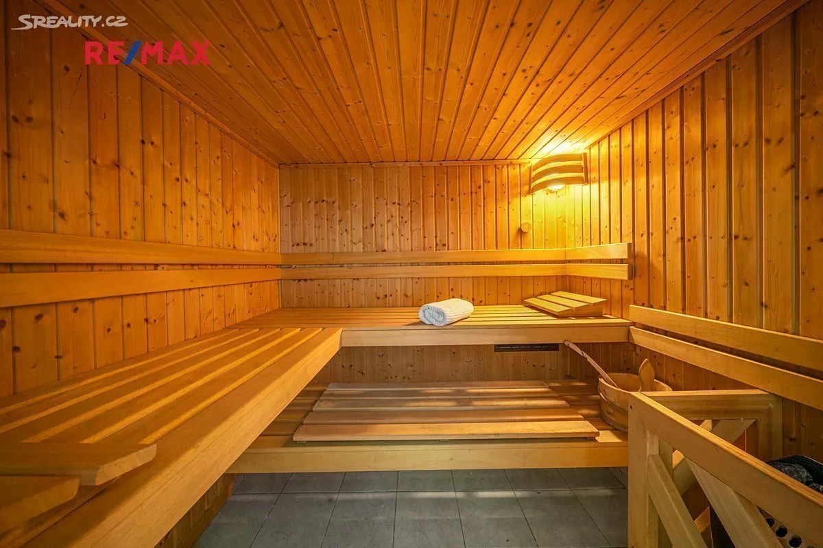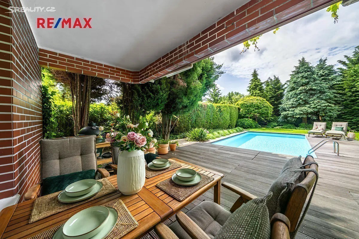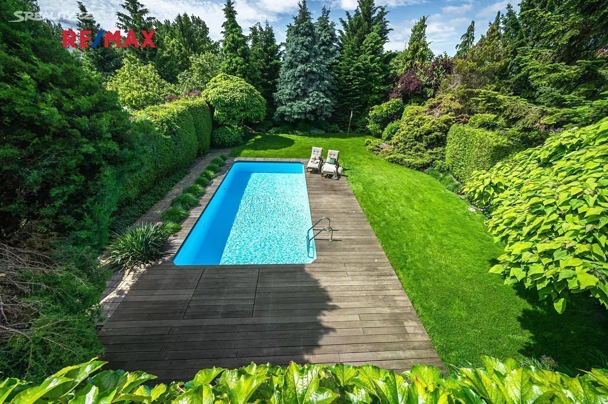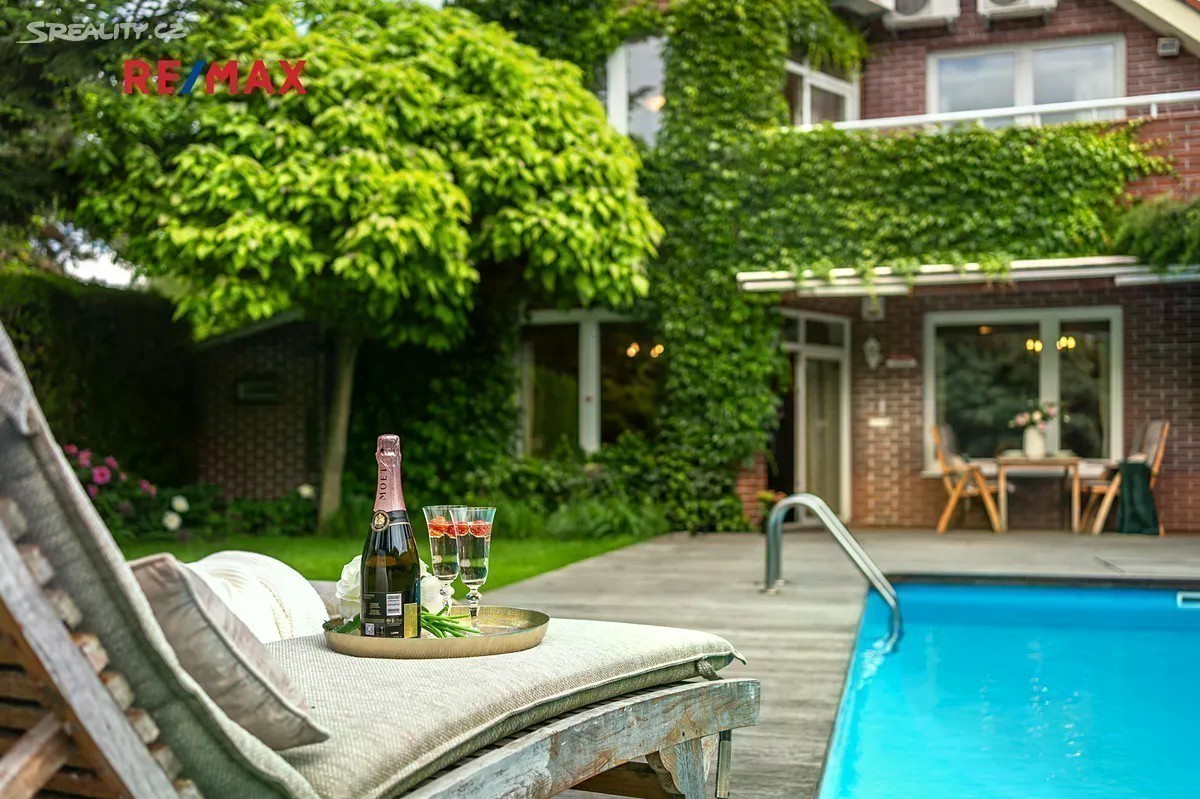 Výjimečná nabídka exkluzivní víly se zahradou a saunou poskytující dokonalé soukromí a s bazénem, to vše v samém srdci pražských Klánovic. Cihlový dům o dispozici 4+1 nabízí v přízemí prostorný obývací pokoj s velkolepým schodištěm, krbem a barem. Přímo z obývacího pokoje vedou francouzská okna na terasu útulné zahrady s bazénem, která je zcela obklopena vzrostlou zelení, jež zajišťuje dokonalé soukromí. V přízemí dále najdete kuchyň, samostatné WC a schodiště vedoucí do suterénu, kde je kromě technické místnosti umístěna především vysoce komfortní sauna. Po dřevěném, velkorysém schodišti z obývacího pokoje vystoupáme na otevřenou galerii do obytného patra. Zde najdeme tři ložnice (z nichž jedna je nyní využívána jako pracovna), dvě koupelny a samostatnou šatnu. Z hlavní ložnice můžete vstoupit na terasu, která nabízí malebný výhled na bazén a zahradu. Ani s parkováním zde nebudete mít žádný problém. Z hlavní garáže projdete dveřmi přímo do vily, ve vedlejší garáži můžete parkovat další vozy. Klánovice jsou po právu už od První republiky jednou z nejžádanějších pražských lokalit. Kombinují skvělou dostupnost do centra města (cca. 20 min vlakem na Hlavní i Masarykovo nádraží) s životem v klidu a přírodě. Klánovický les protkaný cyklostezkami je v těsné blízkosti domu a poskytuje dostatek prostoru pro sportovní aktivity, ale i odpočinek.