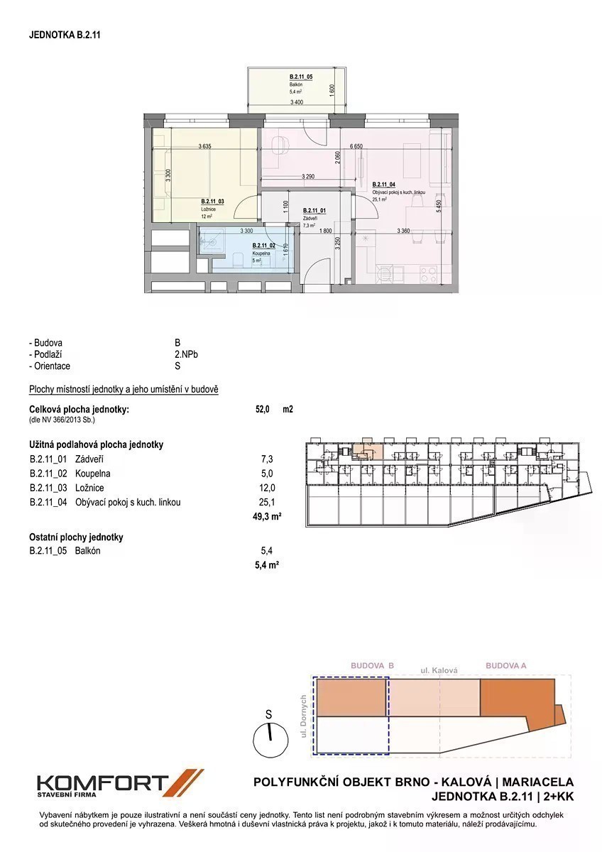 Rezidence Mariacela - Vaše komfortní bydlení poblíž nového Jižního centra Brna, v oblasti s dynamickým rozvojem, v bezprostřední blízkosti nového hlavního nádraží a parku Mariacela. Mariacela roste na nároží ulic Dornych a Kalová, Brno. Jedná se o moderní polyfunkční projekt, který spojuje inovativní technologie s pohodlím domova. Díky chytré domácnosti, rekuperaci vzduchu a chlazeným stropům nabízí zdravé a komfortní bydlení po celý rok. Mariacela znamená nejen nižší náklady, ale i dlouhodobě udržitelné bydlení s energetickým štítkem A. Celkem 86 exkluzivních jednotek různých dispozic s balkonem, lodžií či terasou, umístěných v 1.až 9.nadzemním podlaží. Horní patra umožňují krásný výhled na brněnské dominanty. Naopak v přízemí domu je navženo 7 komerčních prostor určených pro obchody či služby. V podzemních patrech, kam vás pohodlně doveze výtah, se pak nachází: - GARÁŽOVÁ STÁNÍ v ceně od 800.000,-Kč, pohodlný vjezd/výjezd zajišťují automatická sekční garážová vrata. V hromadné garáži - příprava na wallbox (el.nabíjení aut) - SKLEPY různých velikostí přístupné i přímo z garážových stání. Výběr sklepu je na kupujícím, cena sklepu není součástí ceny jednotky. Výstavba Rezidence Mariacela zahájena v I.Q/2025, termín dokončení ve IV.Q/2027. Rádi Vám poskytneme podrobnější informace nebo se podívejte na webové stránky projektu rezidencemariacela.