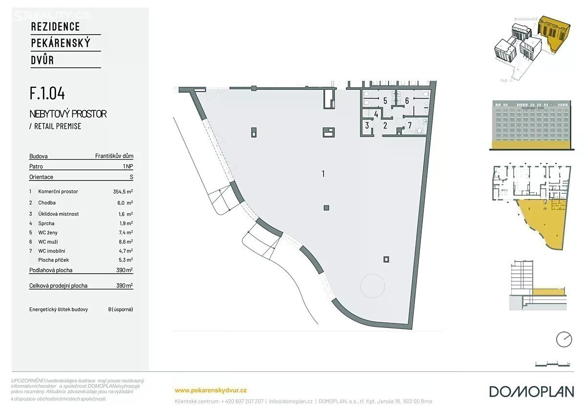 Kancelář / komerční prostor IHNED k nastěhování. Nabízíme k prodeji jedinečný a moderně navržený prostor pro kanceláře nebo komerční prostory o celkové ploše 390 m2. Nabízíme možnost dokoupit prostorné klasické parkovací stání umístěné ve dvoupodlažních podzemních garážích. Současně nabízíme dokoupení sklepní kóje /za povinný příplatek/. Komerční prostor lze využít na kancelář, reprezentativní showroom pro jednotlivce či malou firmu. Výhodou je možnost odpočtu DPH ve výši 21%. Komerční prostor / kancelář je možné i pronajmout. Prostor je součástí projektu Pekárenský dvůr, kde jako první v Česku přinášíme koncept klubového bydlení se širokou nabídkou služeb dostupných exkluzivně pro rezidenty (například wellness, fitness, recepci se službou concierge, grill pointy, workout zónu, dobíjecí stanice pro elektromobily, kola a další). Toto vše můžete využít i jako majitelé tohoto jedinečného komerčního prostoru / kanceláře. Pekárenský dvůr představuje rozsáhlý bytový komplex s vlastním klidným vnitroblokem, který nabízí stylové komfortní bydlení v souladu s aktuálními světovými trendy. Architektura domů klade důraz na maximální prosvětlení interiérů, pracuje s vysoce kvalitními a nadčasovými materiály a zároveň odkazuje k industriální minulosti lokality. Skvělá poloha, v dynamicky se rozvíjející čtvrti brněnských Zábrdovic, podtrhuje docházková vzdálenost historického centra města, výborná dopravní obslužnost, kompletní občanská vybavenost i blízkost oblíbených brněnských parků. Nyní Vám stačí pouze 15% z kupní ceny, s financováním koupě nemovitosti Vám rádi pomůžeme. Pro více informací nás neváhejte kontaktovat!