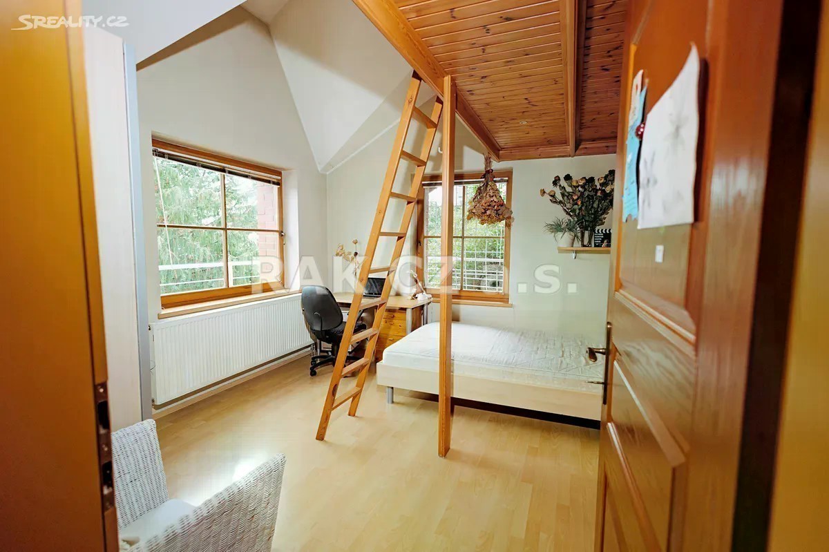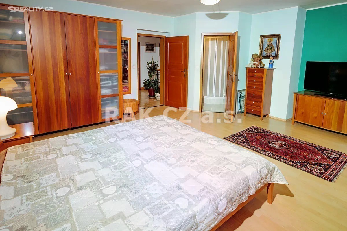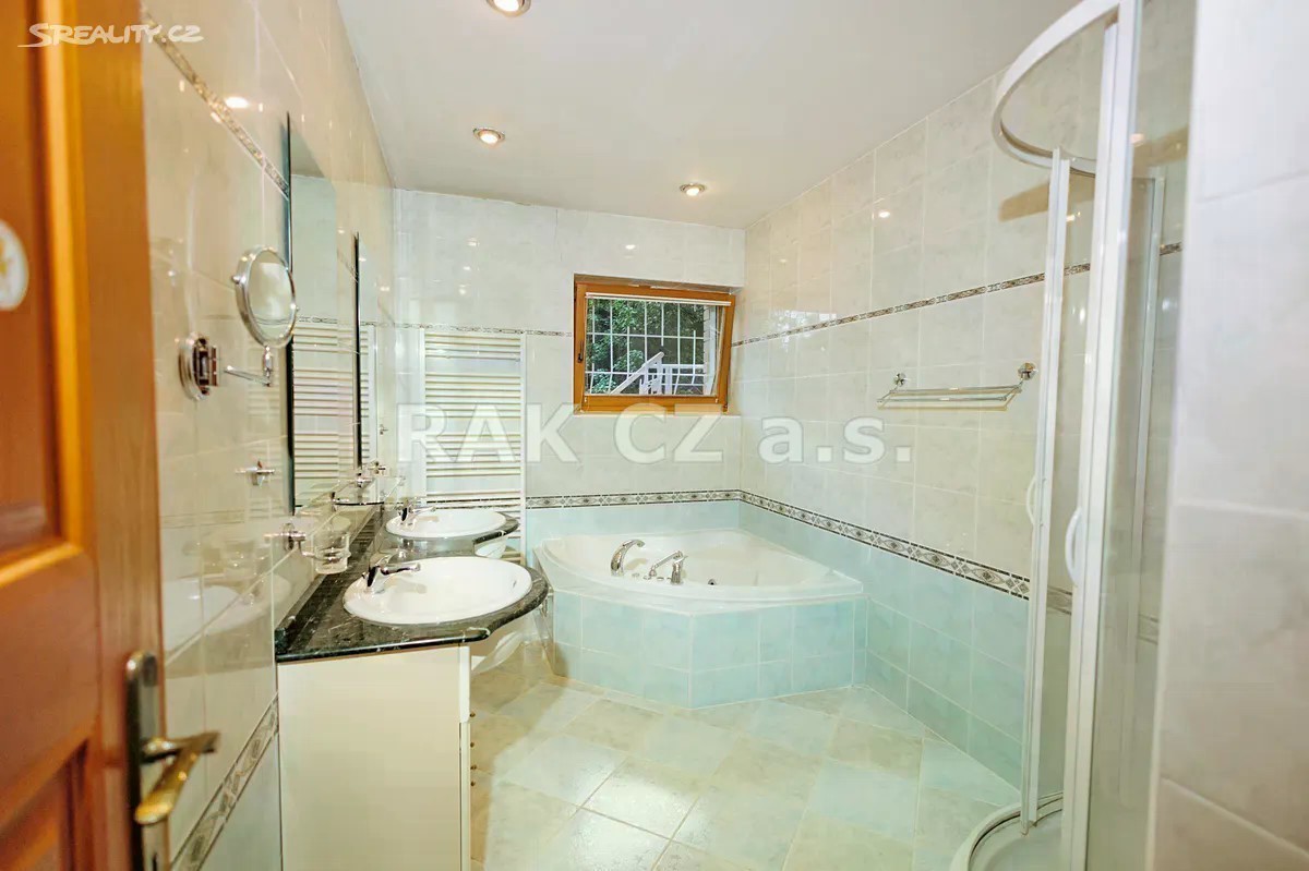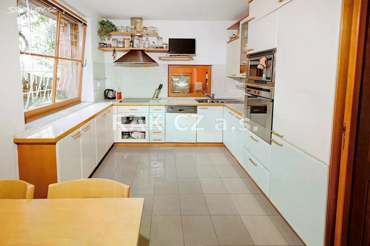 Velmi prostorný dům 6+1 s vnitřním bazénem a dvougaráží; 4 koupelny, 5 toalet; 4 terasy a velký balkon; soukromí a klid na konci slepé ulice; vyhledávaná rezidenční lokalita; stabilizovaná okolní zástavba; vzrostlá zahrada. Předmětem prodeje je samostatný zděný dům, postavený v roce 1998 v horní části, k jihu výrazněji svažitého, zcela oploceného pozemku, pravidelného obdélníkového tvaru, o výměře 700 m2, na konci slepé ulice Ke Skalkám, Praha 10 - Záběhlice. Dům má prakticky čtvercový půdorys, rozšířený o bazénovou část, dvě nadzemní podlaží, kdy každé je výškově rozděleno, 4-mi až 5-ti schody, na plnohodnotné půl podlaží, pro oddělení různých funkčních zón domu. Celková plocha činí cca 250 m2, zastavěná plocha je 224 m2, zahrada 476 m2. V I. NP je vstupní místnost; centrální hala se schodištěm; obývací pokoj s krbem a jídelnou, se vstupem na jižní terasu a k bazénu; samostatná, plně vybavená kuchyně; toaleta; prádelna se sprchovým koutem a další toaletou a technická místnost. Ve II. NP je velká centrální hala se schodištěm; tři velké ložnice (jedna má vlastní koupelnu s toaletou); pracovna se vstupem na východní terasu; velká koupelna s rohovou vanou, dvěma umyvadly a sprchovým koutem; samostatná toaleta, velká šatna; a pokoj pro hosty s vlastní koupelnou a toaletou. Z haly a dvou ložnic je vstup na balkon, či terasu, včetně velké střešní terasy s panoramatickým výhledem na Prahu. Dům je napojen na elektřinu, veřejný vodovod, veřejnou kanalizaci a plyn, vybaven zabezpečovacím systémem, obložen lícovými cihlami, zajišťujícími výborné tepelně izolační vlastnosti domu. Vytápění (v kuchyni, hale a technické místnosti v přízemí podlahové, jinak radiátory) a ohřev vody zajišťuje plynový kotel Junkers se zásobníkem. Okna dřevěná s dvojskly. Součástí pozemku je velká garáž (částečně zapuštěná do terénu) pro dva vozy, se skladovací místností v zadní části, s vjezdovými vraty přímo z ulice. Příjezd je zajištěn prostřednictvím obecní asfaltové komunikace, parkování dalších 2-3 vozů je možné na ulici, před garáží. Místo nabízí výbornou dopravní dostupnost autem i veřejnou dopravou (blízkost napojení na Jižní spojku i Pražský okruh; autobus cca 200 m od domu). Perfektní je rovněž občanská vybavenost v blízkém okolí a mnohé možnosti sportovního vyžití, např. areál Hamr. PENB není zpracován (uvádíme proto třída G) předpoklad je třída C. Více informací u makléře. Dům i jeho okolí vám rádi osobně ukážeme.