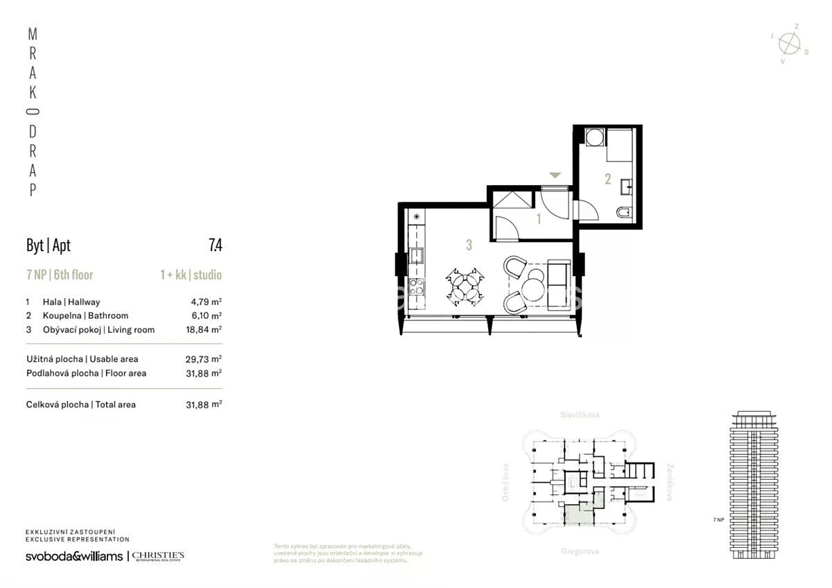 Jednopokojový světlý byt je součástí unikátního rezidenčního projektu Mrakodrap. Rezidence vzniká v centru Moravské Ostravy konverzí obytné věže z roku 1968, která se svými 24 podlažími zůstává výškovou dominantou města i dnes. Renomované architektonické studio AI • DESIGN architektů Evy Jiřičné a Petra Vágnera je podepsáno pod novou podobou budovy představující udržitelnou tvář moravskoslezské metropole. Dispozici jednotky v 7.NP tvoří rohový obytný prostor s přípravou na kuchyni, koupelna a předsíň. Kvalitní standard zahrnuje velkoformátová hliníková okna s trojskly, vinylové podlahy, velkoformátovou dlažbu, walk-in sprchový kout nebo sanitu osvědčených značek. Byt má rekuperaci a podlahové vytápění (v létě dochlazování), zdroj tepla je centrální. K bytu přísluší sklepní kóje a garážové stání za příplatek v nově postaveném sousedním objektu. Poloha v centru Moravské Ostravy umožňuje mít na dosah ruky vše potřebné: obchody včetně nákupních center, restaurace, kavárny, lékařské služby, galerie a divadla. Jen pár kroků vede do Komenského sadů, během chvíle se lze napojit na cyklostezku podél Ostravice. Vynikající dopravní spojení zajišťují trolejbusy, autobusy a tramvaje z blízkých zastávek, v pohodlném dosahu je také železniční stanice Ostrava hlavní nádraží. Podlahová plocha 31,88 m2 Pro více informací o jednotkách, cenách a dostupnosti kontaktujte naši kancelář. Vizualizace na tomto webu jsou uměleckým ztvárněním projektu a nebyly vytvořeny ve spolupráci s AI • DESIGN, autorem architektonického návrhu. Tyto vizualizace jsou tedy předběžného charakteru a neodpovídají finální podobě projektu.