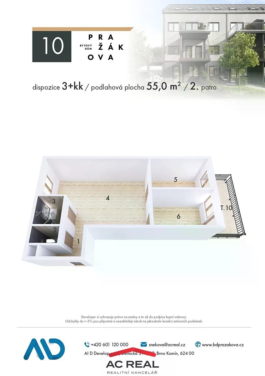 Nabízíme prostorný a světlý byt 3+kk o 55m2 v 2NP v bytovém domě na ulici Pražákova, který je skvělou volbou pro mladou rodinu. Byt má promyšlenou dispozici a nabízí dostatek soukromí i prostoru pro společné chvíle. Po vstupu do praktického zádveří najdete vlevo samostatnou toaletu. Hlavní obytný prostor s kuchyní (24 m²) je ideální pro setkávání s rodinou a přáteli. Z obývací části je vstup do nadstandardní koupelny s walk-in sprchovým koutem a dále do dvou samostatných ložnic. Větší ložnice má přímý vstup na krásnou 16m² terasu orientovanou jižně do klidné zahrady - ideální místo pro relaxaci nebo dětské hry. Právě teď máte jedinečnou možnost pořídit byt v bytovém domě Pražákova za zahajovací ceny. Vybavení bytu: - elektronicky ovládané vchodové dveře pro maximální pohodlí a bezpečnost - elektrické podlahové topení zajistí rovnoměrné rozložení tepla v každé místnosti a přispívá k úspornějšímu vytápění - rekuperace pro neustálý přísun čerstvého vzduchu při zachování teplotního komfortu. Snižuje vlhkost, znamená také nižší náklady na vytápění díky zpětnému získávání tepla - předokenní žaluzie = větší soukromí, stín a optimální teplotu v interiéru v létě i v zimě. - podlahová krytina SPC (velmi odolný materiál, který kombinuje keramickou vrstvu s linoleem, bezspárová technologie pokládky - nepoškozuje nábytek, lepší tepelná vodivost) - designové obklady a zařizovací předměty prémiových značek Kaldewei, Villeroy & Boch. Celý dům je pečlivě připraven a promyšlen do nejmenších detailů tak, aby Vám nabídl přesně takové bydlení, o jakém jste snili. Energeticky úsporný bytový dům Pražákova je umístěn v uzavřeném areálu a disponuje pokročilými inteligentními technologiemi. K dispozici jsou parkovací stání, garážová stání i garáže a sklepní kóje. Velkou výhodou je blízkost univerzitního Campusu v Bohunicích, Spielberk office centra, a dobrá dostupnost na D1, D2 i do centra Brna. Bytový dům bude osazen inteligentní technologií vstupu. Zapomeňte na klíče, otevřete si pomocí čipu, aplikace nebo rozpoznáním obličeje. Dům nabízí zvýšenou bezpečnost díky omezení neautorizovaného vstupu. Pokud čip někde ztratíte, jednoduše ho přes aplikaci zablokujete. Stavba zahájena, dokončení projektu v červenci 2026. Pokud Vám tento byt nevyhovuje, ozvěte se, v projektu jsou k dispozici větší i menší byty. Rádi se s Vámi sejdeme u kávy a osobně Vám projekt v detailu odprezentujeme.