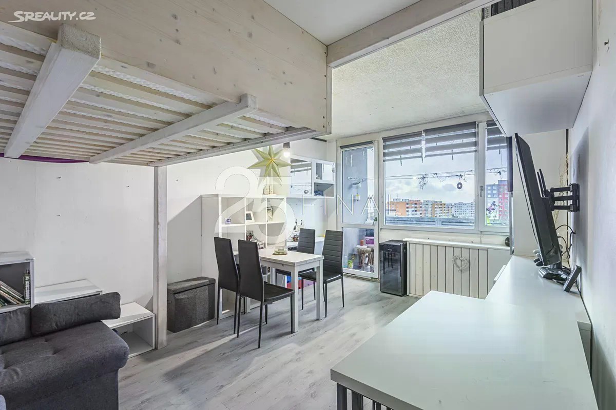 Nabízíme ke koupi moderní byt 2+1 o výměře 60,66 m2 s lodžií (3,62m²) v žádané lokalitě Na Radouči, okres Mladá Boleslav. Byt se nachází v 7.patře, v klidné části obce. S velmi dobrým stavem objektu s výtahem. Dispozice bytu je následující: předsíň, šatna, prostorný obývací pokoj se vstupem na lodžii. V obývacím pokoji je manželská postel do patra, která byla vyhotovena na zakázku truhlářem, s ohledem na komfort. Udržovaný kuchyňský kout se spotřebiči, dětský pokoj s kvalitním nábytkem, taktéž zhotoven na míru truhlářem. V bytě je využit každý kousek prostoru, což zajišťuje maximální a praktické úložné řešení. Po celém bytě je položena plovoucí podlaha, v koupelně a wc keramická dlažba. K bytu náleží sklep o výměře 1,84m². Lokalita Radouč je jednou z nejžádanějších v Mladé Boleslavi. V blízkosti se nachází příroda, park, cyklostezky. Je zde kompletní občanská vybavenost včetně školy, školky, nákupního centra, restaurací, pošty, obecního úřadu, lékaře, kulturního zařízení a koupaliště. Dále je zajištěna výborná dopravní dostupnost prostřednictvím MHD, příměstské dopravy, silnic prvních a druhých tříd, a vlakového spojení. Parkování je veřejné hned před domem. Byt je vhodný také jako investiční příležitost. Z důvodu nepředložení energetické náročnosti, před vložením do inzerce, je proto nemovitost zařazena do třídy kategorie G. Naši specialisté Vám rádi pomohou se zajištěním financování. Pro bližší informace nás neváhejte kontaktovat. Budu se těšit na osobní prohlídce!