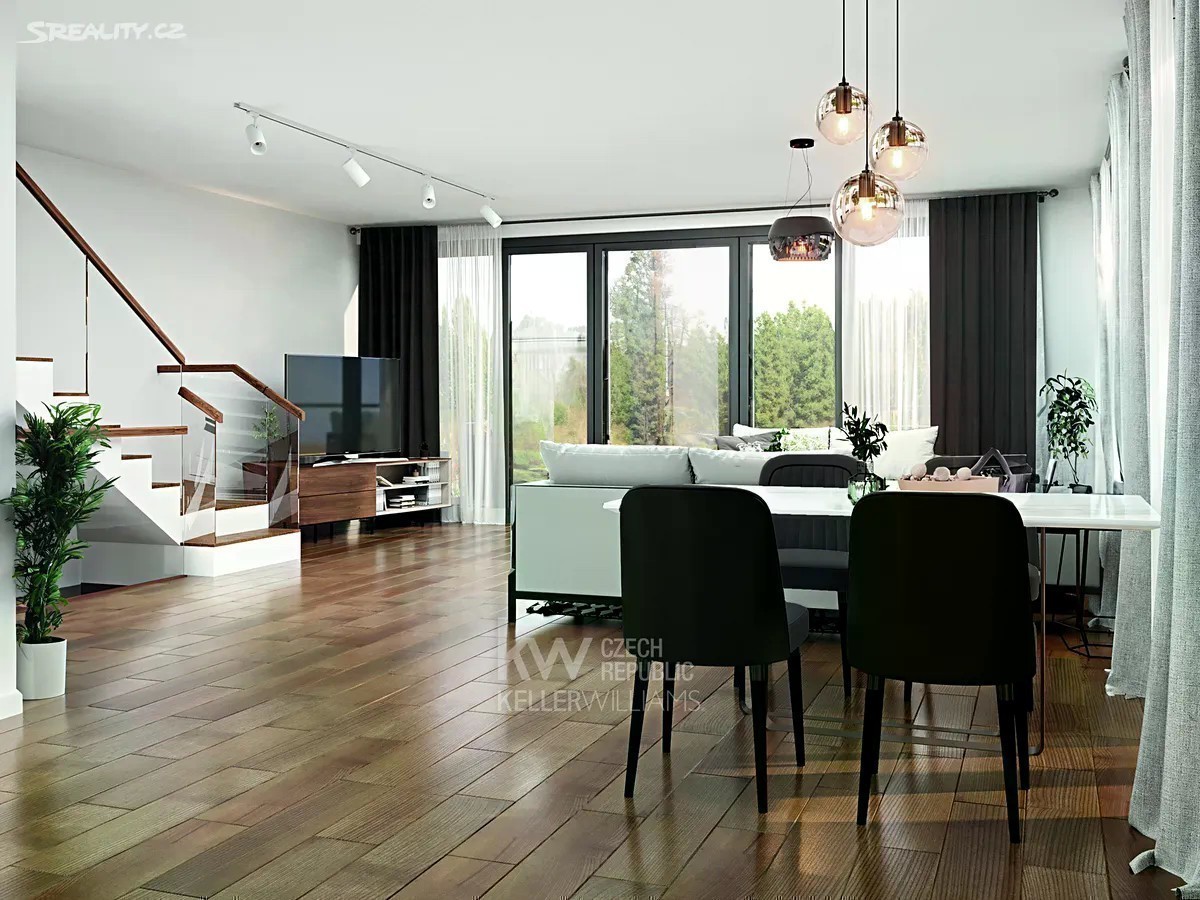 Rádi bychom Vám představili nemovitost na samém okraji Prahy 6 ve Starém Suchdole, kde se nachází zajímavě řešený trojdům s třípatrovými mezonetovými byty pro pohodlné rodinné bydlení na konci ulice Bažantní přímo u chráněného území Únětického potoka. Předmětem prodeje je třípodlažní mezonetový byt o dispozici 4 + kk o podlahové ploše 161 m² ve vzhledu luxusního řadového domu s celkovou plochou 200 m² včetně garáže a teras. Nemovitost je vhodná pro rodiny s dětmi, sportovce a milovníky přírody. Z obývacího pokoje můžete přes terasu dokonce sejít svou soukromou zahradu o velikosti 268 m². Nemovitost je zajímavá nejen svými četnými terasami ze všech hlavních pokojů, chytrým řešením interiérů s velkými okny, místem vhodným též pro rodiny s dětmi. V 1.PP nalezneme garáž, kolárnu, sklad, sklep, koupelnu, či saunu, záleží na klientovi, jak samostatné spodní prostory využije. Vzhledem k samostatnému spodnímu vchodu, lze prostory využít i jako samostatný byt opět s výstupem na zahradu. Na pozemku je k dispozici další parkovací místo, lze parkovat i na vymezeném prostoru před domem. Schodištěm se dostaneme do 1.NP do nádherného prostoru obývacího pokoje, kuchyně a místa pro jídelnu. Na 1.NP se nachází též druhý vstup do domu, u něhož je předsíň s WC a šatna. 2.NP vstupujeme přes chodbu do dvou pokojů, do šatny, dále pak do pracovny a do koupelny s WC a opět na dvě krásné terasy. Ložnice rodičů má svou vlastní koupelnu. Nemovitost může být vytápěna tepelným čerpadlem v kombinaci s plynovým kotlem. V celém domě bude nainstalované podlahové vytápění. Rekuperace v domě je samozřejmostí. Okna mají přípravu na předokenní žaluzie. Za inzerovanou cenu budou vnitřní prostory dokončeny bez obkladů, povrchových krytin, dveří a zařizovacích předmětů s možností vlastního výběru. V případě zájmu můžeme zprostředkovat dokončení bytu developerem projektu. V okolí je kompletní občanská vybavenost a MHD. Přijďte se podívat do této zajímavé části Suchdola s nádhernými vycházkovými a cyklistickými trasami do přilehlých lokalit, představit si život téměř na vesnici a přesto v dojezdové vzdálenosti do 20ti minut od metra A. Cena projektu ve variantě white walls: 18 200 000 Kč Dokončení na klíč dle náročnosti klienta za cenu plus cca 1 800 000 Kč Celková plocha v domě 200 m² včetně garáže a teras Užitná plocha mezonetu: 130 m² Podlahová plocha 161 m² Velikost pozemku: 274 m² Soukromá zahrada k výhradnímu užívání: 204 m² Přiložená vizualizace pater zobrazuje krajový mezonet, půdorysy jsou shodné, za výše uvedenou cenu je nabízen prostřední byt. Uvedené výměry jsou orientační. V případě více zájemců bude nemovitost prodána nejlepší nabídce a majitel si vyhrazuje právo vybrat kupujícího na základě jim zvolených kritérií. Veškeré zveřejněné údaje obsažené v tomto inzerátu mají pouze informativní charakter a nejsou nabídkou ve smyslu § 1731 nebo § 1732 občanského zákoníku, ani se nejedná o veřejný příslib dle § 1733 občanského zákoníku.
