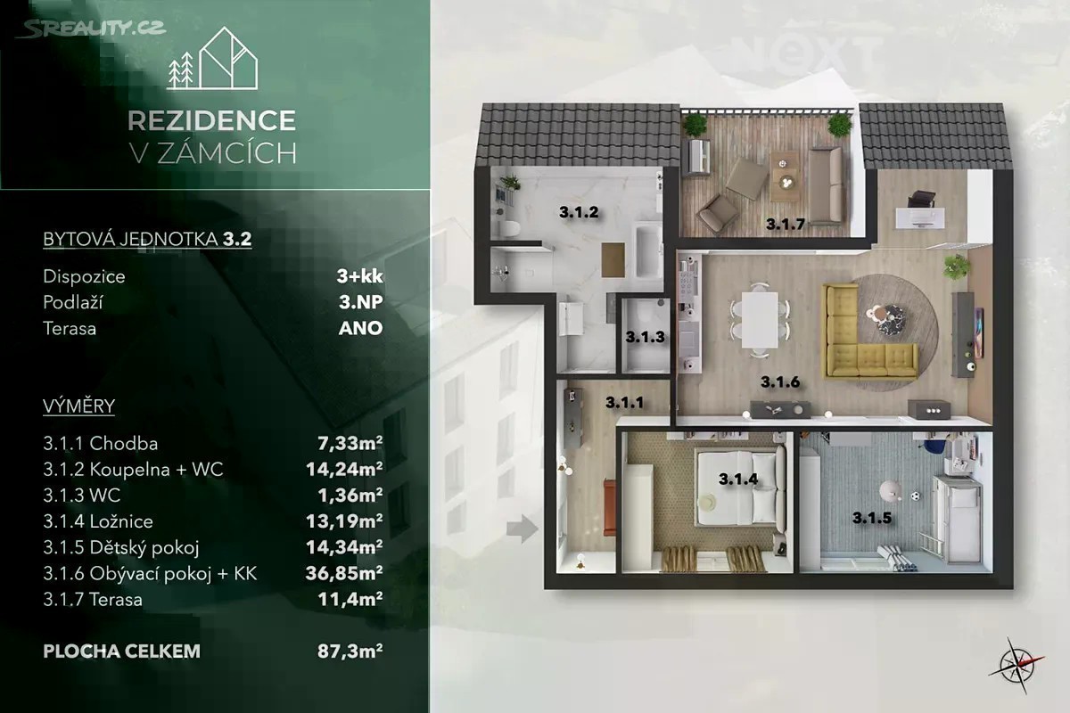 Prodej bytu 3+kk 87 m² V Zámcích, Praha - Bohnice