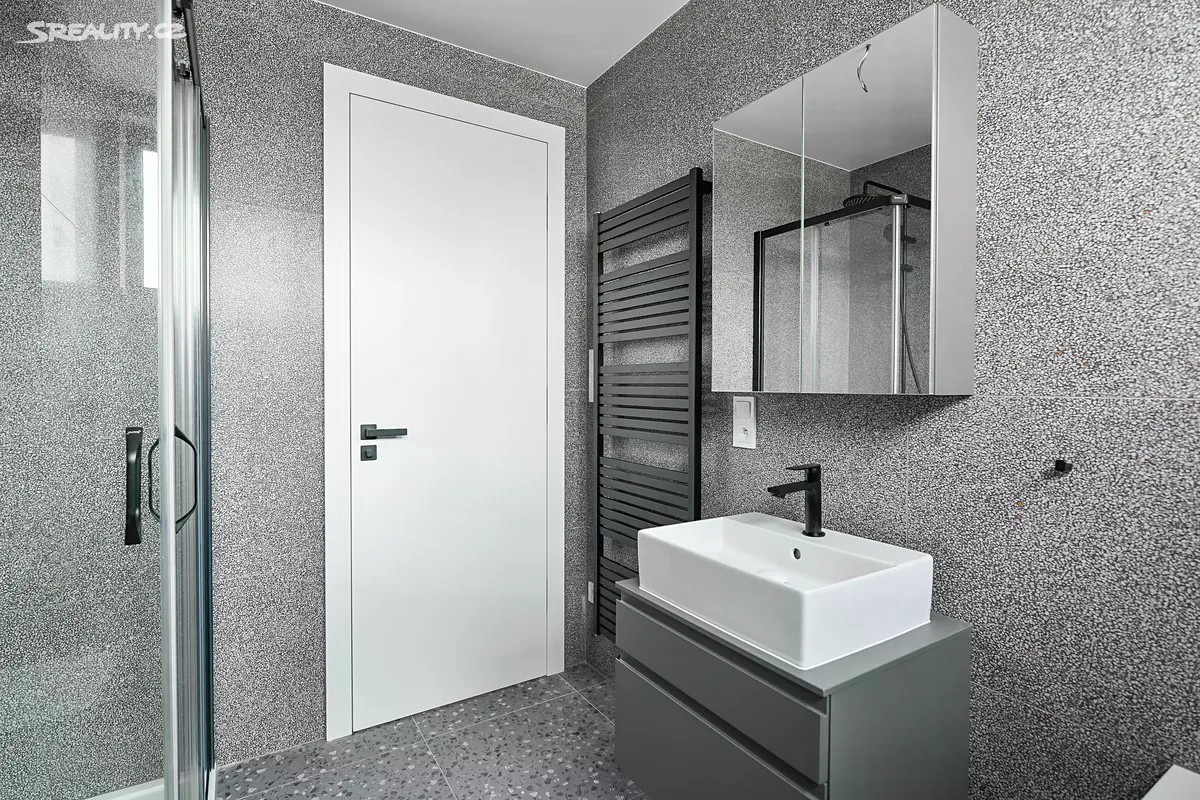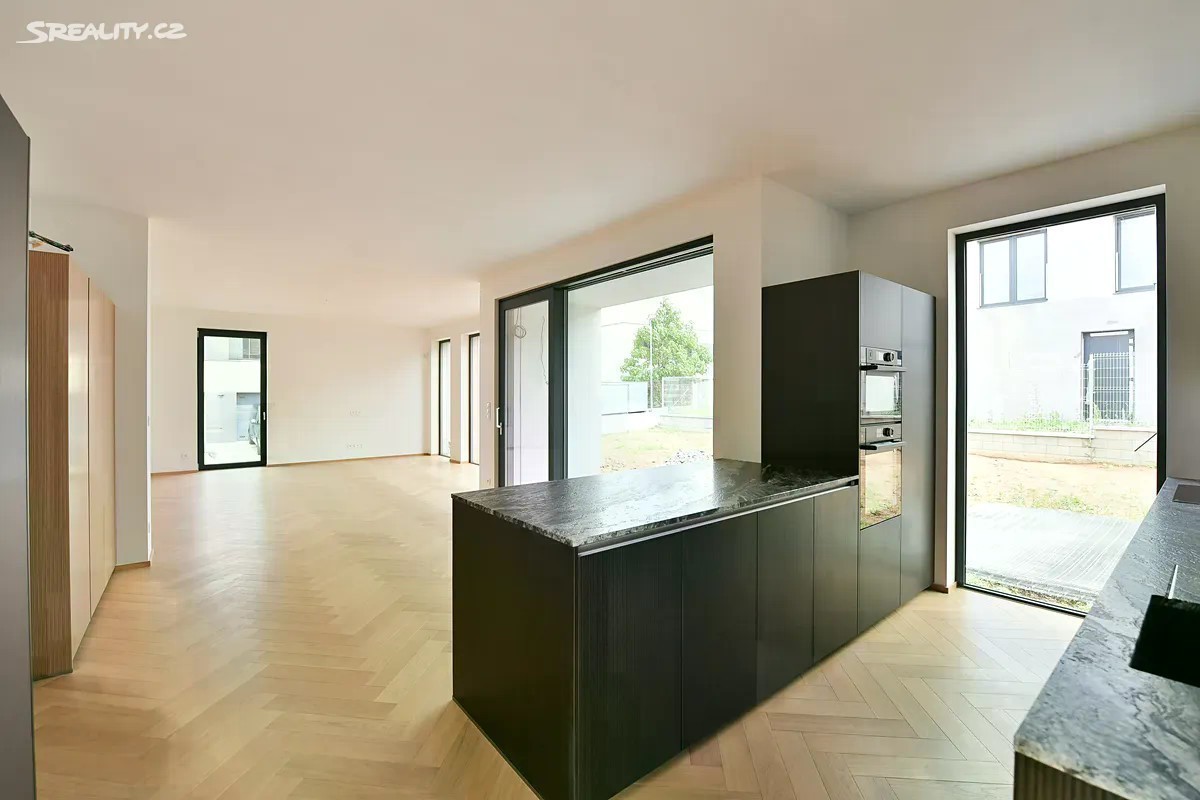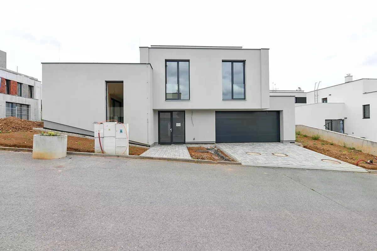 ČASOVĚ LIMITOVANÁ VÝRAZNĚ SNÍŽENÁ PRODEJNÍ CENA DOMU! Nadčasová novostavba vily ve Velké Chuchli s vysokým standardem, zahradou a garáží pro 2 vozy Nabízíme exkluzivní novostavbu rodinné vily situovanou v prestižní a klidné části Prahy - Velké Chuchli. Dům se nachází na pozemku o velikosti 773 m², z toho užitná plocha činí 292,4 m², zastavěná plocha 231,6 m² a zahrada má rozlohu 541,4 m². Vila je navržena s důrazem na moderní architekturu, komfortní bydlení a vysokou míru soukromí v bezprostřední blízkosti přírody. Dispozice: Vstupní úroveň tvoří otevřený prostor budoucího obývacího pokoje, jídelny a kuchyně s přímým vstupem na dvě terasy. Dále se zde nachází ložnice, koupelna se sprchou a toaletou, schodišťová hala s prostorem pro šatnu, zádveří, technická a úložná místnost a prostorná garáž pro 2 auta s přímým vstupem do domu. V patře je druhý obývací prostor s kuchyňským koutem, tři ložnice a dvě koupelny. Nejvyšší podlaží nabízí samostatnou pracovnu nebo dětský pokoj. Technické a designové standardy: Dům je nízkoenergetický a vybavený kvalitními materiály - bezrámová hliníková okna s trojskly, dřevěné podlahy s podlahovým vytápěním, tepelným čerpadlem VOLF s možností chlazení v letních měsících. Připraveno je napojení na klimatizaci a zabezpečovací systém. Stropy mají příjemnou výšku 2,9 m v obývacím pokoji a 2,7 m v ostatních místnostech. Samozřejmostí jsou hotové koupelny, bezfalcové interiérové dveře výšky 2 m a plně vybavená kuchyně. Lokalita: Nemovitost je zasazena do zcela nové obytné čtvrti obklopené přírodním parkem Radotínsko-Chuchelského háje, ideální pro milovníky klidu a zeleně. Přesto je zde výborná dostupnost - mateřská a základní škola do 5 minut jízdy, autobusové spojení k vlakovému nádraží Praha-Velká Chuchle nebo ke stanici metra B - Smíchovské nádraží. Tato vila představuje mimořádné spojení kvalitního architektonického zpracování, moderních technologií a atraktivní polohy s výhledem do zeleně. Vhodná jak pro rodinné bydlení, tak jako nadčasová investice do nemovitosti na prestižní adrese. Pro více informací nebo domluvení prohlídky nás neváhejte kontaktovat.