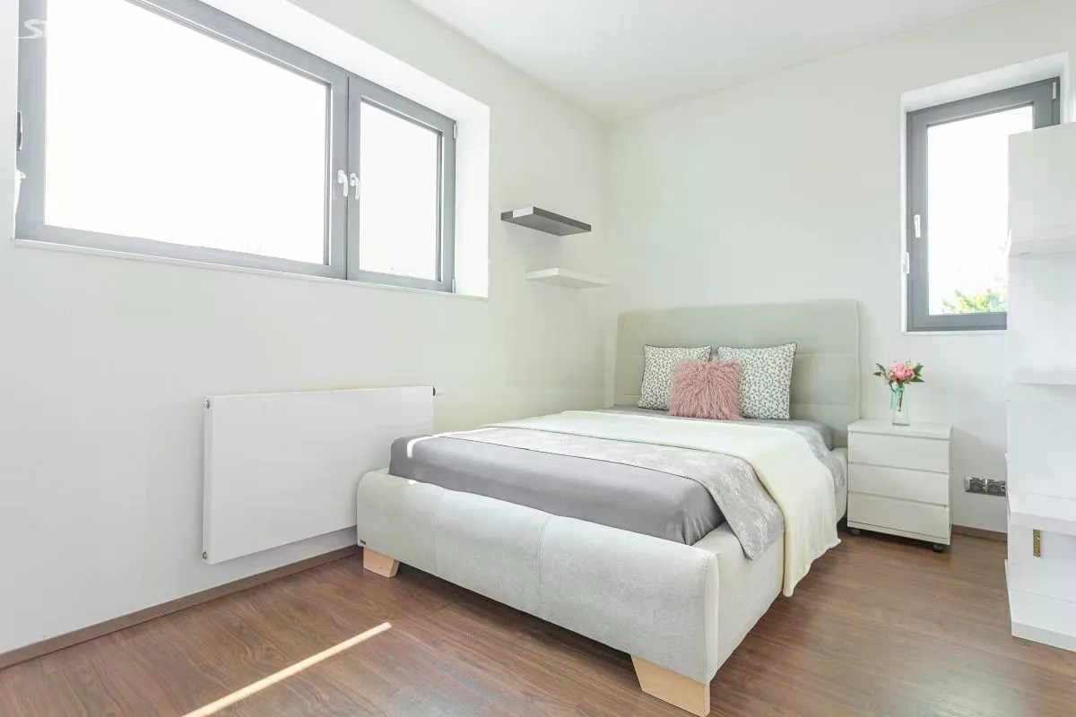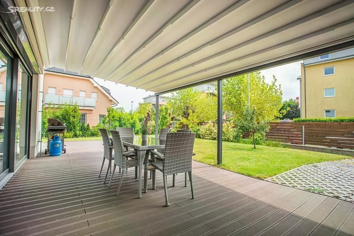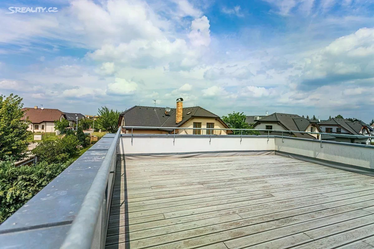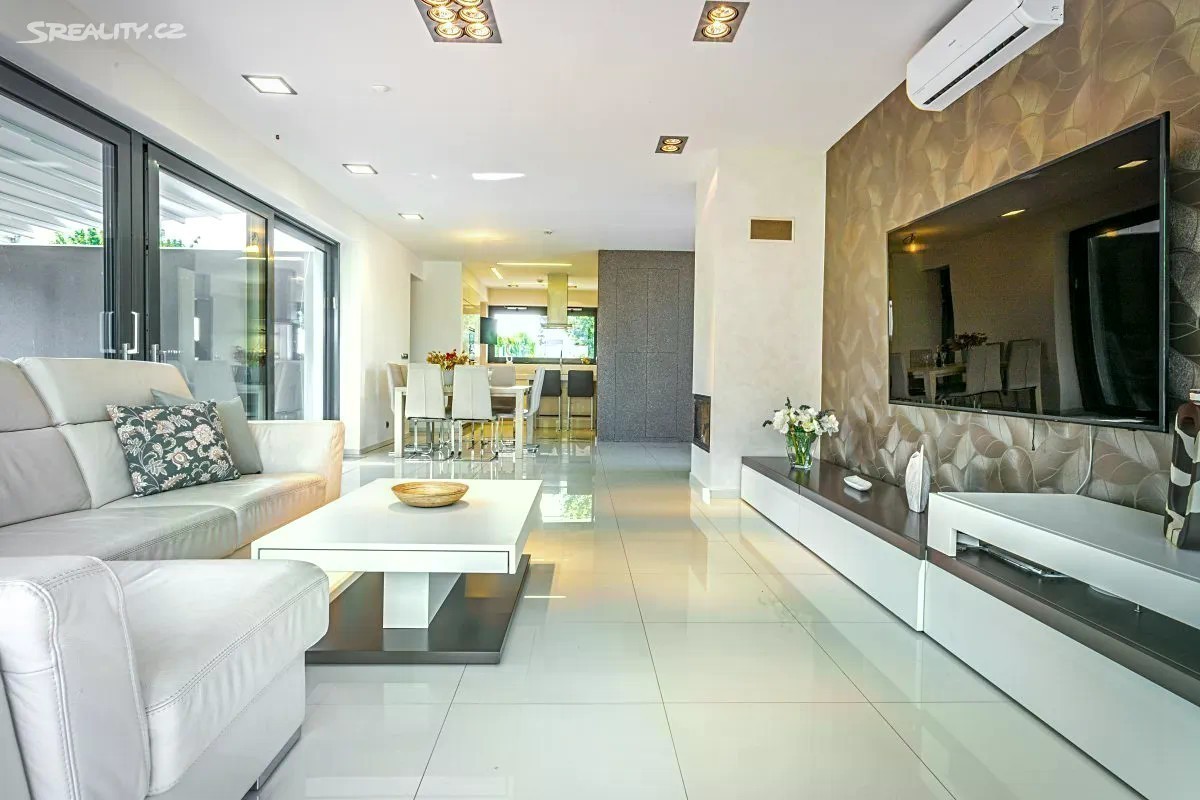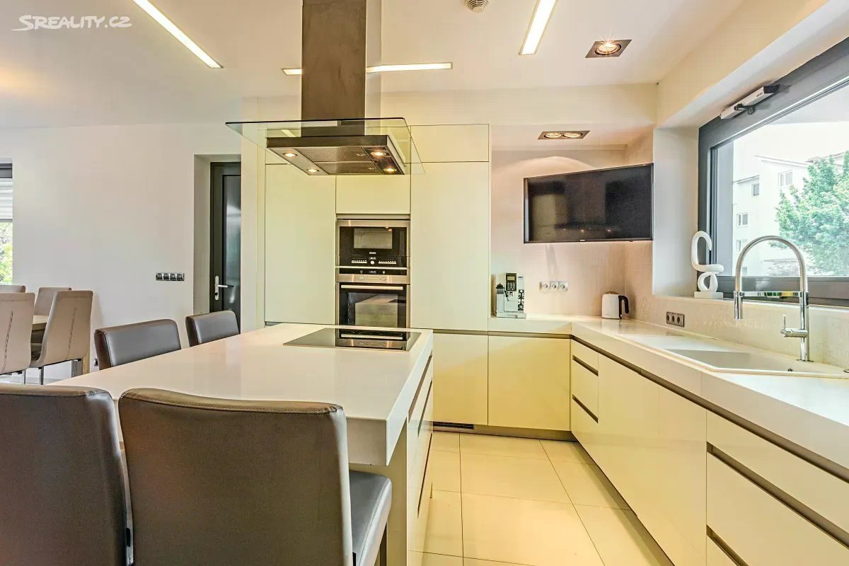 Nabízíme zcela výjimečný moderní rodinný dům určený pro bydlení i podnikání, nacházející se v útulné části Prahy - Kbely. Tento dům je zvláštní především svým velkorysým rozměrem, 392 m2 podlahové plochy, extrémně praktickou dispozicí ve dvou nadzemních podlažích a prostorným suterénem, který má díky nadměrnému anglickému dvorku plno denního světla. Dům je umístěn jen pár kroků od Lesoparku Letňany, v oblasti s ukončenou zástavbou. Ve vstupním poschodí domu se nachází prostorný obývací pokoj s kuchyní a krbem, šatna, toaleta pro hosty, garáž, sklad a v neposlední řadě prostorná hlavní ložnice s vlastní koupelnou a šatnou. Po elegantním dřevěném schodišti plném světla se dále dostanete do patra se čtyřmi ložnicemi, dvěma koupelnami, technickou místností, prádelnou a krásnou světlou terasou o velikosti 40 m2. Na podestě schodiště je navíc prostor využitelný jako TV koutek či herna. Suterén s vlastním vchodem zahrnuje kotelnu, sklad, kancelář a plnohodnotný byt 2+kk, vhodný např. pro příbuzné či chůvu. Na vzrostlé zahradě plné květin je terasa s pergolou přístupná z obývacího pokoje, bazén a zahradní domek. Celý dům je technologicky a materiálově velmi dobře vybaven. Na všech oknech jsou hliníkové předokenní žaluzie, v 1.NP je klimatizace a v 2.NP příprava pro klimatizaci. Dům je připojen na obecní vodovod a kanalizaci, vytápěn je vlastním plynovým kotlem. Na vnitřním vybavení domu byly také použity velmi kvalitní materiály, jako pravý mramor, masivní dřevo a velmi kvalitní italské obklady a dlažby. Dům je prodáván včetně osvětlení a vestavného nábytku na míru, volně stojící nábytek může být v domě ponechán po dohodě. Městská část Praha - Kbely je ideální pro rodinný život, sport i denní dojíždění do centra Prahy. V docházkové vzdálenosti je mnoho zeleně, ať už zmiňovaný Lesopark Letňany, tak i park Havraňák nebo Kbelský prales. Dojezd do centra Prahy autem trvá do 30 minut autem i MHD, OC Letňany a dvě stanice metra jsou vzdáleny cca 8 minut. V Kbelech je také stanice vlaku, který může představovat příjemnou dopravní alternativu. Kbely jsou příjemnou a soběstačnou částí Prahy s dostatkem škol a každodenních služeb, jako jsou obchody, restaurace a ordinace lékařů.
