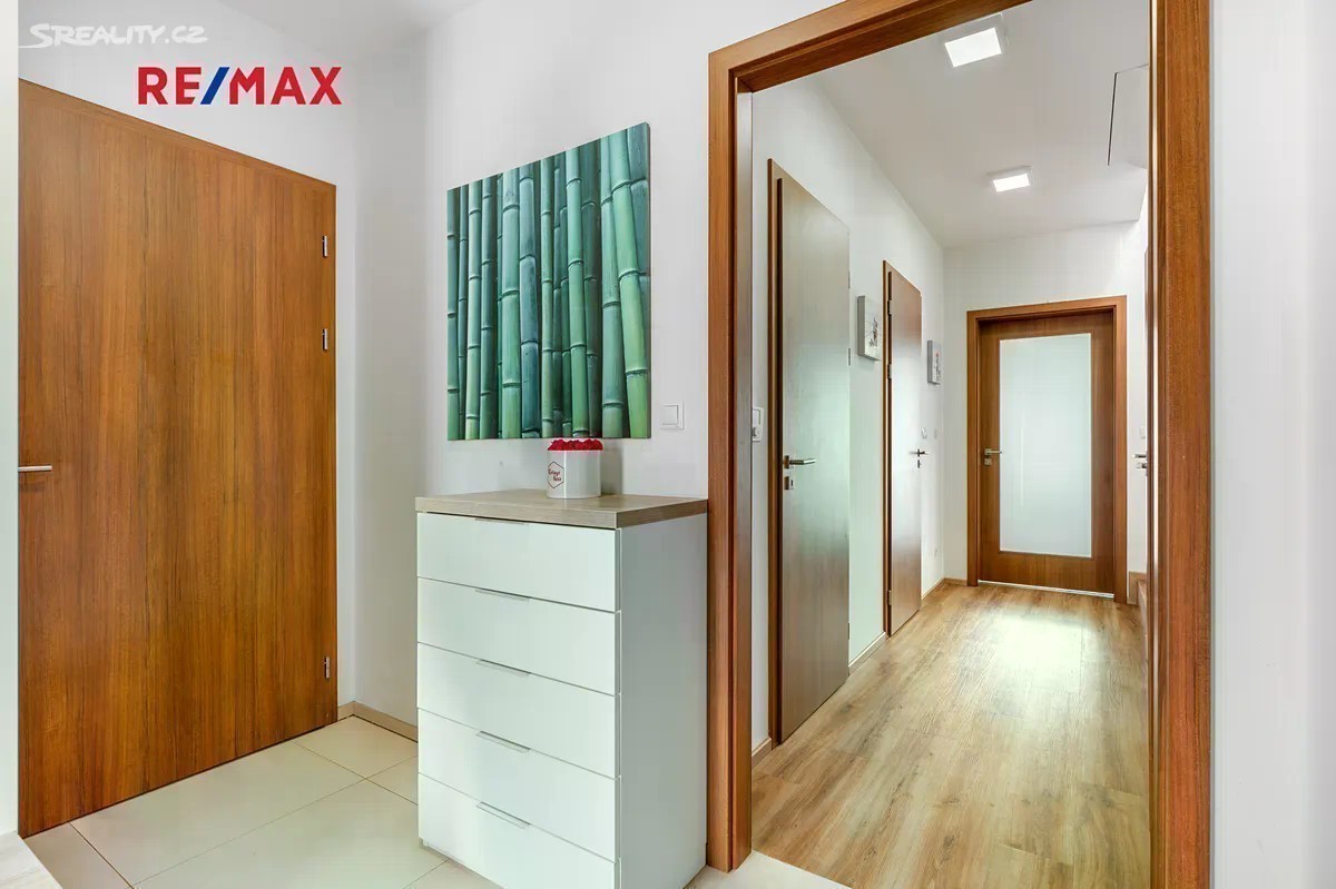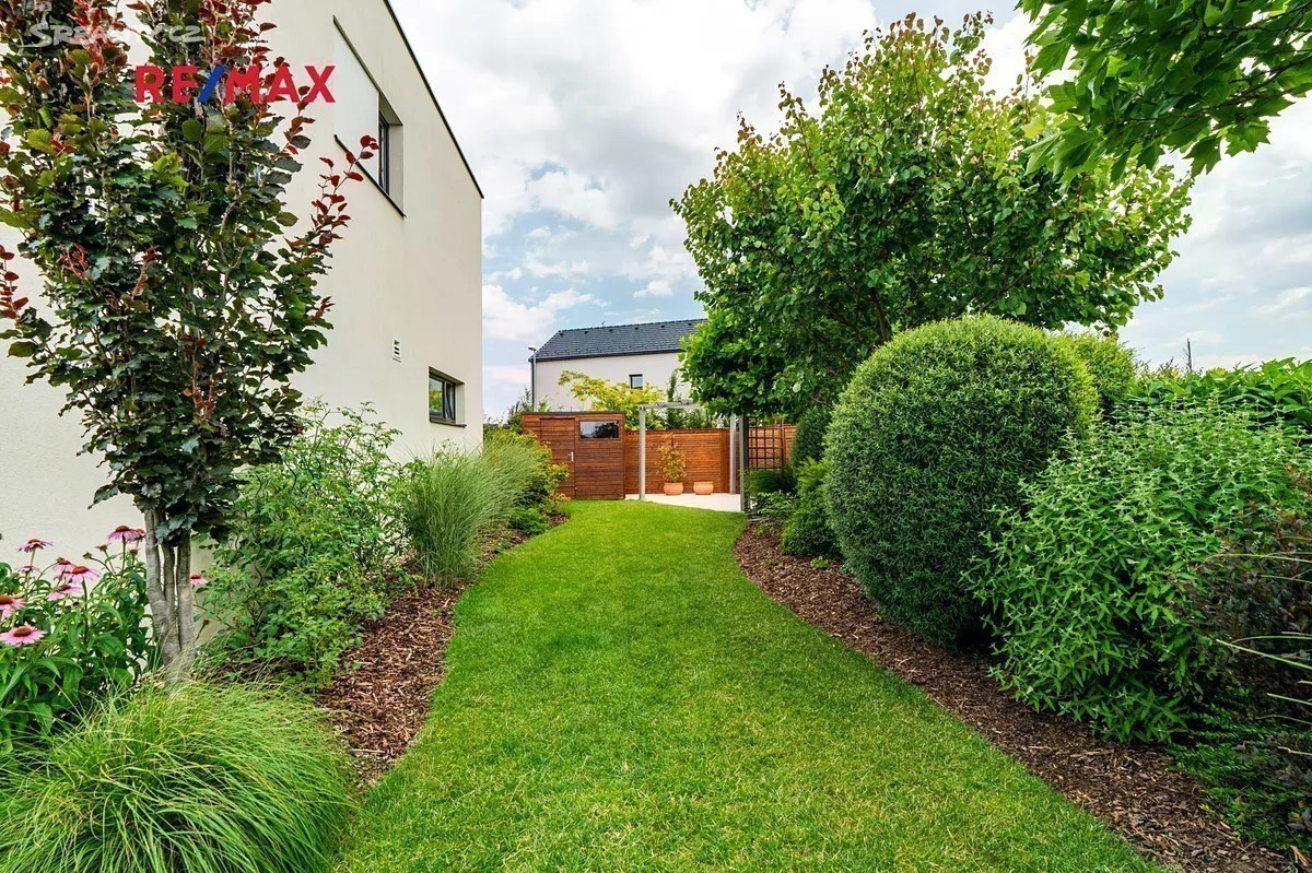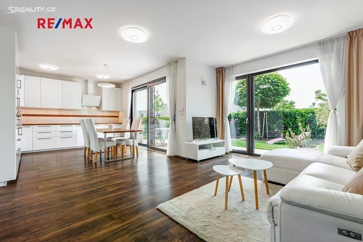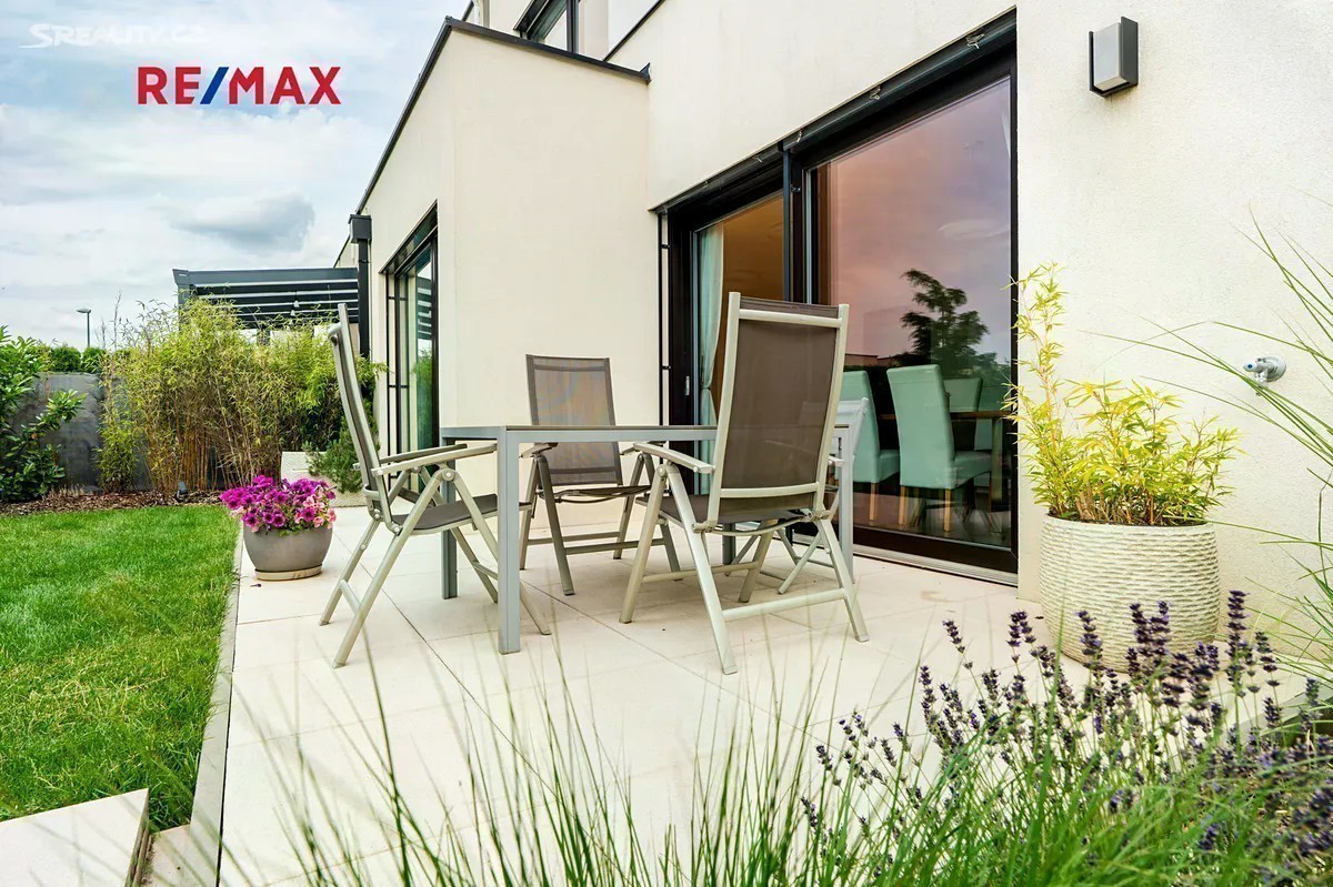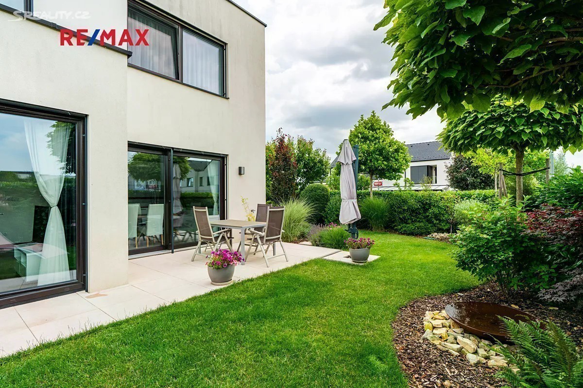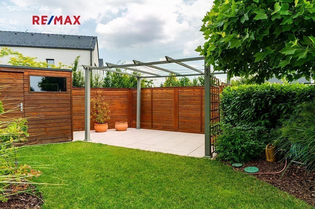 Rohový rodinný dům 4+kk, který vyniká výborným dispozičním řešením, dvěma terasami, technickým zázemím, garáží a mimořádně nízkými provozními náklady s krásným bonusem - opečovávanou nádhernou zahradou. Stavba je součástí kvalitního projektu od PS Architekti (Podlipný Sladký Architekti s.r.o.), realizovaného developerem CPI Property Group, a byl zkolaudován v roce 2018. Dům nabízí cekovou užitnou plochu 141 m². Nachází se na pozemku o celkové výměře 389 m², včetně zahrady (234 m²), dvou teras a garáže. Podlahová plocha domu je 125 m². 1. NP obsahuje obývací pokoj s kuchyňským koutem (38.25m²) a vstupem na hlavní terasu, plně vybavenou kuchyni, koupelnu se sprchovým koutem a WC, technickou místnost, samostatný skládek a zádveří. Garáž (16.2 m²), která je pohodlně přístupná přímo ze vstupní haly domu, navíc je množné pohodlně zaparkovat 2 vozy před garáží na vlastním pozemku před vstupem do domu. 2. NP nabízí tři samostatné pokoje (např. jako ložnice, dětský pokoj a pracovna - 15.3m², 16.73m², 13.3m² ), druhou koupelnu s vanou a sprchovým koutem, chodbu a dvě prostorné šatny, z nichž jedna navazuje přímo na hlavní ložnici. Dům byl kolaudován v roce 2018 a má energetický štítek PENB třídy B. Vytápění je řešeno centrálním plynovým kotlem, přičemž v 1. NP je instalováno podlahové topení, ve 2. NP radiátory. Díky kvalitnímu zateplení a moderním technologiím jsou provozní náklady velmi nízké. Okna v patře jsou vybavena nano sítěmi proti hmyzu s hliníkovými rámy, dům je stíněn elektrickými venkovními žaluziemi SOMFY s centrálním ovládáním. Zahrada je vybavena automatickým zavlažovacím systémem Hunter, napojeným na druhý vodoměr bez stočného. Večerní atmosféru podtrhuje chytré LED osvětlení exteriéru. Součástí pozemku je také druhá terasa (cca 20 m²), částečně krytá dřevěným obložením a paravanem, ideální pro letní posezení, vířivku nebo soukromý relaxační kout. Březiněves kombinuje klidné a bezpečné prostředí na okraji města s velmi dobrou dostupností do centra. Lokalita si zachovala svůj venkovský ráz s komunitní atmosférou a přátelskými sousedskými vztahy, přičemž v posledních letech prošla rozsáhlou modernizací. Jen pár kroků od domu se nachází nádherný park s upravenou zelení, dětskými hřišti a přírodními prvky, ideální místo pro každodenní odpočinek. V pěší vzdálenosti najdete např. mateřskou školu Březiněves, potraviny, poštu, restaurace, Komunitní centrum, které nabízí cvičení, workshopy, letní kino i aktivity pro obyvatele, tenisovou akademii, hřiště, fitness, Klub psích sportů a Bořanovický les. Základní škola se nachází v Dolních Chabrech (2.3 km), širší vzdělávací nabídku zajišťuje Praha 8 a centrum města. Pro větší nákupy a zábavu je v blízkosti OC Letňany. Tento dům nabízí nadstandardní kvalitu bydlení, promyšlený interiér a krásnou zahradu. Díky kolaudaci v roce 2018, chytrým technologiím a klidné a dostupné lokalitě v Březiněvsi je tento dům velmi výhodnou investicí i ideálním rodinným zázemím s příjemnou atmosférou a výborným zázemím.