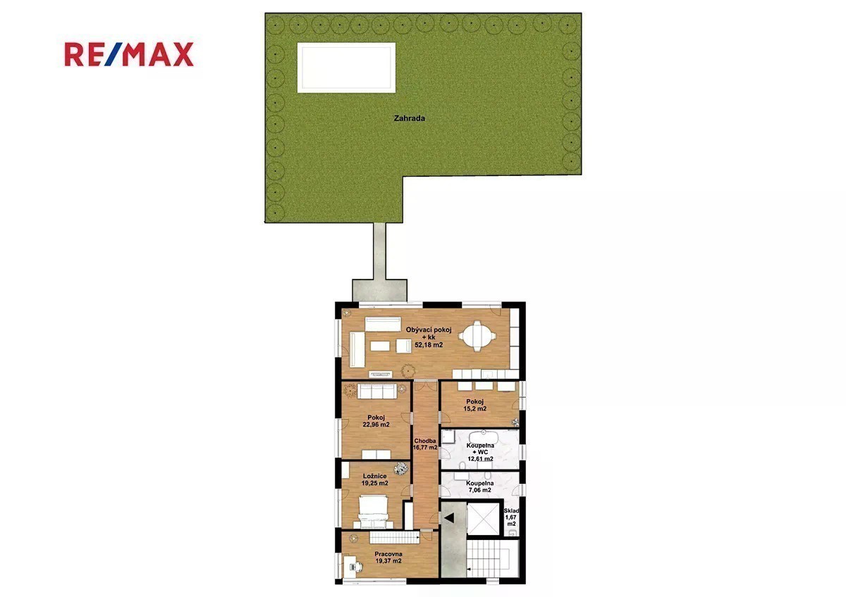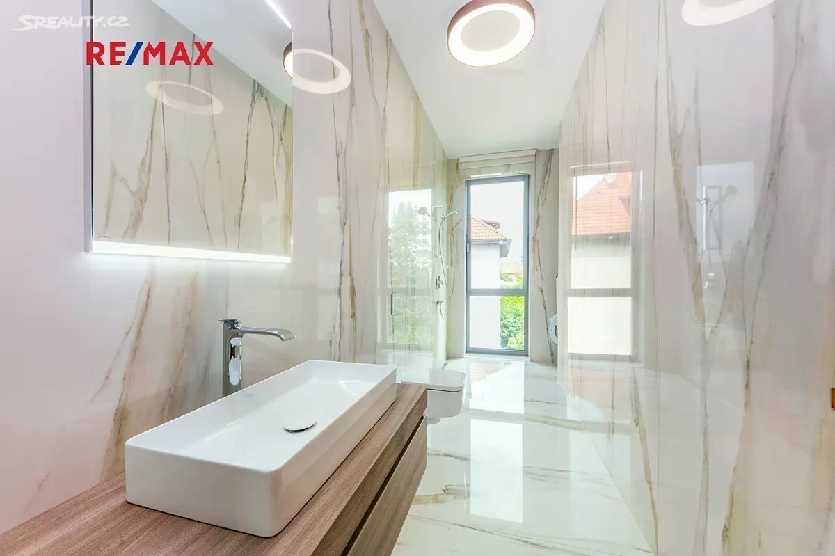 Exkluzivní nabídka dvoupodlažní bytové jednotky typ SKY o dispozici 5+kk ve 4.NP a 4+kk v 5.NP novostavby projektu Vila v Braníku, která Vám garantuje moderní styl bydlení s veškerým komfortem. Součástí prodeje je architektonicky založená zahrada o ploše 290 m2 s automatickou závlahou a vzrostlými stromy, bazén se zastřešením, tři parkovací stání, z toho dvě uvnitř domu, jedno na pozemku, a sklep o výměře 6 m2. Při realizaci stavby byly použity kvalitní materiály od německých výrobců a italských designerů, s garancí těchto standardů: zdicí materiál Wiensberger, hliníková okna Schuco s izolačním trojsklem, venkovní před okenní žaluzie, vnitřní rolety v koupelnách, dřevěné podlahy v dekoru TEAK, obložení stěn v chodbě a obývacím pokoji dýhovanými deskami s dekorem Teaku, velkoformátové dýhované dveře o výšce 3000 mm rovněž v dekoru Teak, špičková HI-Tech klimatizace Toshiba Haori, kuchyňská linka za studia SYKORA, včetně vestavných kvalitních spotřebičů, pracovní desky z přírodního kamene, koupelnový nábytek a sanitární keramika Laufen, vana RIHO, zrcadlové skříňky s LED osvětlením Keuco, velkoformátová italská dlažba FMG, designové radiátory Zehnder atd. Rovněž vybavení bytu je od renomovaných výrobců, např. sedací soupravy Natuzzi, komoda Cattelan, postele Hülsta nebo závěsy a záclony v té nejvyšší kvalitě. Dispozice jednotky 5+kk ve 4. NP disponuje obývacím pokojem, master ložnicí, dvěma pokoji, pracovnou, koupelnou s vanou, sprchovým koutem, toaletou, druhou koupelnou se sprchovým koutem, toaletou, technickým prostorem, vstupní chodbou, dále výstupem na zahradu s bazénem se zastřešením. Dispozice jednotky 4+kk v 5. NP nabízí obývací pokoj s kuchyňským koutem a výstupem na terasu 24 m2, ložnicí, dvěma pokoji a chodbou. Lokalita pražského Braníku nabízí spoustu atraktivních míst k aktivnímu životnímu stylu, např. GC Chateau St. Havel s jedinečným vodním drivingem, skvělou gastronomii i špičkovými ubytovacími službami. GC Hodkovičky s kvalitním devíti jamkovým hřištěm podél Vltavy, Kunratický les, nebo cyklo a inline stezku podél Vltavy, sportovní areál Hamr - Braník s celoročními možnostmi využití kurtů na tenis, beachvolejbal nebo badminton, plavecký areál v Podolí. Je tu veškerá občanská vybavenost - školky, školy, gymnázia, zdravotnická zařízení všech možných specializací. Možnost financování hypotéčním úvěrem, s jehož zajištěním Vám velmi rádi pomohou naši finanční specialisté. Pokud hledáte opravdu něco mimořádného, neváhejte si zajistit vhodný termín osobní prohlídky, a velmi rád Vás tímto projektem provedu. Děkuji a těším se na setkání s Vámi.-)