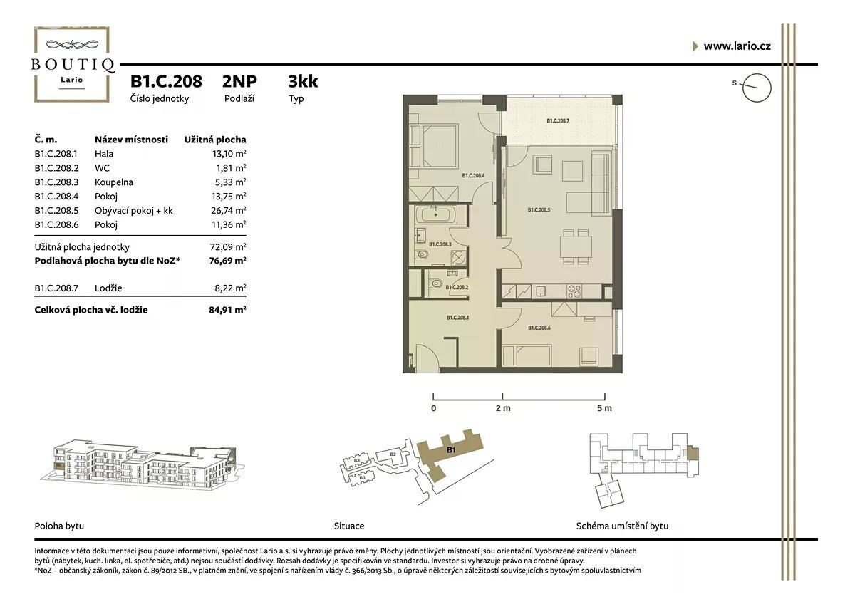 Nabízíme moderní byt o dispozici 3+kk v novém rezidenčním projektu LARIO s energetickou třídou A, který realizuje česká developerská skupina BOUTIQ. Projekt spojuje moderní architekturu, vysoký standard provedení a šetrný přístup k životnímu prostředí. Byt disponuje podlahovým vytápěním, rekuperací, nadstandardní světlou výškou stropu 2,8 m, dřevěnými podlahami a SMARTHOME technologií od společnosti Loxone. Ke každému bytu náleží balkon, terasa nebo předzahrádka a sklepní kóje. Parkovací stání v podzemní garáži je možné dokoupit, včetně místa s wallboxem pro elektromobil. Projekt využívá solární panely, což výrazně snižuje provozní náklady bytového domu a podporuje udržitelný způsob bydlení. Lokalita Dolních Měcholup nabízí klidné prostředí s výbornou dostupností do centra Prahy a plnou občanskou vybavenost. V docházkové vzdálenosti je škola, školka, obchody, zdravotní služby, sportoviště i přírodní parky s cyklostezkami. Součástí projektu je nově vznikající náměstí s obchody a službami, které přirozeně doplní občanskou vybavenost v této části Prahy.