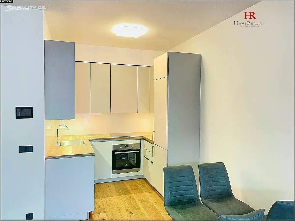 Dovolujeme si Vám s platností od 15.9.2025 nabídnout do pronájmu exkluzivní, novým nábytkem vybavený atelier (kancelář) o dispozici 2+kk, 57m2 s terasou a možností vlastního parkovacího stání v podzemních garážích v novostavbě bytového komplexu Neugraf, ulice Grafická č.p.3365/7, Praha 5 - Smíchov. Atelier se nachází v 1.NP (bezbariérový přístup) a splňuje nejvyšší standard bydlení. Dispozičně je členěn na: vstupní chodbu, koupelnu se sprchovým koutem, závěsným WC a umyvadlovou skříňkou, technickou místnost s automatickou pračkou prádla, obývací pokoj s kuchyňským koutem vybaveným vestavnými spotřebiči zn. Electrolux (myčka nádobí 60 cm, indukční varná deska, pečící trouba, lednice s mrazákem, digestoř). Obývací pokoj je vybaven novou rozkládací sedačkou s úložným prostorem, masivním jídelním stolem se 4 židlemi a vstupem na prostornou terasu 9,4m2 s výhledem do klidu dvora ve vnitrobloku. Z obýváku se dostanete do ložnice vybavené šatní skříní, 2 nočními stolky a manželskou postelí s matracemi. Okna v objektu jsou dřevěná, 3 skla. V obou místnostech jsou instalovány nové předokenní dálkově ovladatelné žaluzie, v obývacím pokoji rozdělené na 2 zvlášť ovladatelné části, pro pohodlný vstup na lodžii. Podlaha v pokojích a na chodbě je masivní - dřevěná, v koupelně a technické místnosti je dlažba, na terase jsou rošty z termoborovice. V prostoru je funkční rekuperační jednotka. Vytápění v koupelně je elektrické podlahové, v místnostech jsou: podlahový konvektor Fancoil, v ložnici radiátor, vše ovládáno z centrální jednotky. K atelieru náleží vlastní prostorná sklepní kóje a za poplatek (3.900,- Kč měsíčně + 21% DPH) lze nabídnout možnost parkování vozu v podzemních garážích. V domě se nachází recepce s nepřetržitým provozem, soukromé wellness a společná prádelna. Na střeše BD možno využít terasu ke společnému grilování, relaxaci atd… Požadované měsíční nájemné činí 28.000,-Kč + DPH 21% + zálohy na služby ve výši 6.000,-Kč včetně dodávky elektrické energie. Jistota činí 40.000,-Kč a je vratná po ukončení nájemního vztahu. Provize pro RK ve výši 28.000,-Kč vč. DPH. Do obchodního centra Nový Smíchov se dostanete pěšky za 9 min. Mateřská a základní škola minutu pěší chůze. Nejbližší zastávka MHD 2 minuty chůze (autobus) nebo 4 minuty (tramvaj). Na stanici metra Anděl trasa B je to 11 minut pěšky. Cca 5 minut chůze od domu se nachází Park Sacré Coeur, 10 minut park Mrázovka. V případě Vašeho zájmu o prohlídku prostor nás neváhejte kontaktovat na uvedeném tel. čísle. PENB třída „B“.