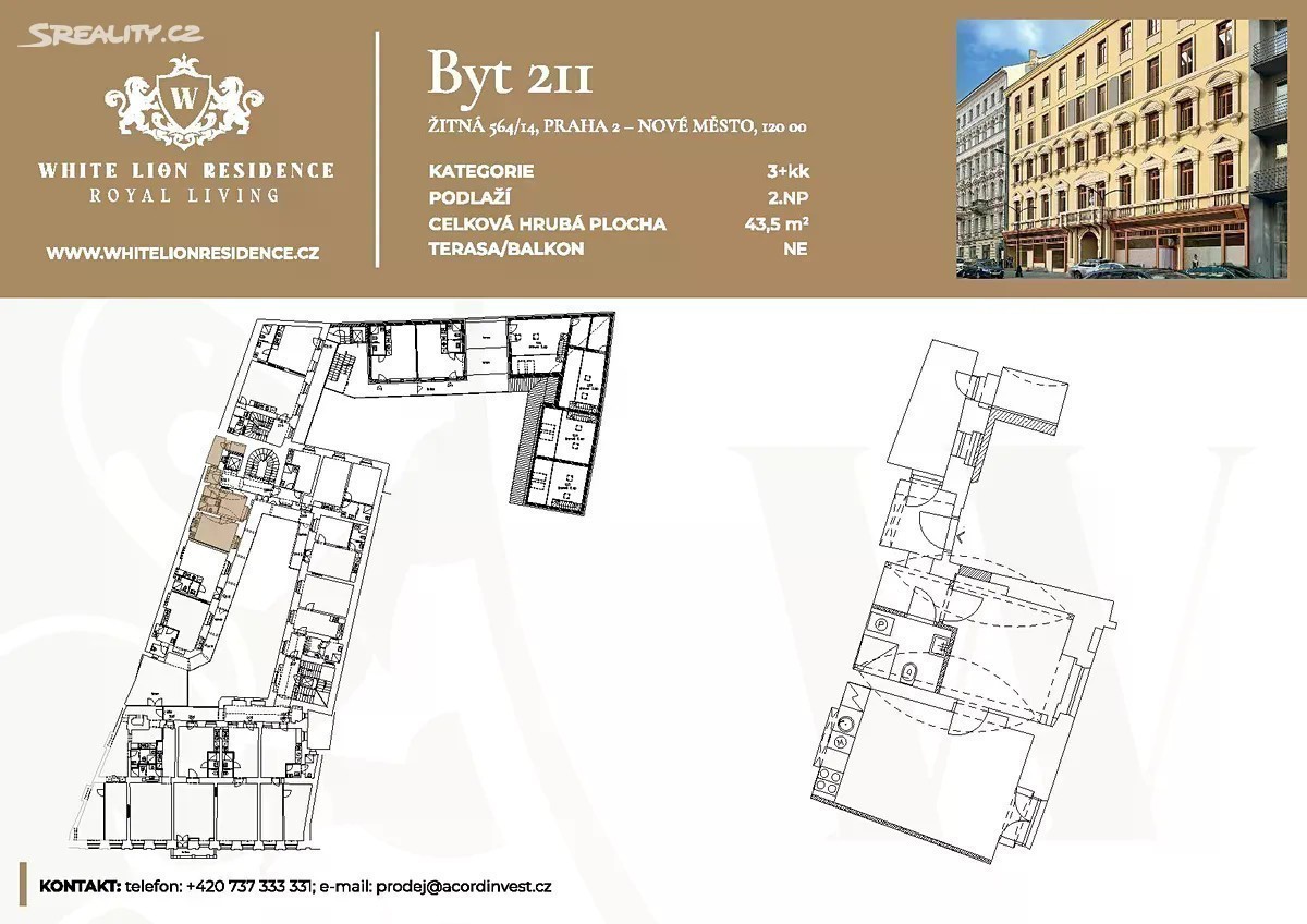 Nabízíme k prodeji byt o dispozici 2+kk v historickém domě po kompletní rekonstrukci na adrese Žitná 14. • přímo od developera • celý dům prošel kompletní rekonstrukcí (nová střecha, rozvody, okna a fasáda) • byt 2+kk o rozloze 43,5 m² se nachází v 2. nadzemním podlaží ve vnitrobloku domu • fotografie jsou z totožného bytu 311 o patro výše, který je aktuálně pronajímán Unikátní nemovitost v samotném centru Prahy - White Lion Residence, dříve známou jako dům „U Bílého lva“, na prestižní adrese Žitná 14. Tento historický měšťanský dům je nejen architektonickým skvostem, ale i místem s mimořádnou kulturní hodnotou - v minulosti zde žil slavný hudební skladatel Antonín Dvořák. Lokalita nabízí ideální kombinaci klidného městského bydlení a pulzujícího života centra. V těsné blízkosti se nachází Václavské náměstí, Národní muzeum, restaurace, kavárny, kulturní instituce i stanice metra a tramvají. White Lion Residence představuje ideální investiční příležitost i stylové bydlení s historickou atmosférou.