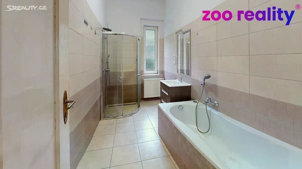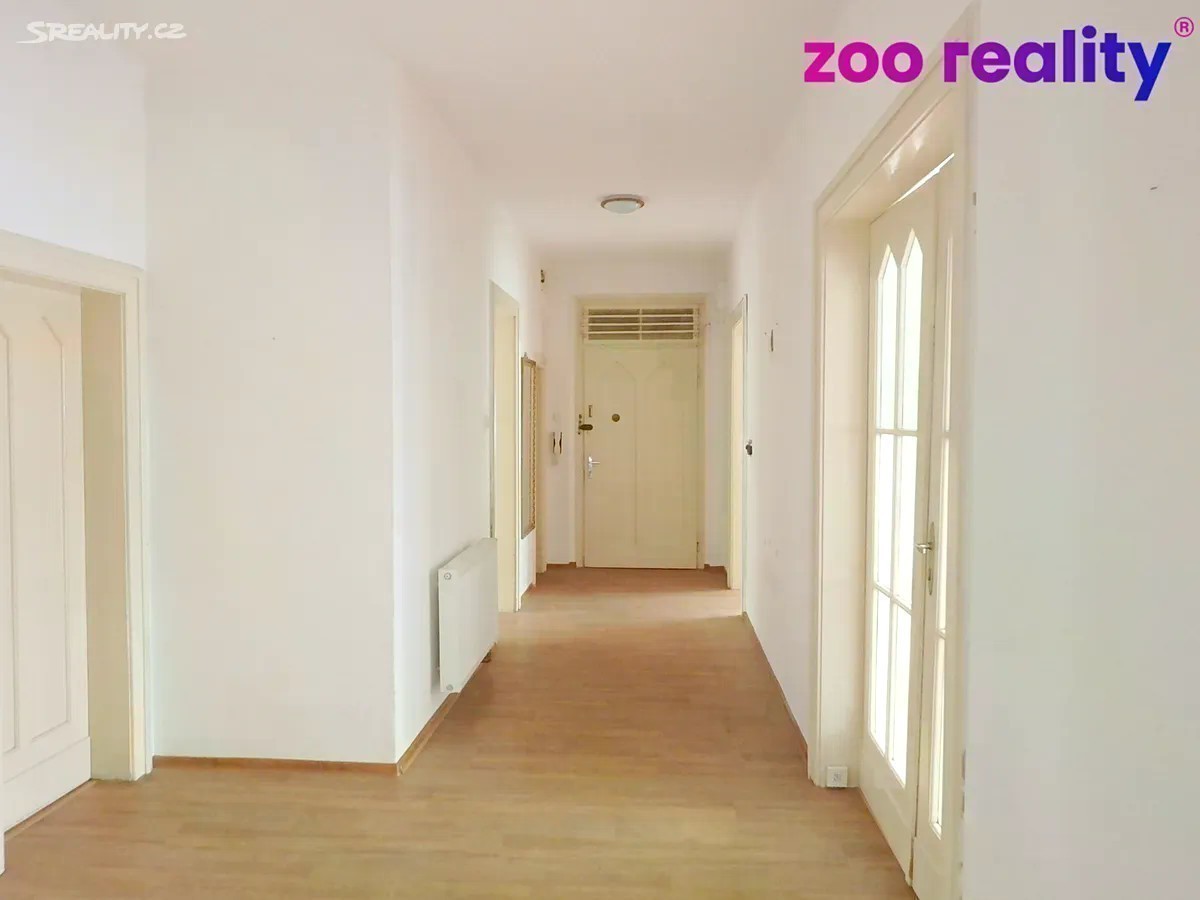Prodej bytu 4+1, 2x balkón, 140 m² - Teplice, ul. Duchcovská Nabízíme k prodeji prostorný byt v osobním vlastnictví o dispozici 4+1, nacházející se ve 3. nadzemním podlaží čtyřpodlažního cihlového domu se zahradou v klidné části Teplic. Byt o podlahové ploše 140 m² (celková plocha 150 m²) nabízí nadstandardně velké a vzdušné místnosti: - obývací pokoj (26,5 m²) s přímým vstupem na balkon, - ložnice (22 m²), - pokoj (26 m²), - pokoj (22 m²), - kuchyně (14,5 m²) se spíží a druhým balkonem, - prostorná předsíň a chodba (18 m²), - koupelna (6 m²), - samostatné WC, - technická místnost (5,5 m²), - 2x spíž Všechny pokoje mají vstup z centrální předsíně, což zajišťuje ideální dispoziční řešení. Podlahovou krytinu tvoří linoleum, v koupelně je keramická dlažba. Plastová okna zajišťují dobrou tepelnou izolaci a úsporu energií. Vytápění a ohřev vody je řešeno kombinovaným kotlem. Výhody nemovitosti: - 2 balkóny jeden orientovaný do klidné části, druhý na ulici - nadstandardní rozloha a vysoké stropy, - možnost individuální modernizace dle vlastních představ, - cihlový dům se zahradou, - výborná občanská vybavenost v okolí (škola, školka, obchody, kavárny, zastávka MHD). Dopravní dostupnost je velmi dobrá - zastávky MHD a autobusů jsou v těsné blízkosti, rychlé napojení na dopravní tepny E442 a E55 směrem na Prahu nebo k česko-německé hranici. Byt je vhodný jak pro rodinné bydlení, tak jako reprezentativní rezidence v atraktivní lokalitě Teplic.
