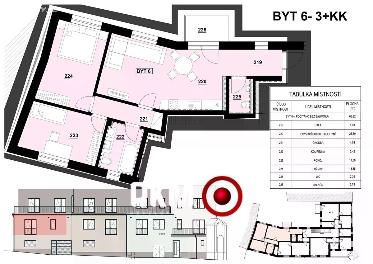 Nabízíme k prodeji prostorný byt 3+kk s balkónem v novostavbě bytového domu o 10 jednotkách v bezprostředním centru města Ivančic, na nároží ulic Kounická a Jana Fibicha. Bytová jednotka o dispozici 3+kk a podlahové ploše 66,2 m² se nachází ve 2. nadzemním podlaží nízkoenergetického bytového domu situovaného v klidné části města Ivančice. Součástí bytu je také balkón o výměře 3,75 m², který poskytuje příjemný prostor pro odpočinek. Součástí ceny bytu je sklepní kóje a jedno kryté parkovací stání. Dispozice bytu: - hala: 5,03 m² - obývací pokoj s kuchyňským koutem: 23,60 m² - chodba: 4,08 m² - koupelna: 5,42 m² - samostatné WC: 2,34 m² - ložnice: 13,86 m² - pokoj: 11,89 m² - balkon: 3,75 m² Byt je součástí novostavby bytového domu o pouhých 10 jednotkách, což zajišťuje klidné a pohodové bydlení bez anonymní atmosféry velkých komplexů. K bytu náleží sklepní kóje (cca 1,8 m²) a kryté parkovací stání, které poskytuje komfort a ochranu vozu během celého roku. Dům se nachází v atraktivní lokalitě s výbornou občanskou vybaveností - v docházkové vzdálenosti najdete obchody, školu, MHD, zdravotní středisko i sportoviště. Vybavení bytu: - kvalitní vinylové podlahy a dlažba - příprava na kuchyňskou linku - plastová okna s izolačními trojskly - předokenní žaluzie u oken orientovaných do ulice (jižní/západní strana) - moderní sanitární vybavení Bytový dům je aktuálně ve výstavbě. Hrubá stavba dokončena, probíhá realizace omítek. Probíhá realizace vnitřních řemesel. Předpokládané dokončení a možnost nastěhování: říjen 2025. Pro více informací, půdorysy nebo sjednání prohlídky nás neváhejte kontaktovat. Prodej přímo od investora - neplatíte provizi.