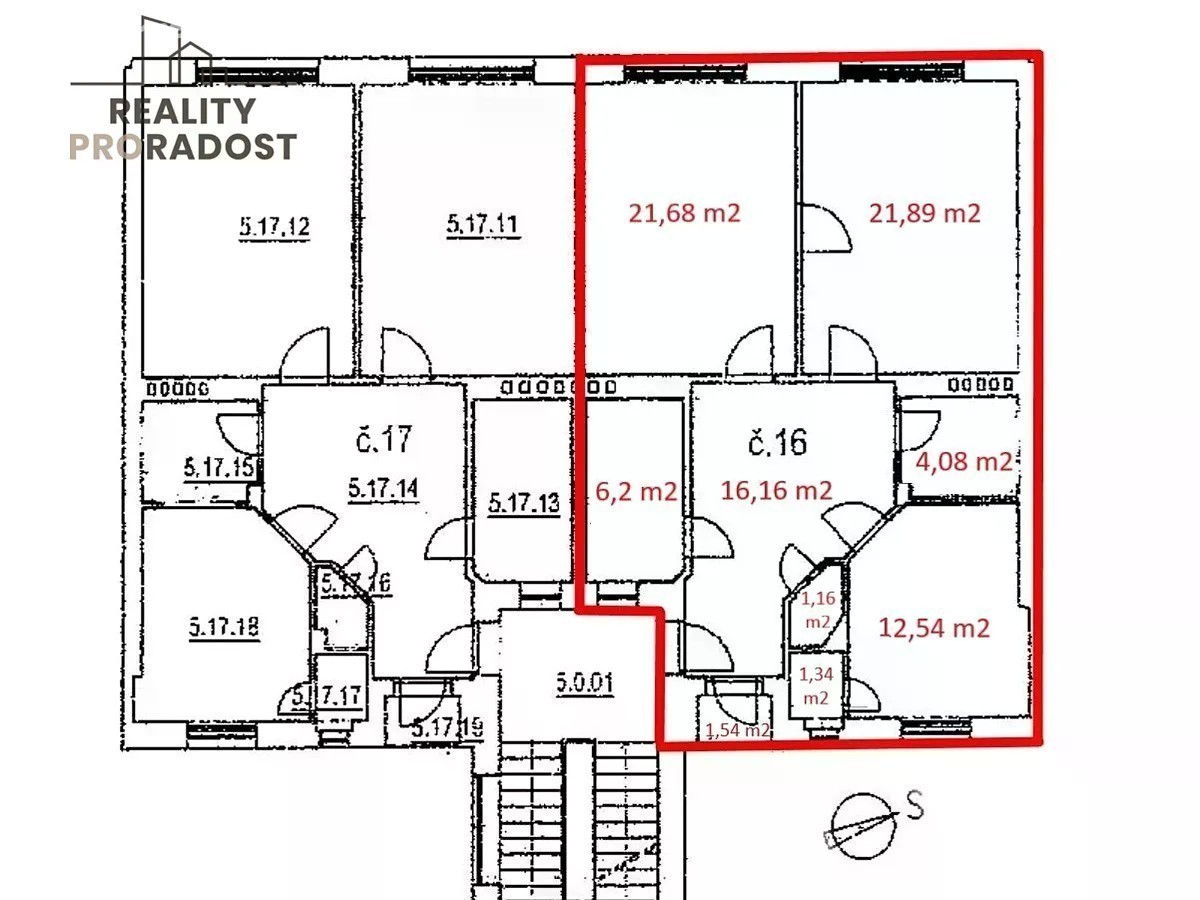 Nabízíme k prodeji byt 4,5+kk v 5. NP cihlového domu s výtahem o výměře 95 m2 v osobním vlastnictví. Byt byl upraven pro maximální využití prostoru k pronájmu po pokojích. Okna bytu jsou orientovaná na západ a východ, z bytu je vidět i na hrad Špilberk. Dům, ulice i celý blok domů je bezproblémový. Dispozice bytu: pokoj I. 21,68 m2, pokoj II. 21,89 m2, pokoj III. 12,54 m2, obývací pokoj s kuchyňským koutem 16,16 m2, pokoj pro služku 6,2 m2, koupelna 4,08 m2, WC 1,16 m2, komora 1,34 m2, sklep 10 m2 a balkon 1,54 m2. Pod novým linoleem se nacházejí původní zachovalé parkety, v koupelně a v jednom pokoji je dlažba. Vytápění je řešeno ústředním plynovým topením, nový kotel Baxi 2023. Dům je po generální rekonstrukci v roce 2011, jsou zde plastová okna a zateplená fasáda, nový výtah, všechny inženýrské sítě po výměně, k bytu náleží sklep o výměře 10 m2. Společenství vlastníků pronajímá vysílač mobilnímu operátorovi, roční příjem činí přibližně 70 tis. Kč, které pokryjí většinu provozních nákladů a peněz na údržbu domu, takže měsíční provozní náklady na byt jsou velmi nízké, jedná se tedy o zajímavou investici. Neplánují se žádné opravy ani investice. Lokalita Špitálka patřila ještě před 10 lety k vyloučeným lokalitám, nyní jde o perspektivní investici v blízkosti centra. Naproti bloku domů, kde se byt nachází, dojde k vybudování nábřeží říčky Ponávky s promenádou, vznikne tak unikátní otevřený prostor. Dům má pohodlné parkování, protože naproti domu je nezastavěný prostor, kde dojde k obnažení Ponávky u brněnských tepláren. Dům je v pěší vzdálenosti do nově budovaného areálu premium office centra Vlněna i na hlavní nádraží a Malinovského náměstí. Vzhledem ke své poloze i dispozici je byt vhodný jak pro pohodlné vlastní bydlení, tak i jako výborná investice především na pronájmy.
