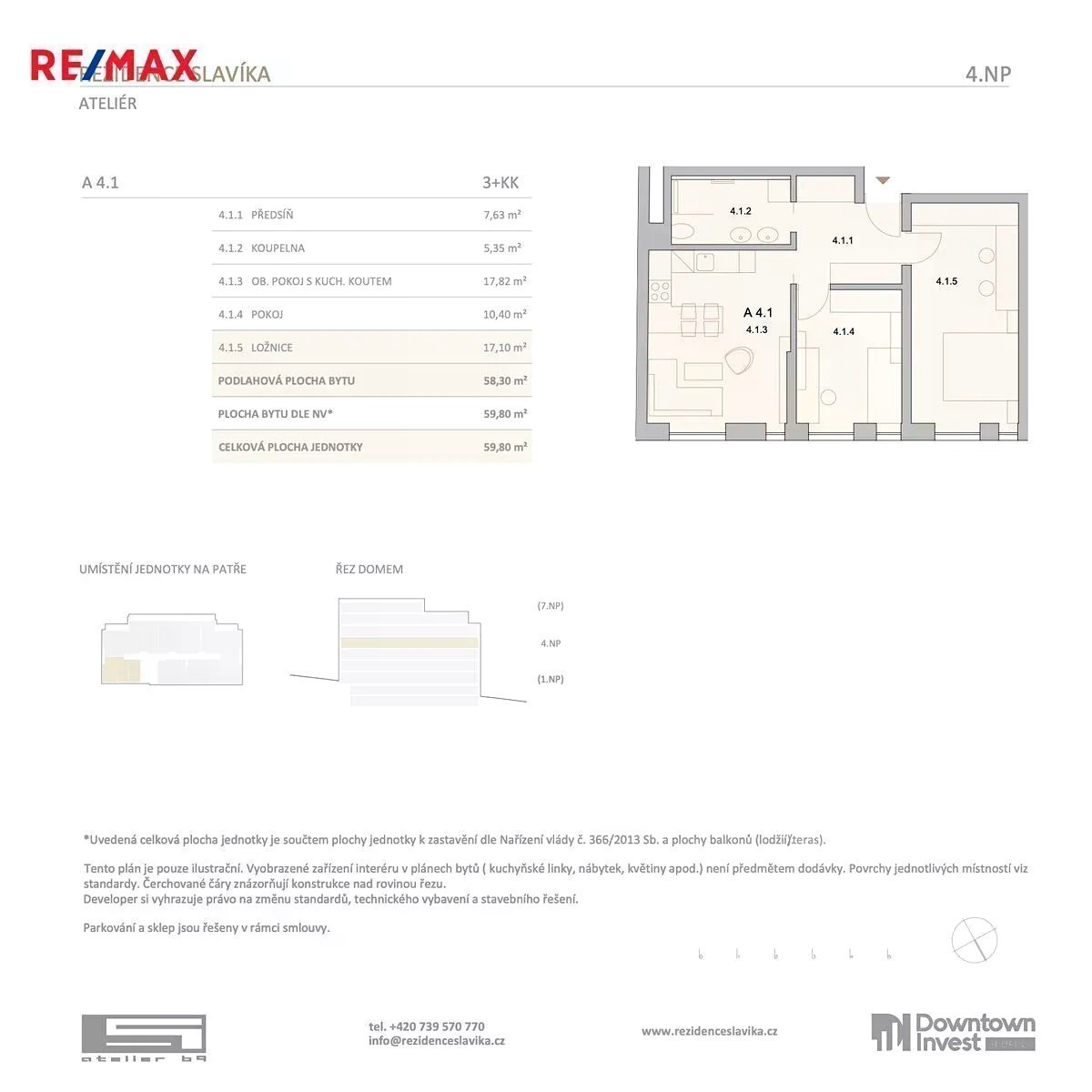 V rámci předprodeje, po nabytí právní moci stavebního povolení Vám nabízíme byt 3+kk v exkluzivní lokalitě na ulici Antonína Slavíka. Výstavba zahájena v srpnu 2025. Luxusní a moderní 7-podlažní bytový dům s 56 jednotkami pro bydlení o dispozicích od 1+kk až 4+kk s výměrou od cca 40 m2 po rozměrově nadstandardní bydlení o výměře 116m2 nabídne vysoký standard technologického vybavení současně s ohledem na ekologii a udržitelnost. Byt se skládá z předsíně s možností vestavěných skříní, koupelny se sprchovým koutem, toaletou a dvěma umyvadly, obývacího pokoje s kuchyňským koutem, ložnice s pracovním místem a dětského pokoje. Novostavba moderního bytového domu Rezidence Slavíka, která vznikne v ceněné Brněnské čtvrti Černá Pole, na dohled od slavné vily Tugendhat, nabídne luxusní bydlení v centru města s krásným výhledem na Brněnské panorama s hradem Špilberk. Situováním nad jihozápadním svahem stavba nabídne působivý výhled na centrum města a hrad Špilberk. Na pozemku stály původně 2 historické bytové domy z 19.století, které byly zničeny při bombardování Brna v r. 1944. Realizací projektu Rezidence Slavíka pozemek opět ožije. Bydlení v centru Brna - lukrativní čtvrť Černá Pole Jedné z nejvíce ceněných čtvrtí, pouhých několik set metrů od slavné Vily Tugendhat a Vily Löw-Beer. Toto místo nabízí bohaté občanské vybavení - restaurace, kavárny, školy i kulturní vyžití. Klid a odpočinek v nedalekém parku Lužánky Největší Brněnský park se nachází doslova několik kroků od vchodu do rezidence. Působivý výhled Situováním nad jihozápadním svahem stavba nabídne výhled na centrum města a hrad Špilberk. Procházkou do centra Rezidence je situována v docházkové vzdálenosti historického centra skrze zástavbu z 19. století s bohatě zdobenými fasádami a zelenými vnitrobloky. Prostředí • bohaté prosklení s výhledy • prostorné balkony s pasivním stíněním jednotek na jižní fasádě • společně využitelná část zahrady ve vnitrobloku Komfort • vysoký standard bydlení • bezbariérový přístup, prostorný vstupní vestibul • chlazení bytových jednotek obrácených na jih • rekuperace ve většině jednotek • vybrané byty s podlahovým vyhříváním Vyřešené parkování • 2 podlaží podzemního parkování v objektu s autovýtahem • dostatek sklepních kójí Ekologie • navržena zelená střecha • uvažována vlastní FVE elektrárna Více informací Vám velmi rád poskytnu na osobní schůzce.