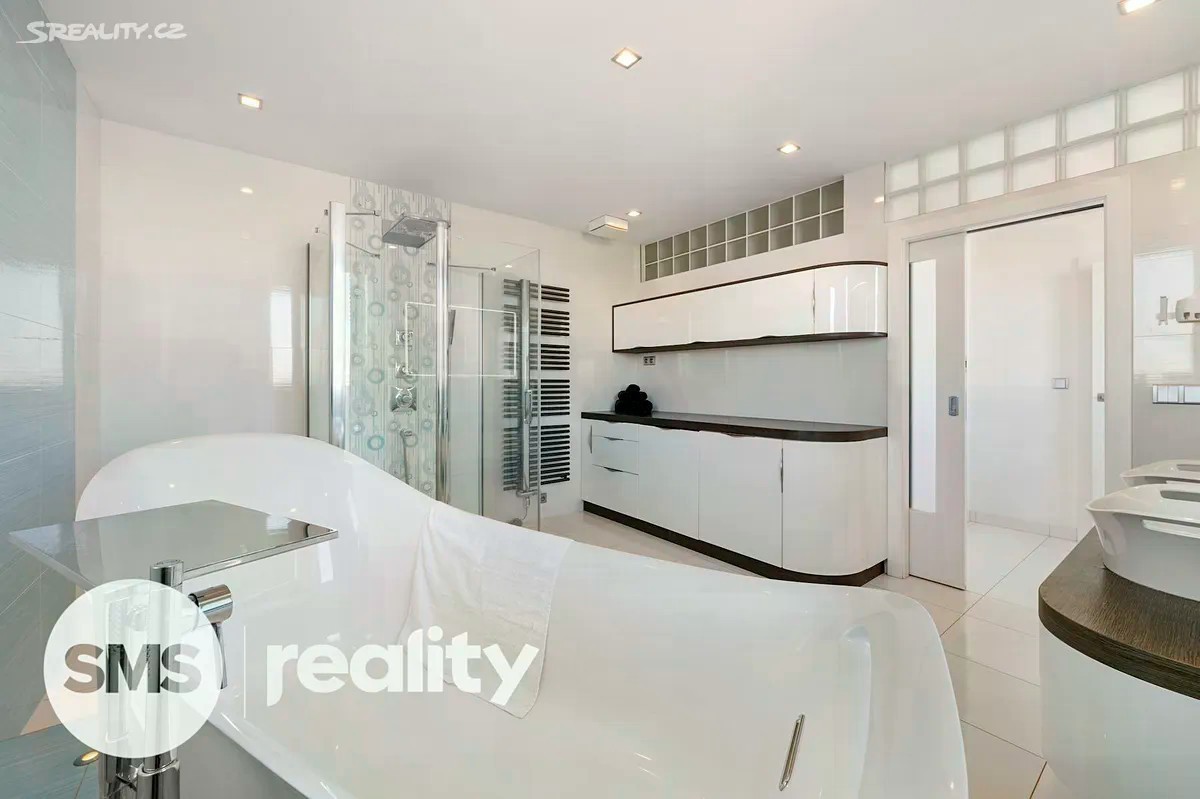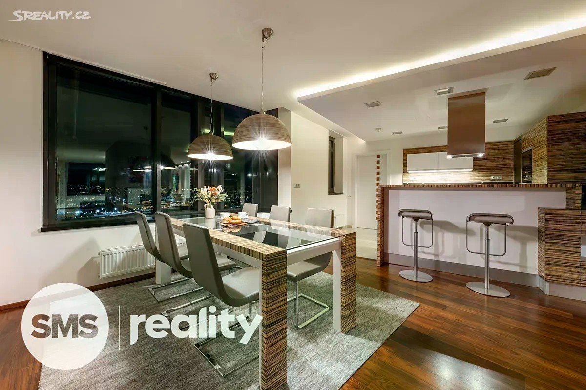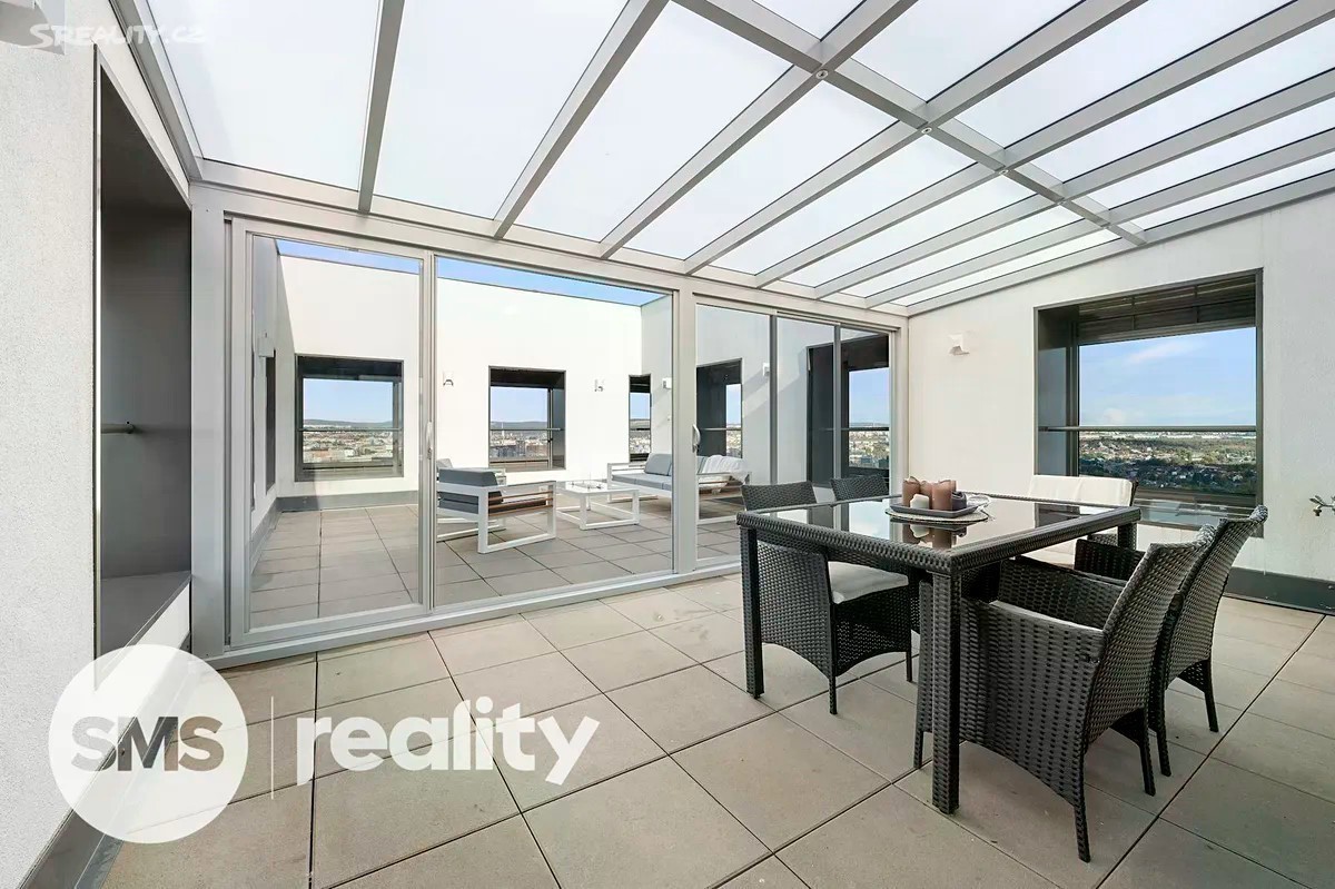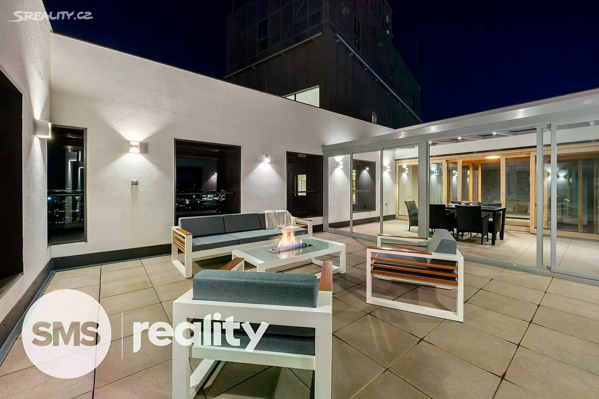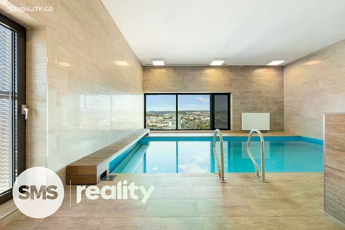 REZERVACE: Tento exkluzivní 2-podlažní apartmán s wellness zónou nabízí nejen prestižní bydlení, ale také podnikatelskou příležitost. Kromě dechberoucího výhledu na celé Brno se mohou noví majitelé těšit na vyhřívaný bazén o rozměrech 8 x 4 metrů, saunu a částečně zastřešenou terasu o ploše 51 metrů čtverečních. Apartmán se nachází ve dvou nejvyšších patrech budovy AZ Tower, která je s výškou 111 metrů nejvyšší budovou v České republice. Budova nabízí novým vlastníkům například obchodní pasáž, fitness centrum, restauraci a kavárnu, samozřejmostí je recepce a podzemní parkoviště. Pomocí výtahu se za pár vteřin dostanete do 28. patra, které je přístupné pouze pro rezidenty tohoto apartmánu z roku 2013. Apartmán je rozdělen na dvě podlaží, s vynikajícím využitím prostoru a nadstandardním vybavením v ceně. 28. patro: Zde se nachází vstupní hala se schodištěm, skladovací místnost, obývací pokoj s kuchyní, koupelna, dvě toalety, dvě neprůchozí ložnice a terasa. 29. patro: Zde se rozléhá wellness zóna s bazénem, saunou, sprchovým koutem a odpočinkovou plochou. 2. podzemní podlaží: Zde jsou vyhrazené dvě parkovací místa a dvě skladovací kóje, patřící výhradně k nemovitosti a jsou součástí kupní ceny. Tato exkluzivní nemovitost je připravena uspokojit ty nejnáročnější klienty, kteří hledají unikátní bydlení, a to vše prakticky v centru Brna. Pro více informací kontaktujte makléře.