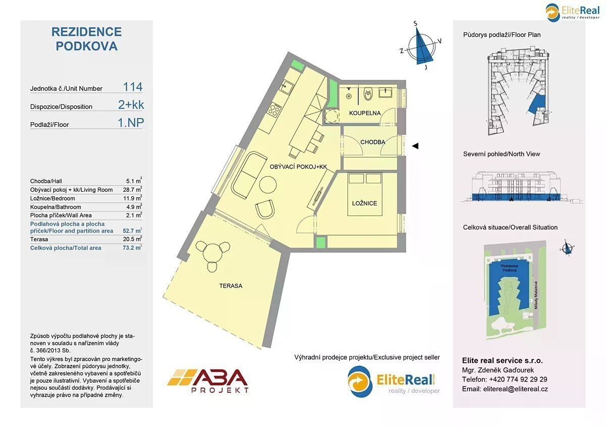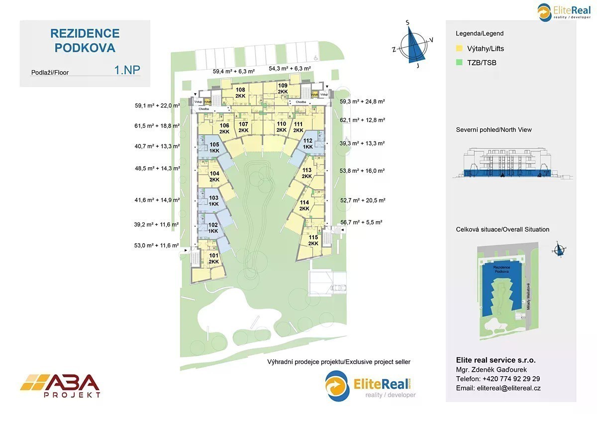 Elite real service s.r.o., výhradní prodejce projektu, Vám nabízí prodej nové bytové jednotky ve vysokém standardu v klidné části města Olomouce. Předpokládaný termín dokončení 12/2027. Bytová výstavba je vzdálena pouze cca 15 minut od centra města a je situována ve vyhledávané lokalitě s výbornou občanskou vybaveností a dopravním napojením. Výstavba moderních bytů v rámci atypické stavby ve tvaru podkovy zahrnuje téměř 60 bytových jednotek v rámci čtyřpodlažního bytového domu s možností výběru dispozic od 1+kk do 2+kk. V případě zájmu o větší dispozici je možno bytové jednotky spojovat. V ceně každého bytu stropní chlazení a stropní topení. K bytu máme k dispozici komfortní příslušenství: sklep, komoru na patře, vnitřní parkovací stání. Bytová jednotka 2+kk 111 je situována v 1.NP, je orientována na jih a východ. Plocha jednotky 62,1m2 + plocha terasy 12,8m2. Zajistíme Vám bezplatně financování nemovitosti. Nabízíme klientům služby vlastního hypotečního centra s výhodami, které jsme pro Vás s bankovními ústavy připravily. Kupte si nové nízkonákladové bydlení - bytový dům je zařazen do energetické třídy B. Půdorys bytové jednotky, který zde prezentujeme, je základní. Dispozici nové jednotky a design si můžete upravit dle vlastních požadavků. Jednotky je možno slučovat i rozdělovat dle fáze výstavby. Nechte si postavit nový byt dle vašich představ. Vysoké standardní vybavení bytů splňuje požadavky moderního bydlení (stropní chlazení, stropní topení, vinylová podlaha, obložkové zárubně, moderní keramické obklady, francouzské okno, atd.). Výjimečná investiční příležitost koupě nového bytu na dobré a klidné adrese. Výstavba bude realizována nedaleko ulice Milady Mašatové, Olomouc - Slavonín. V blízkosti nově vznikajícího bytového projektu se nachází skvělá občanská vybavenost a dostupnost MHD, rychlý příjezd na dálnici. Pro investory zajišťujeme bezplatně následný pronájem, případně i správu nemovitosti. Doporučujeme osobní jednání a prohlídku výstavby - volejte makléře. Bližší informace k bytovému projektu a největší nabídku novostaveb - nových bytů, bytů na prodej, bytů k pronájmu - naleznete na našich webových stránkách.