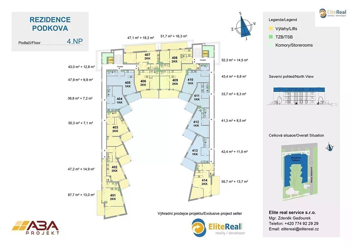 Elite real service s.r.o., výhradní prodejce projektu, Vám nabízí prodej nové bytové jednotky ve vysokém standardu v klidné části města Olomouce. Předpokládaný termín dokončení 12/2027. Bytová výstavba je vzdálena pouze cca 15 minut od centra města a je situována ve vyhledávané lokalitě s výbornou občanskou vybaveností a dopravním napojením. Výstavba moderních bytů v rámci atypické stavby ve tvaru podkovy zahrnuje téměř 60 bytových jednotek v rámci čtyřpodlažního bytového domu s možností výběru dispozic od 1+kk do 2+kk. V případě zájmu o větší dispozici je možno bytové jednotky spojovat. V ceně každého bytu stropní chlazení a stropní topení. K bytu máme k dispozici komfortní příslušenství: sklep, komoru na patře, vnitřní parkovací stání. Bytová jednotka 1+kk 413 je situována v 4.NP, je orientována na jihozápad. Plocha jednotky 42,4m2 + plocha terasy 11m2. Zajistíme Vám bezplatně financování nemovitosti. Nabízíme klientům služby vlastního hypotečního centra s výhodami, které jsme pro Vás s bankovními ústavy připravily. Kupte si nové nízkonákladové bydlení - bytový dům je zařazen do energetické třídy B. Půdorys bytové jednotky, který zde prezentujeme, je základní. Dispozici nové jednotky a design si můžete upravit dle vlastních požadavků. Jednotky je možno slučovat i rozdělovat dle fáze výstavby. Nechte si postavit nový byt dle vašich představ. Vysoké standardní vybavení bytů splňuje požadavky moderního bydlení (stropní chlazení, stropní topení, vinylová podlaha, obložkové zárubně, moderní keramické obklady, francouzské okno, atd.). Výjimečná investiční příležitost koupě nového bytu na dobré a klidné adrese. Výstavba bude realizována nedaleko ulice Milady Mašatové, Olomouc - Slavonín. V blízkosti nově vznikajícího bytového projektu se nachází skvělá občanská vybavenost a dostupnost MHD, rychlý příjezd na dálnici. Pro investory zajišťujeme bezplatně následný pronájem, případně i správu nemovitosti. Doporučujeme osobní jednání a prohlídku výstavby - volejte makléře. Bližší informace k bytovému projektu a největší nabídku novostaveb - nových bytů, bytů na prodej, bytů k pronájmu - naleznete na našich webových stránkách.