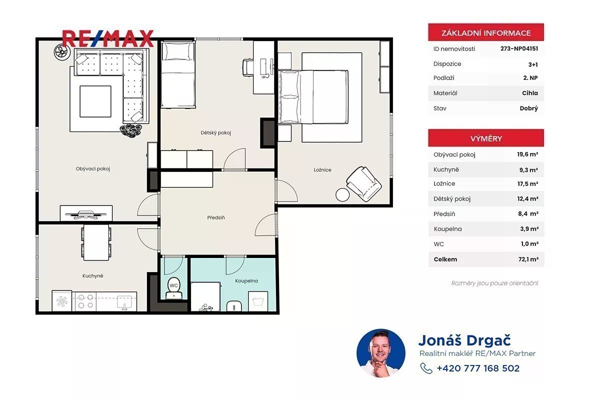 Představujeme vám byt 3+1 o velikosti 73 m², který nabízí pohodlí, klid a prostor pro celou rodinu. Nachází se ve 2. nadzemním podlaží malého cihlového domu o 4 bytových jednotkách v Tlusticích u Hořovic. Byt prošel rekonstrukcí před 10 lety - najdete zde moderní kuchyň, koupelnu, WC a nová plastová okna. Stačí se nastěhovat a začít bydlet bez dalších investic. Hlavní výhody této nemovitosti: Klidná lokalita obklopená přírodou a lesy Rychlá dostupnost do Hořovic i Prahy Možnost využití jako investice s výnosem až 18 000 Kč měsíčně Malý a klidný dům se skvělými sousedy Možnost využití zahrádky kolem domu Nabízí se zde také možnost odkoupení zděné garáže (20 m²) za 599 000 Kč, díky které budete mít o parkování vždy postaráno. Nekryté parkování je také možné i před domem. Občanská vybavenost (v Hořovicích - cca 5 minut autem): Supermarkety: Lidl, Penny Market, Billa Nemocnice Hořovice Poliklinika a lékařské ordinace Mateřské školy, základní školy, gymnázium Pošta, banky, bankomaty Restaurace, kavárny, cukrárny Sportovní areál Hořovice (fotbal, atletika) Koupaliště Hořovice Kulturní dům a kino Doprava: Vlaková stanice Hořovice - spojení do Prahy (cca 45-50 min) Autobusové linky směr Beroun, Zdice, Praha Volnočasové a turistické cíle v okolí: Hrad Točník a Žebrák - ikonické středověké hrady (10 min autem) Zámek Hořovice s krásným parkem Karlštejn (25 min autem) Křivoklát (30 min autem) Brdy - CHKO Brdy - turistika, cyklistika, houbaření Beroun (20 min) Plzeň (45 min) Praha Zličín (30 min po dálnici D5) Cyklostezky a turistické stezky přímo v okolí Tlustic a Hořovic Lesy vhodné na procházky, běh, houbaření a relaxaci Přijďte se podívat osobně. Tento byt může být vaším novým domovem plným klidu a pohody už letos. Rádi pomůžeme také s financováním.