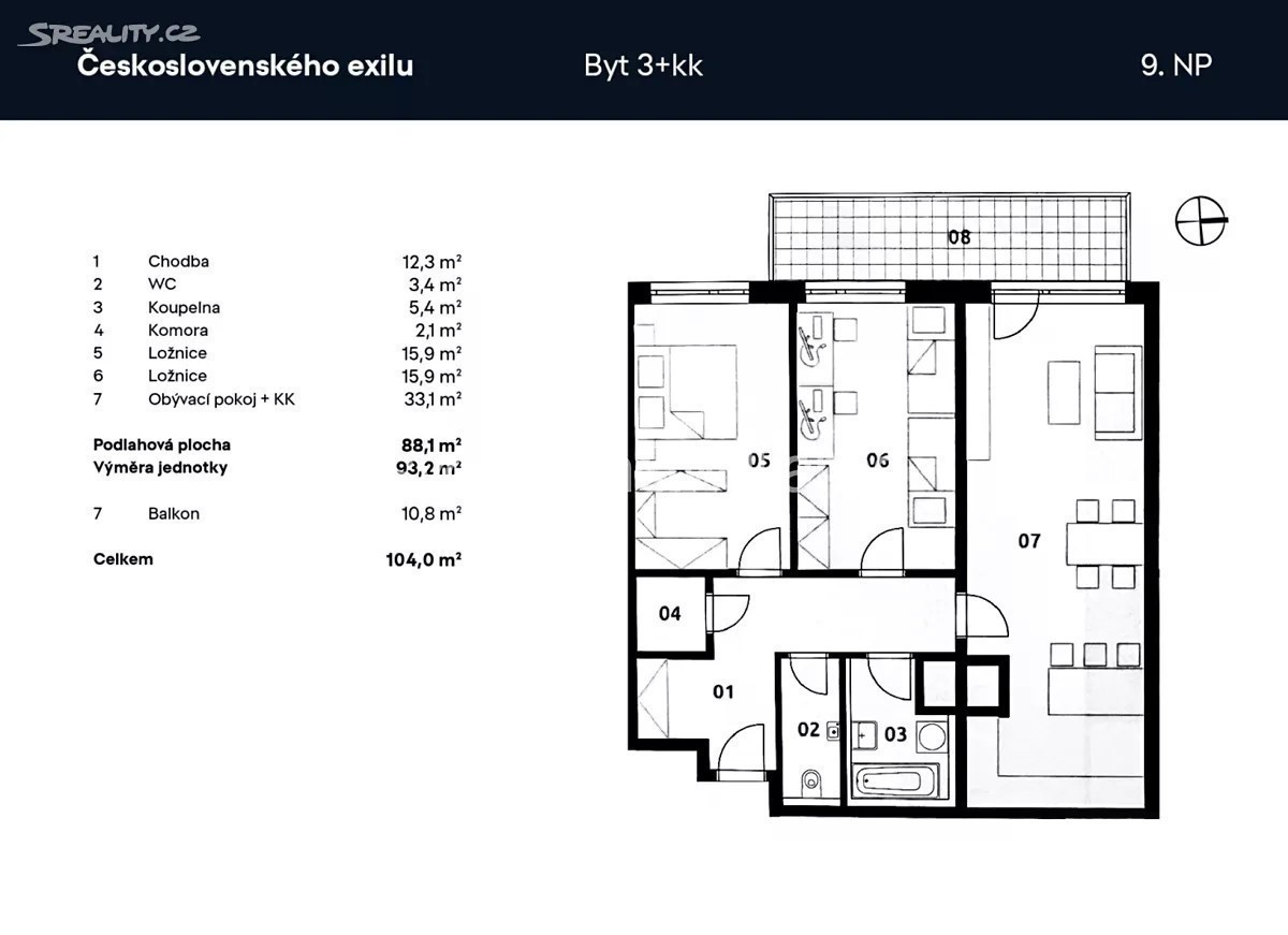 Prodej bytu 3+kk 104 m² Československého exilu, Praha - Modřany