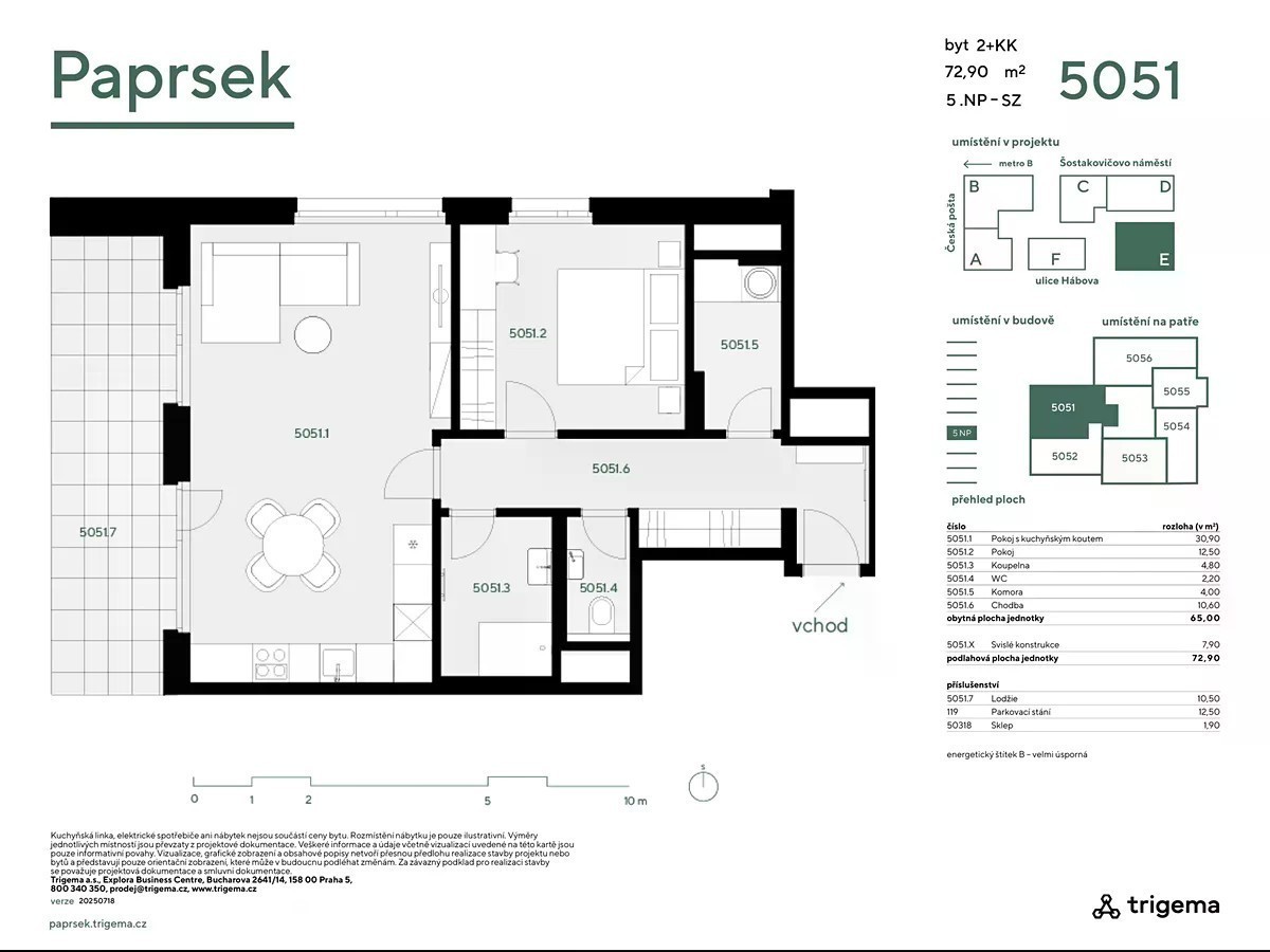 Západně orientovaný prostorný byt 2+kk o celkové rozloze 68 m2 s balkonem o velikosti téměř 4 m2 a druhým balkonem o velikosti 5,5 m2. Byt je umístěn v šestém nadzemním podlaží bytového domu. Zaujme pohodlím a vzdušností, stejně jako krásnými výhledy. Byt je ideální volbou pro singles či mingles, jako startovací bydlení nebo jako investiční byt k následnému pronájmu. V prostorné chodbě naleznete velkorysé úložné prostory. Srdcem bytu je obývací pokoj s liniovým kuchyňským koutem. Koupelna je vybavena toaletou, vanou a je v ní místo pro připojení pračky. Samostatné wc s umývátkem je umístěno ve vstupní hale. BENEFIT: Příznivá cena, balkon. TIP: Ideální volba pro singles či mingles, jako startovací bydlení nebo jako investiční byt k následnému pronájmu. Fotografie interiéru jsou pouze referenční. Pro prohlídku nemovitosti kontaktujte makléře společnosti. Nabídka dalších dokončených bytů na stránkách developerského projektu.